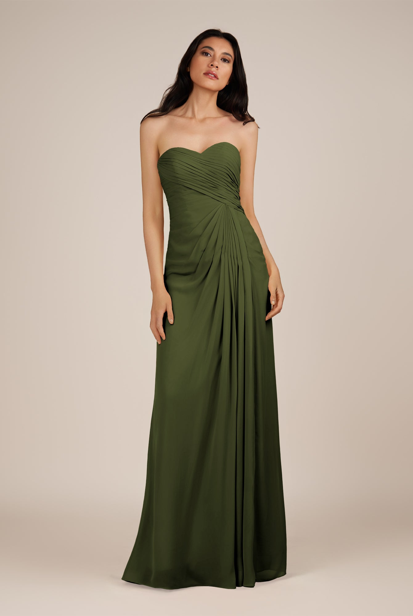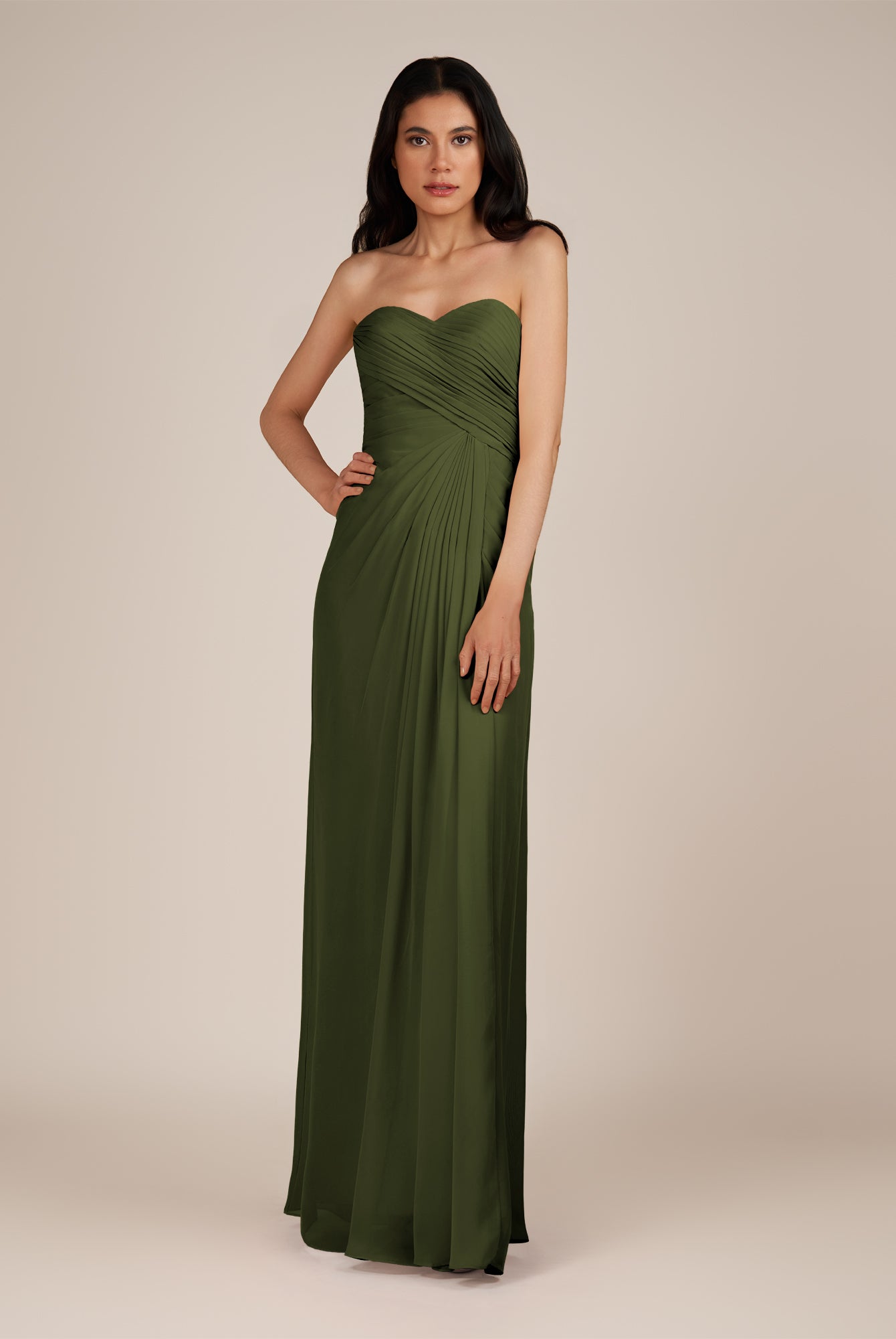 Wanlian | Olive - A Line Chiffon Sweetheart Long Bridesmaid Dress with Pleats