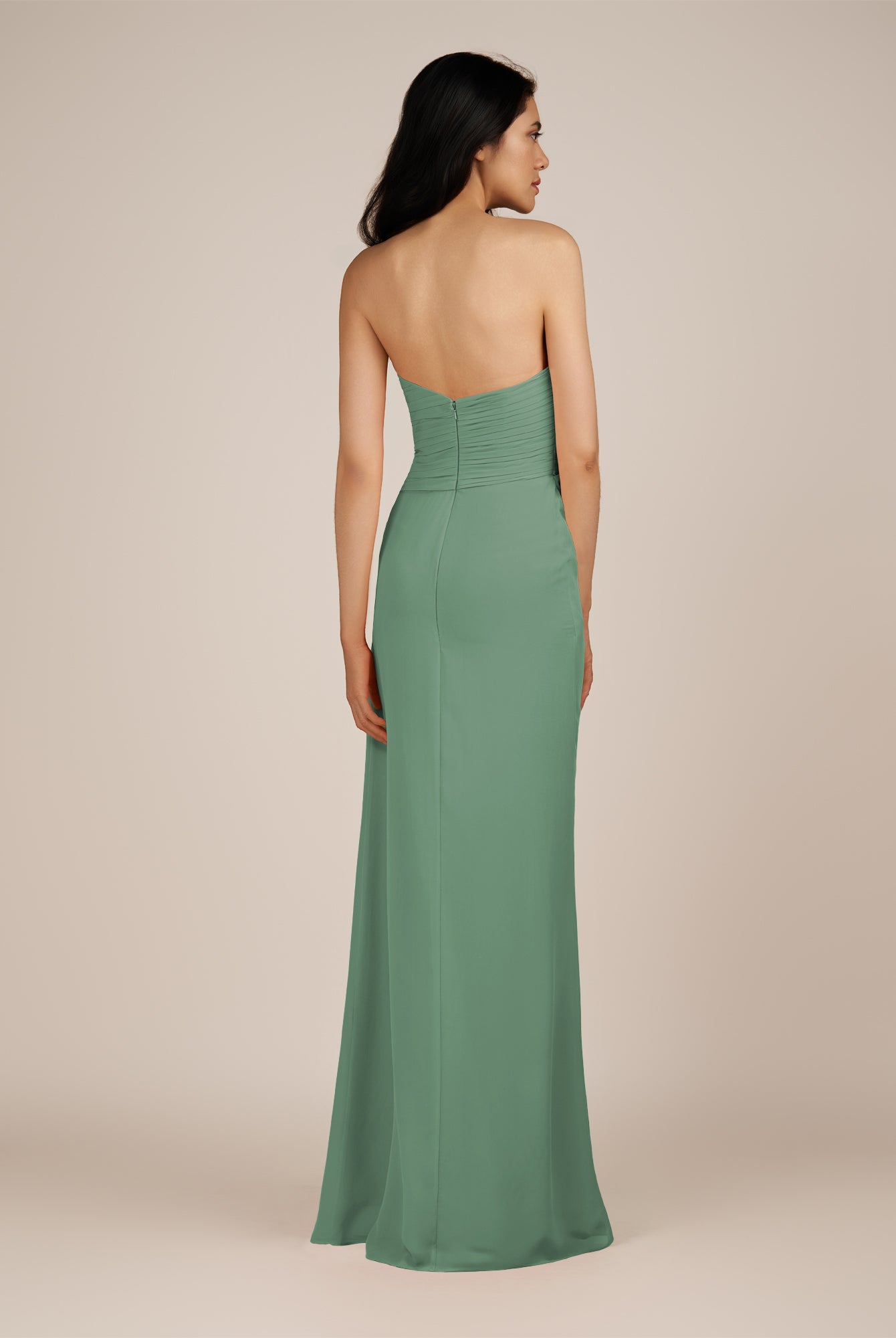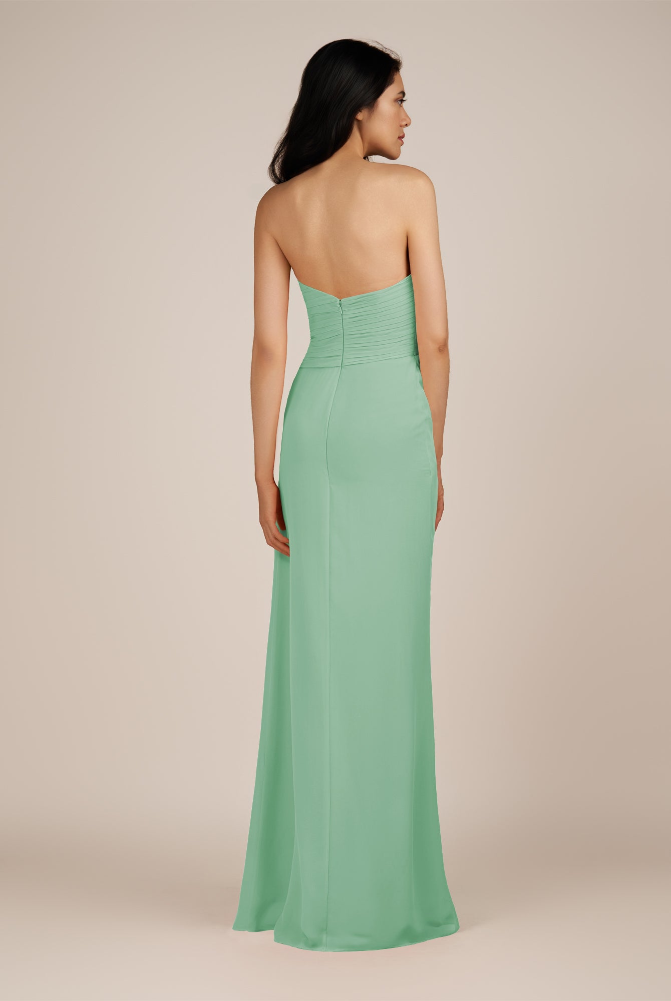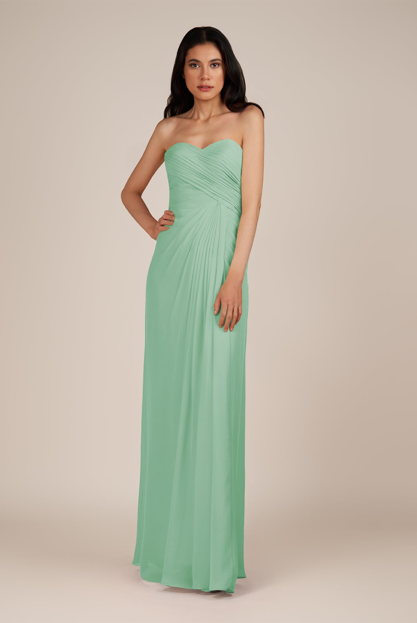 Wanlian | Sea Glass - A Line Chiffon Sweetheart Long Bridesmaid Dress with Pleats
