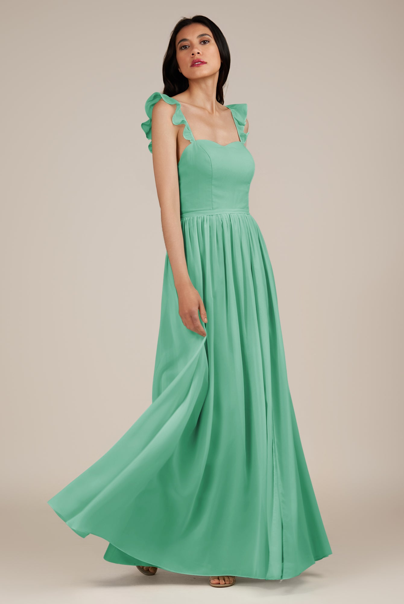 Onyx | Turquoise - A Line Sweetheart Chiffon Ruffled Long Bridesmaid Dress with Slit