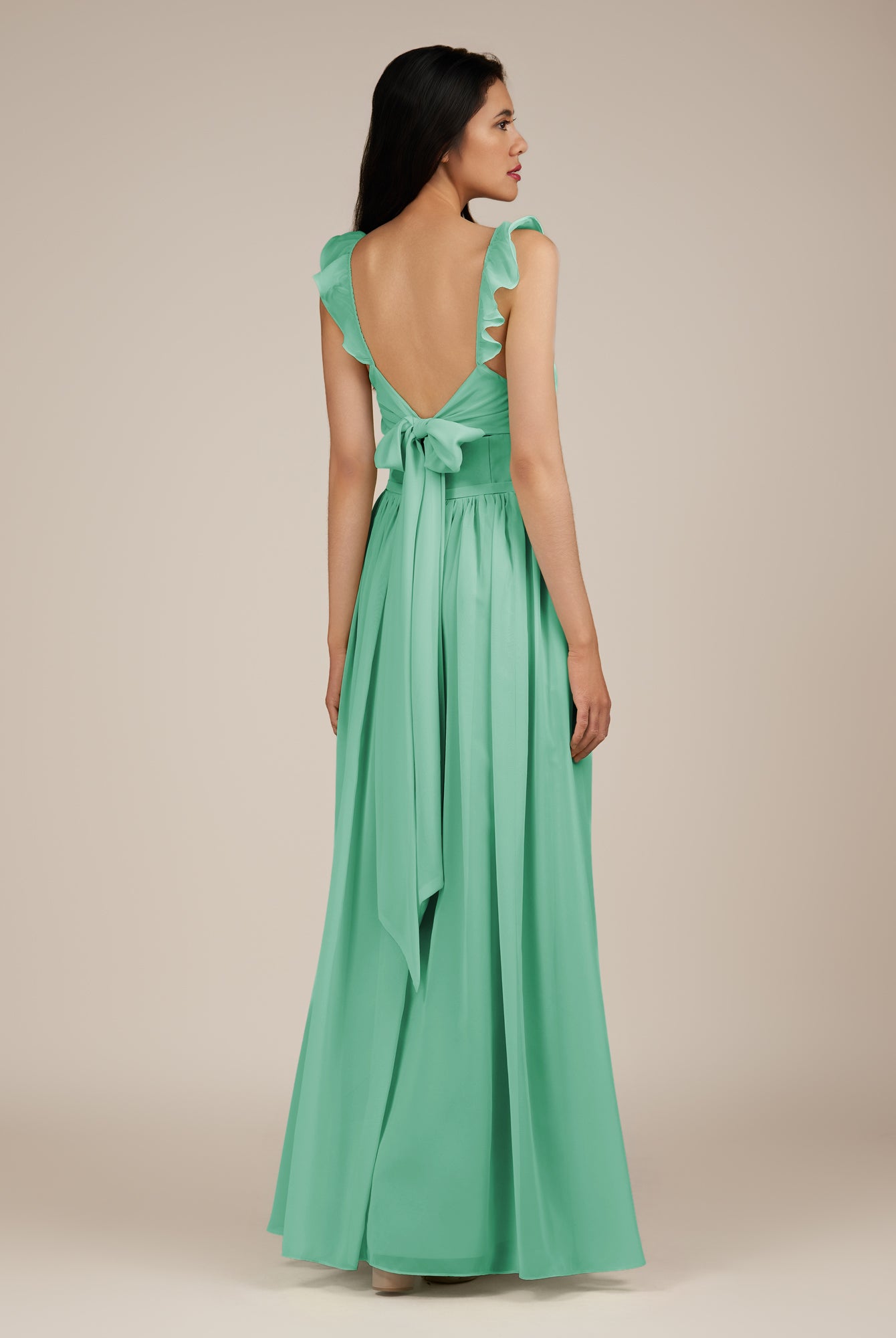 Nolana | Matcha - A Line V Neck Chiffon Pleated Long Bridesmaid Dress