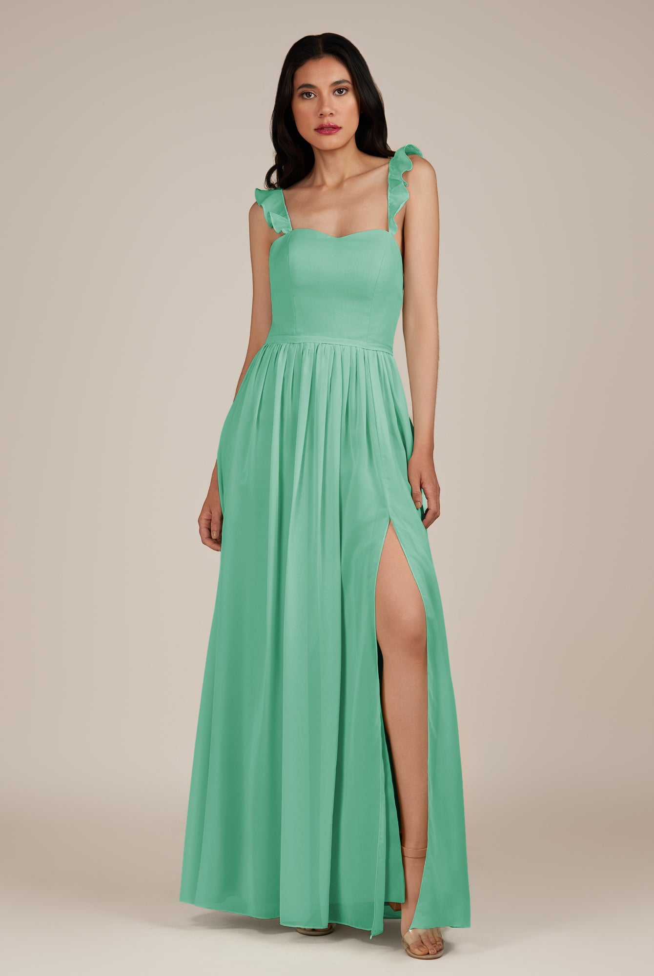 Onyx | Tahiti - A Line Sweetheart Chiffon Ruffled Long Bridesmaid Dress with Slit