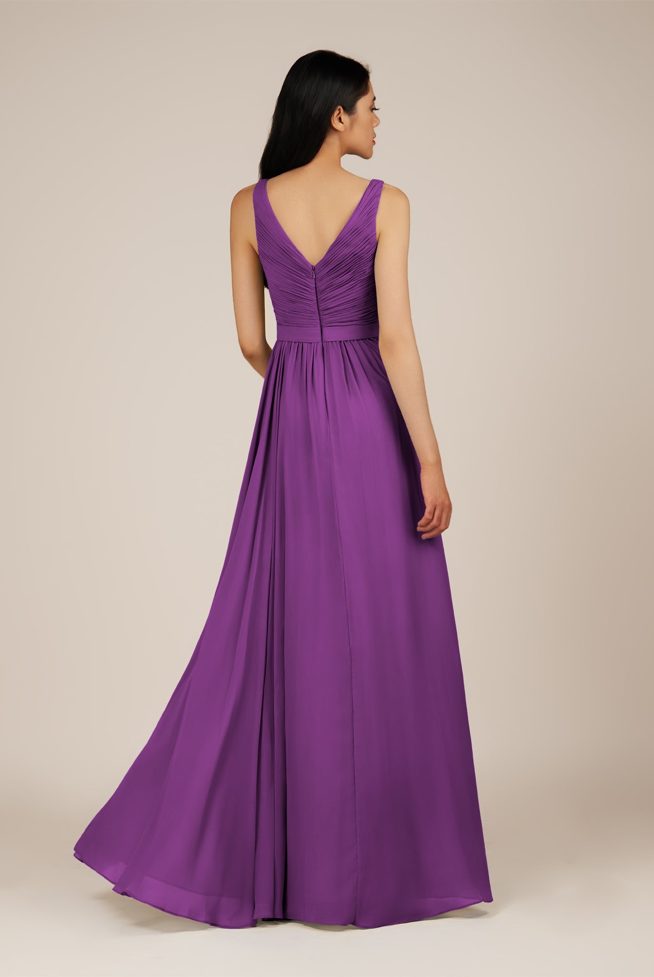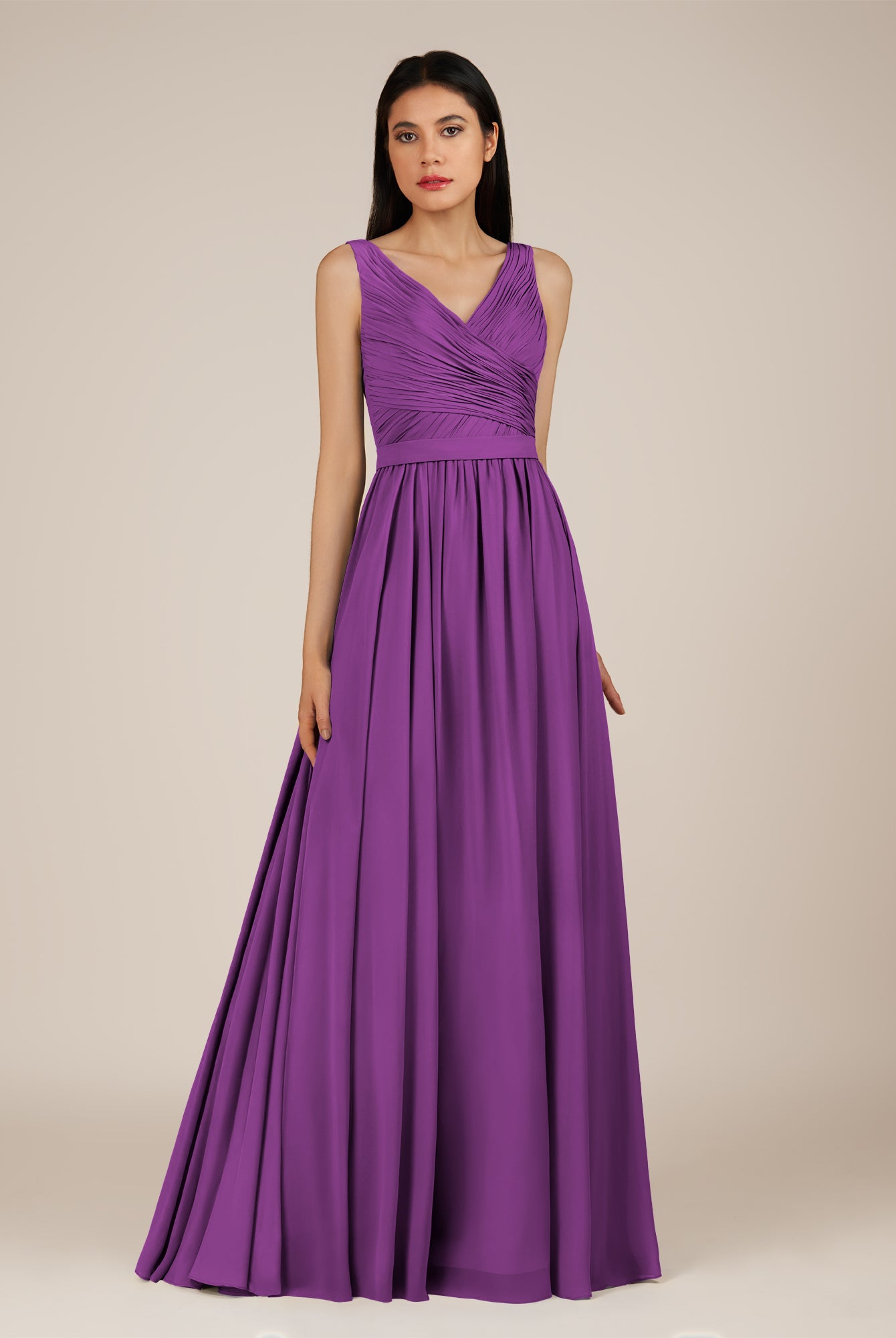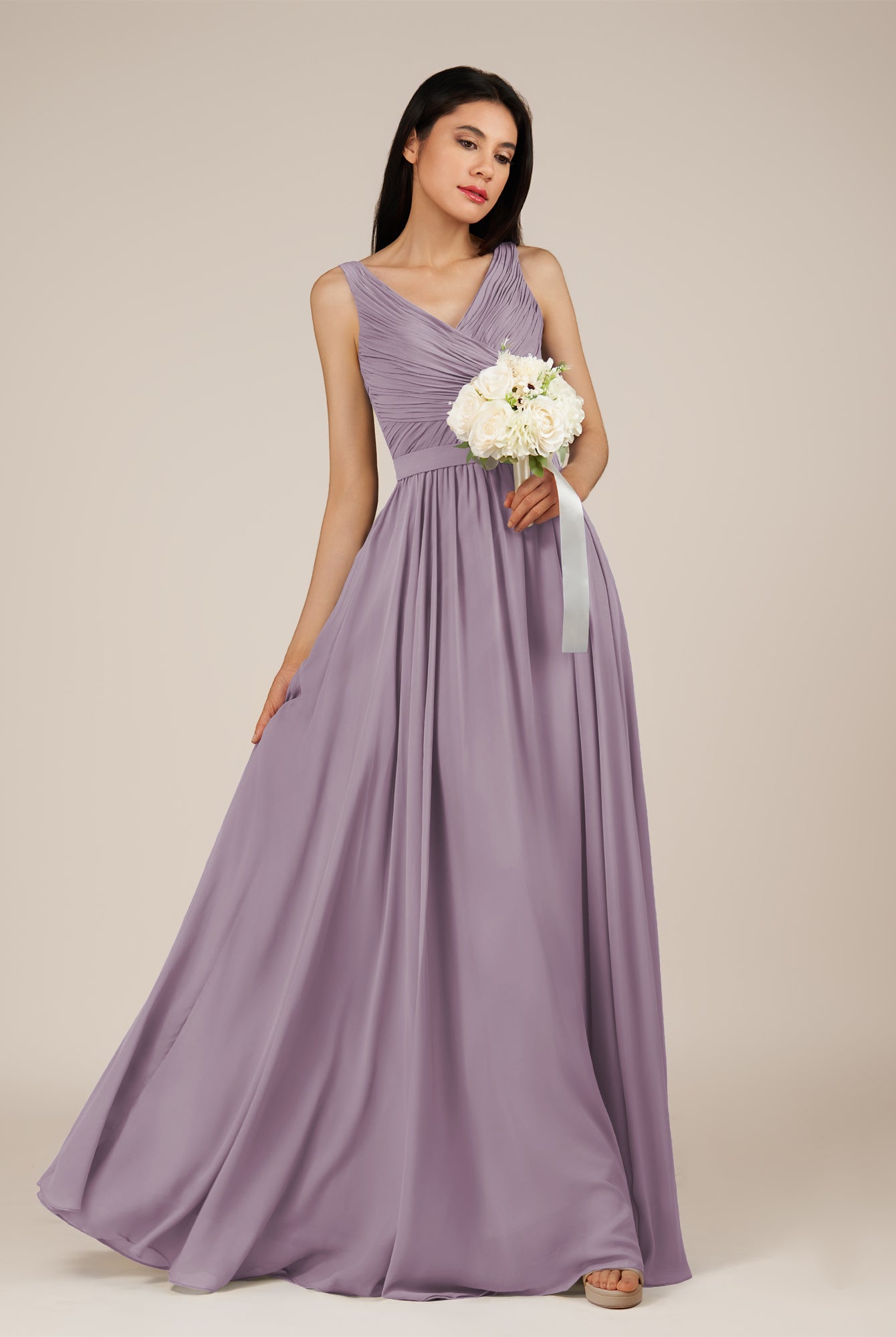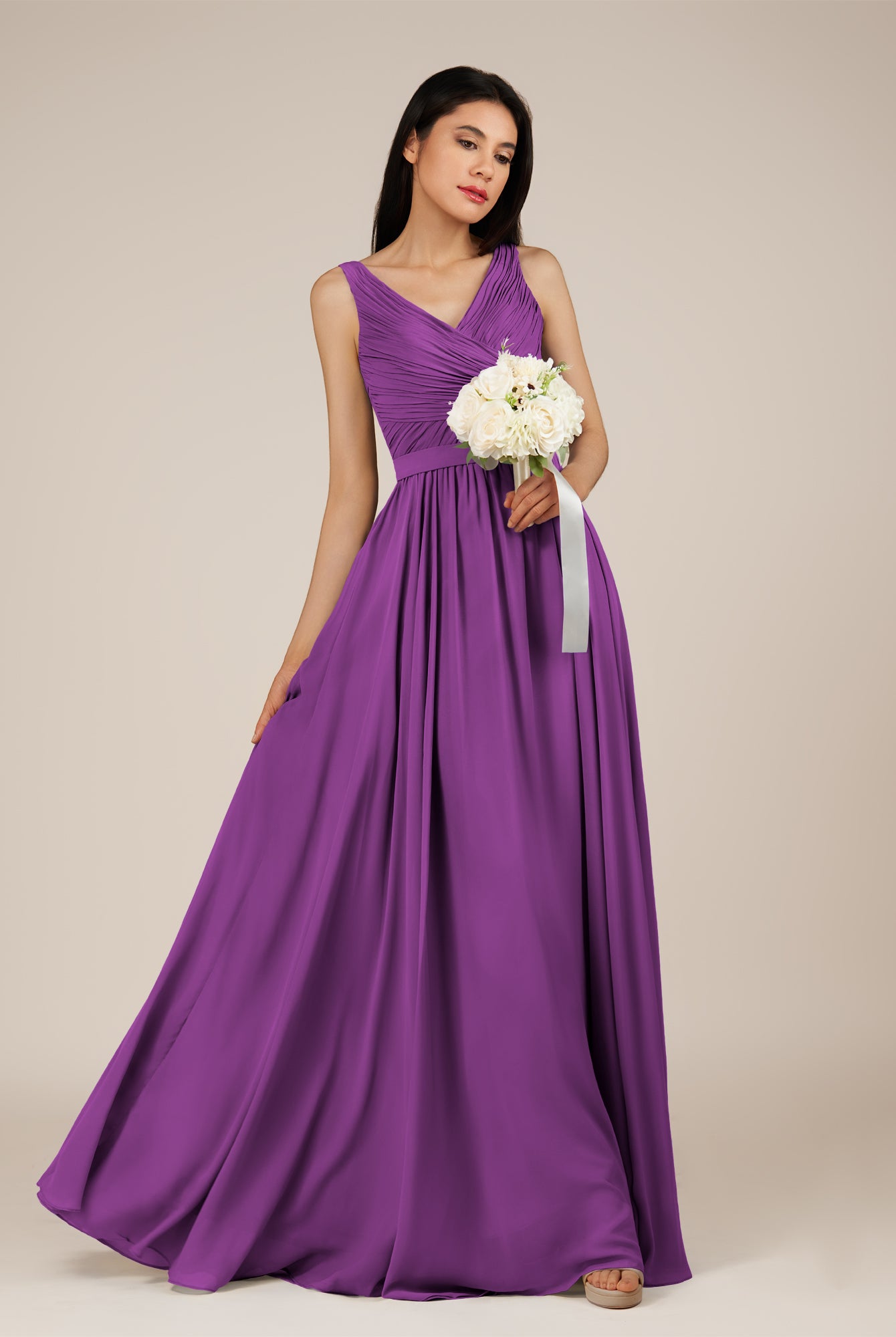 Lysander | Amethyst - A Line Chiffon V Neck Pleated Long Bridesmaid Dress