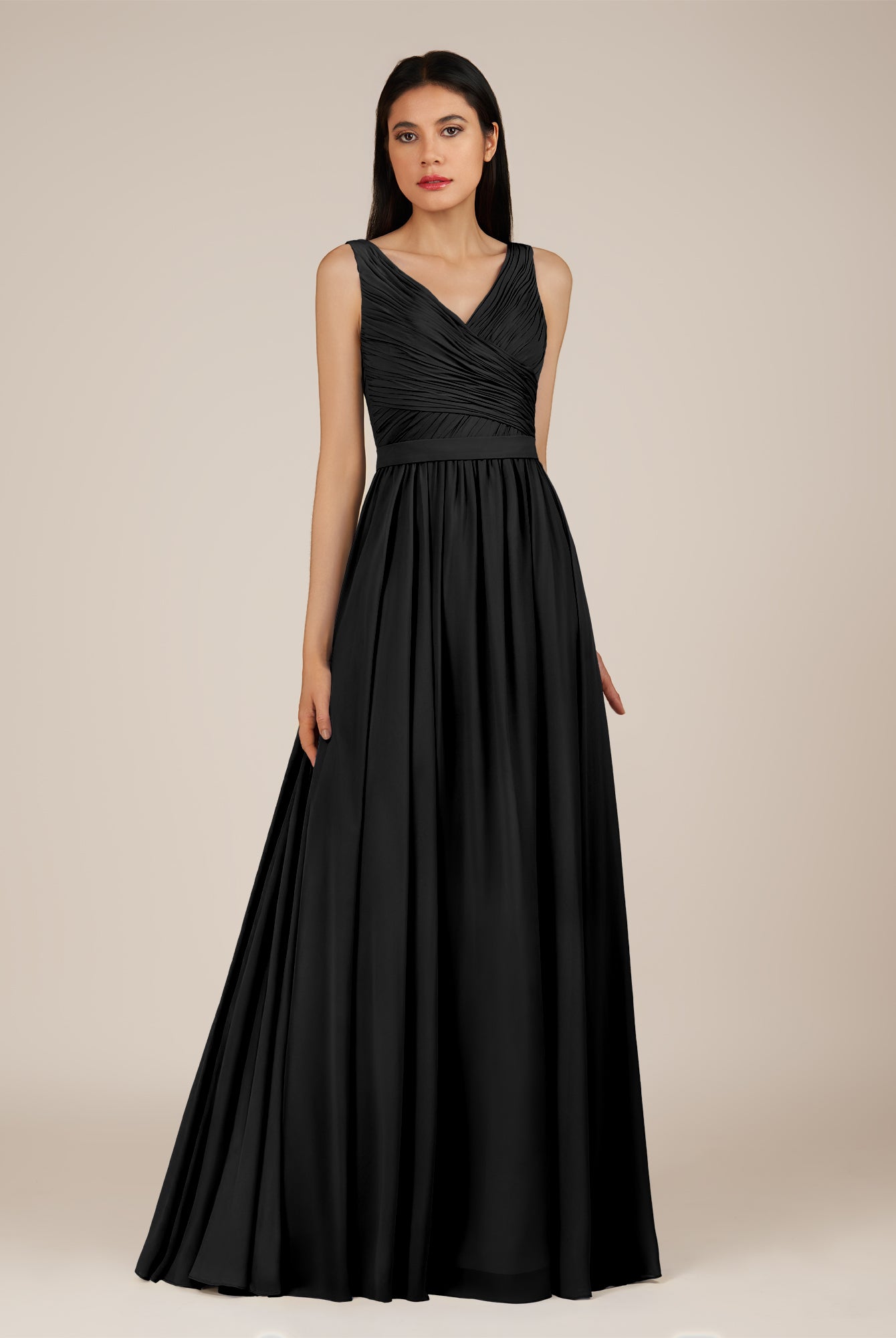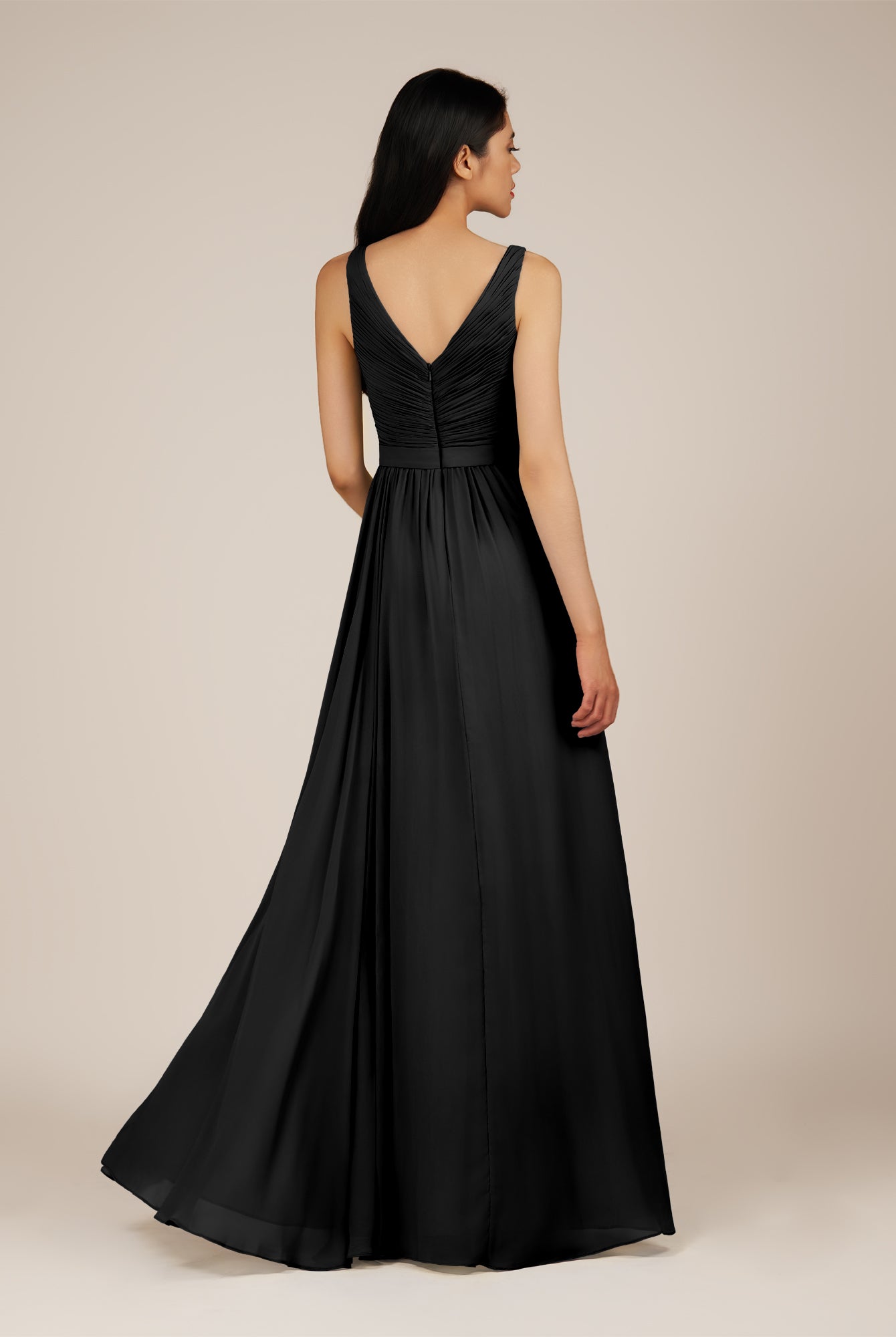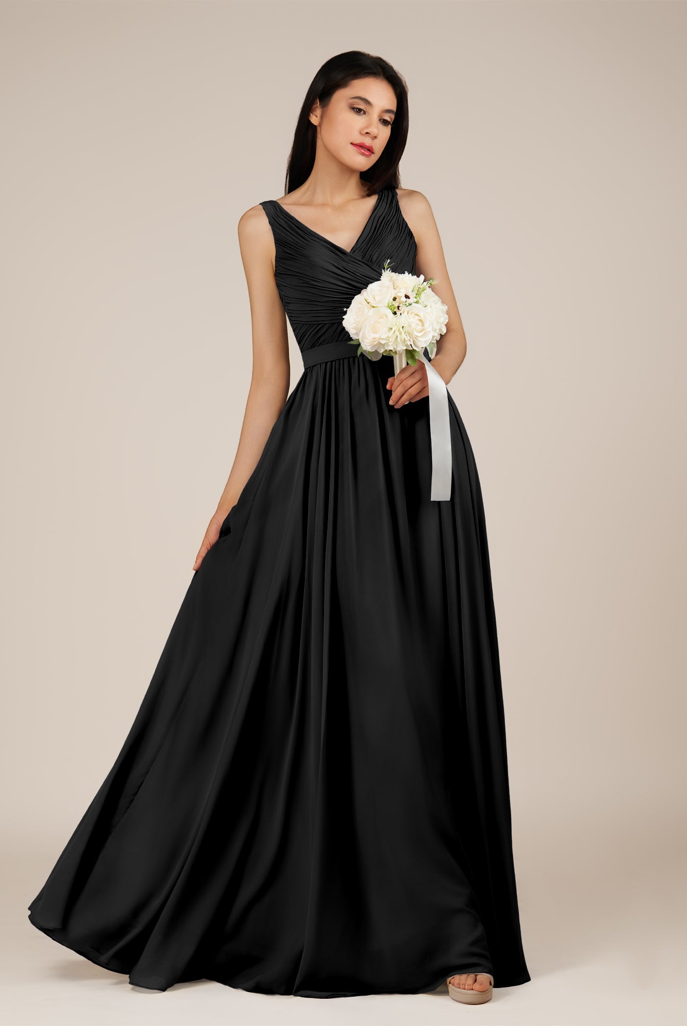 Lysander | Black - A Line Chiffon V Neck Pleated Long Bridesmaid Dress