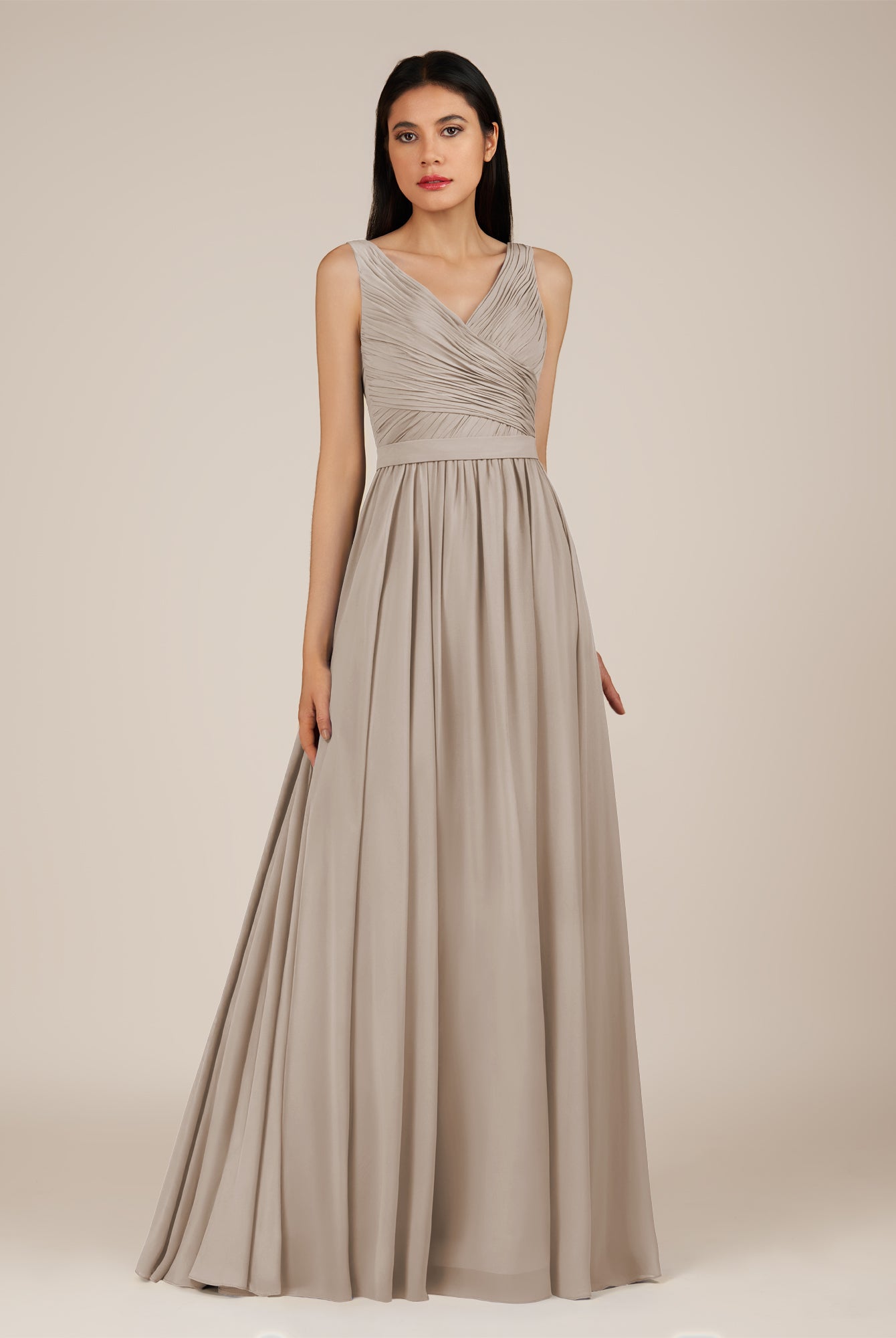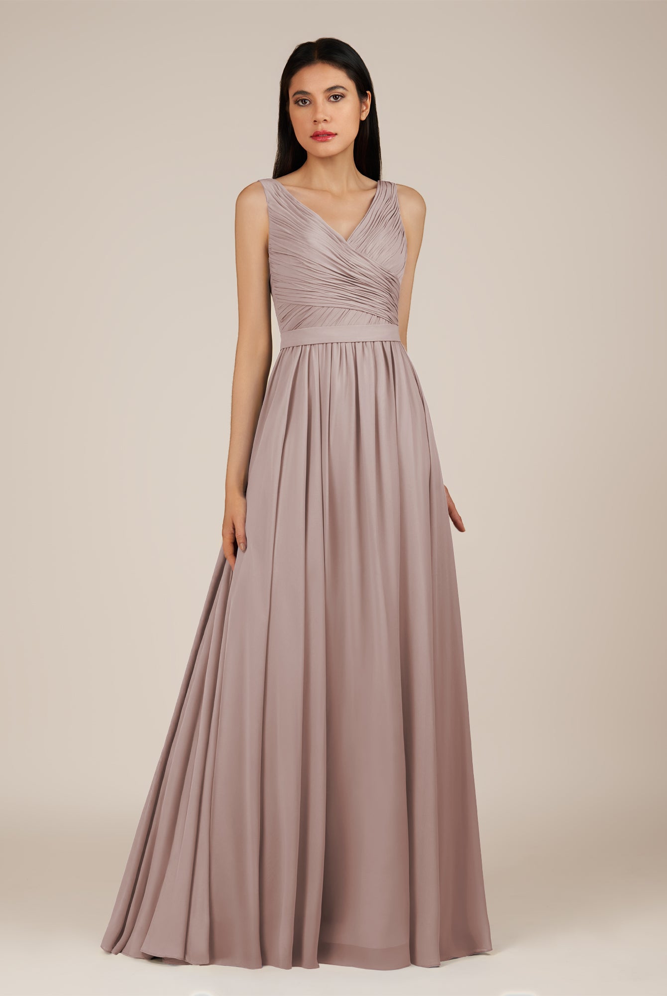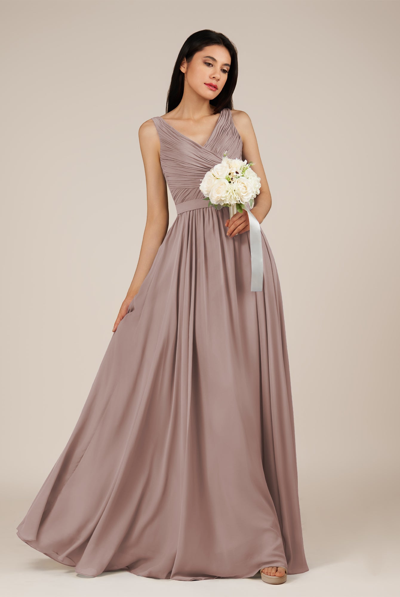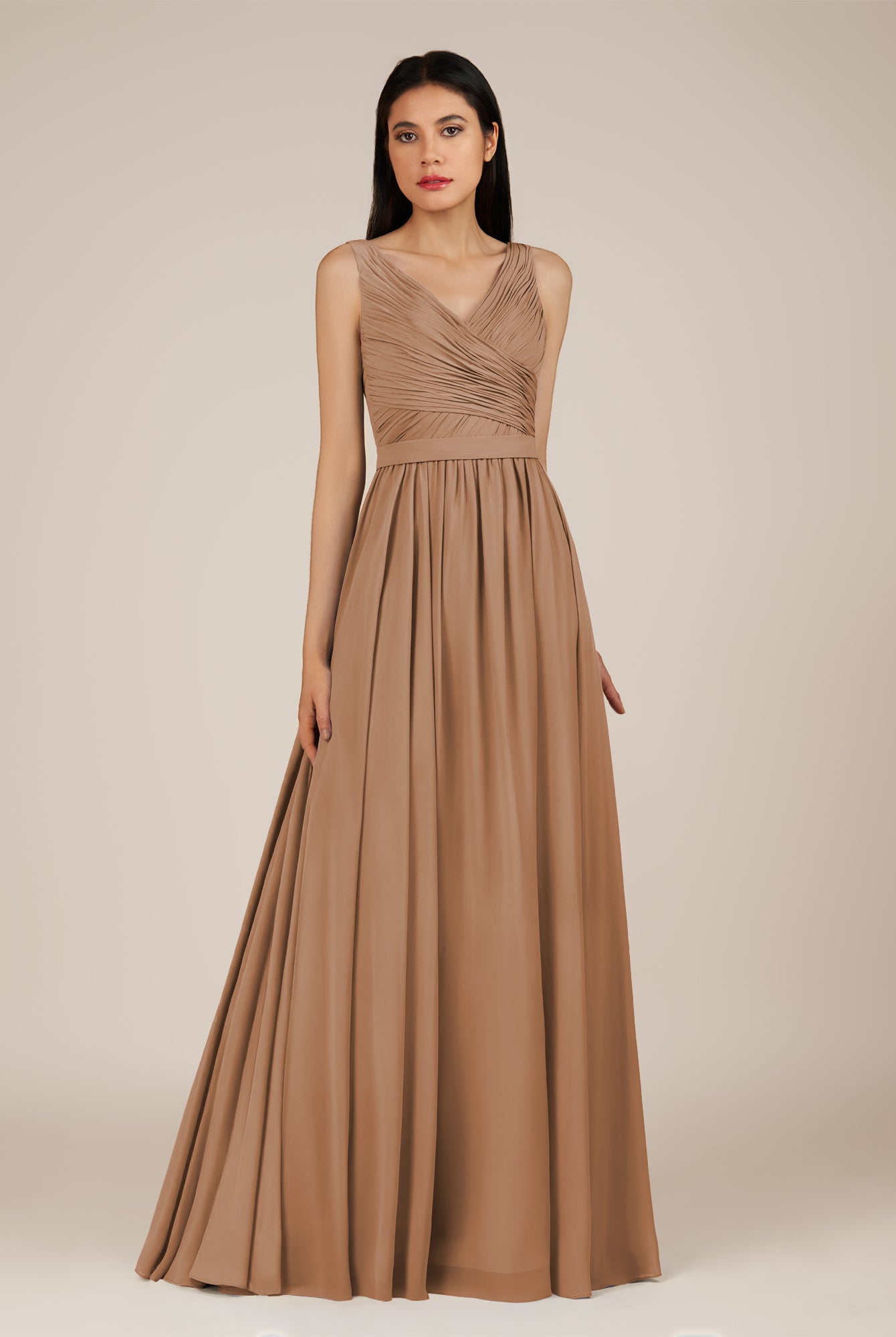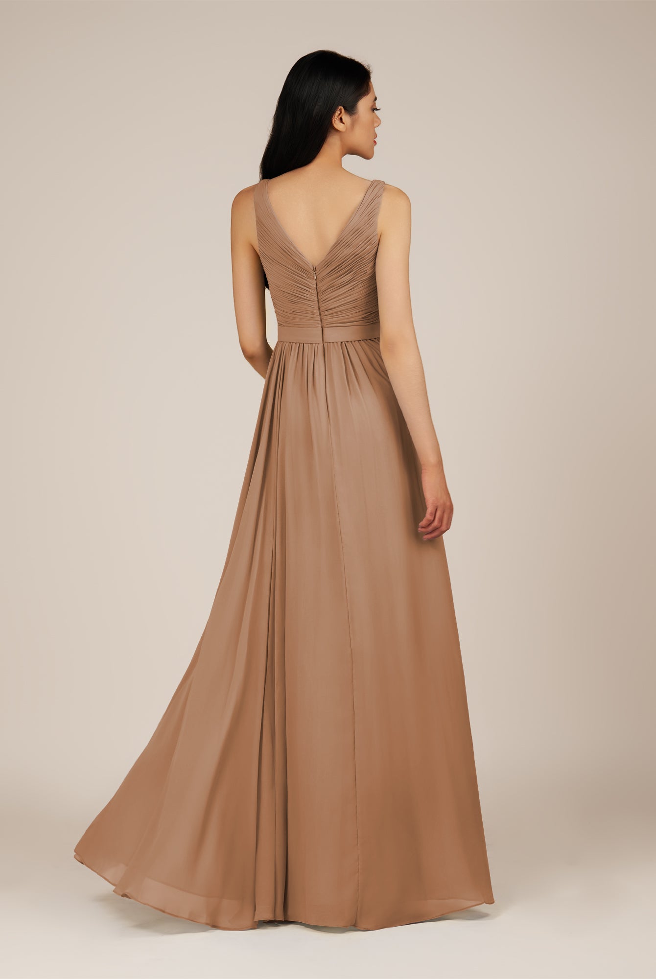 Lysander | Toffee - A Line Chiffon V Neck Pleated Long Bridesmaid Dress