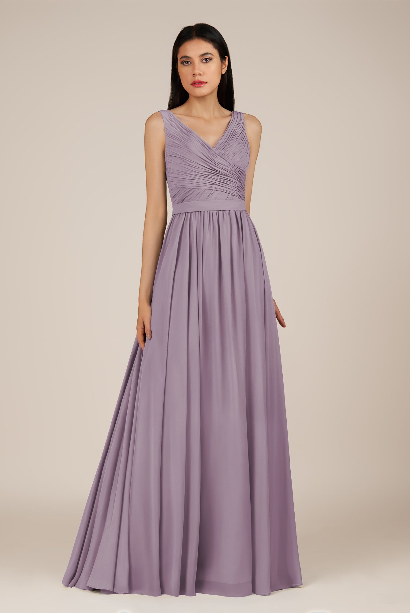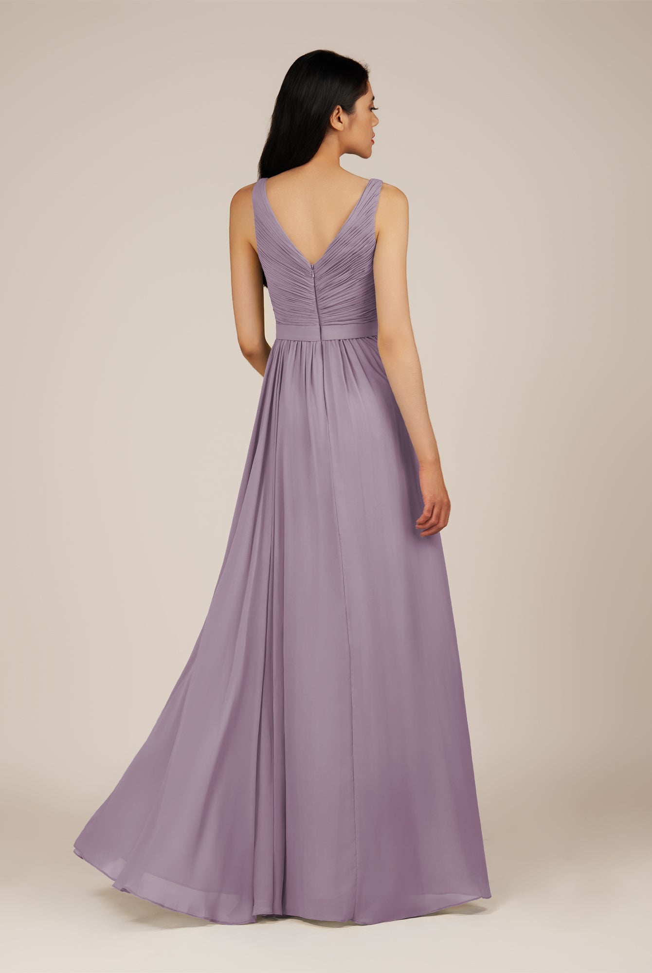 Lysander | Dusk - A Line Chiffon V Neck Pleated Long Bridesmaid Dress