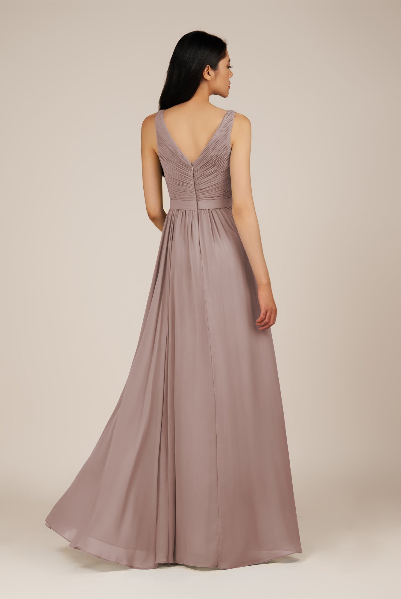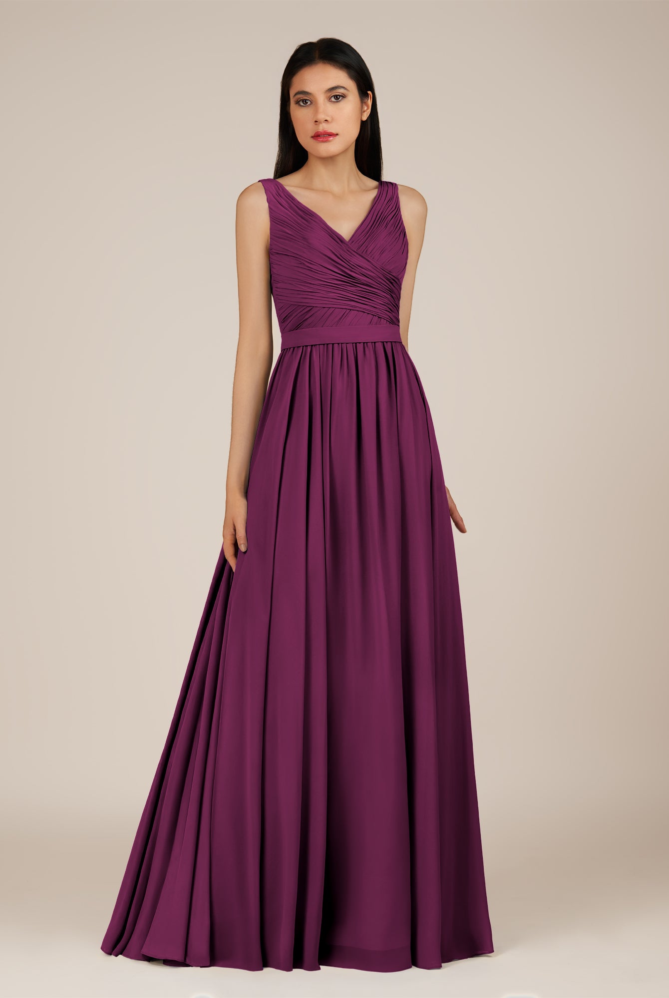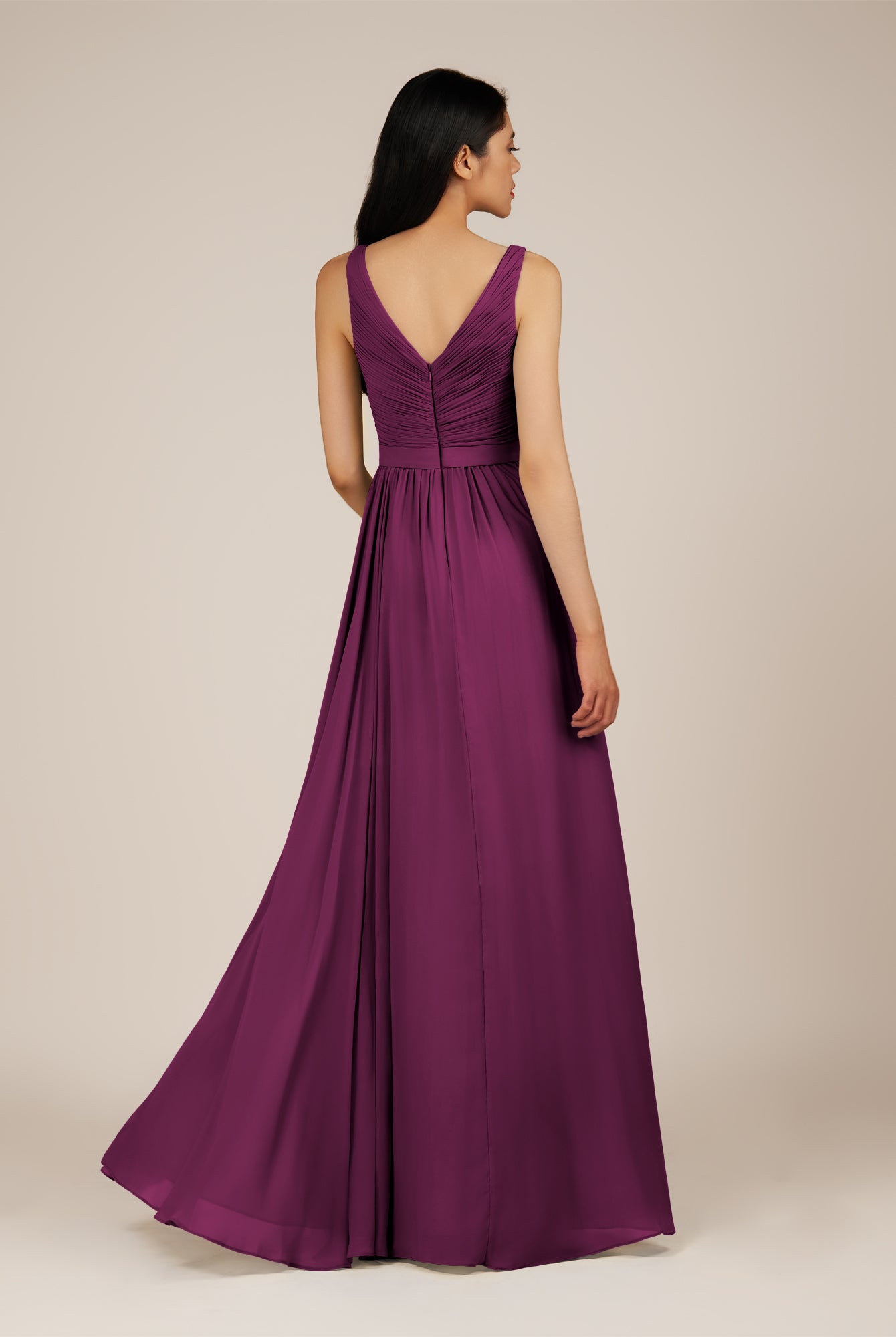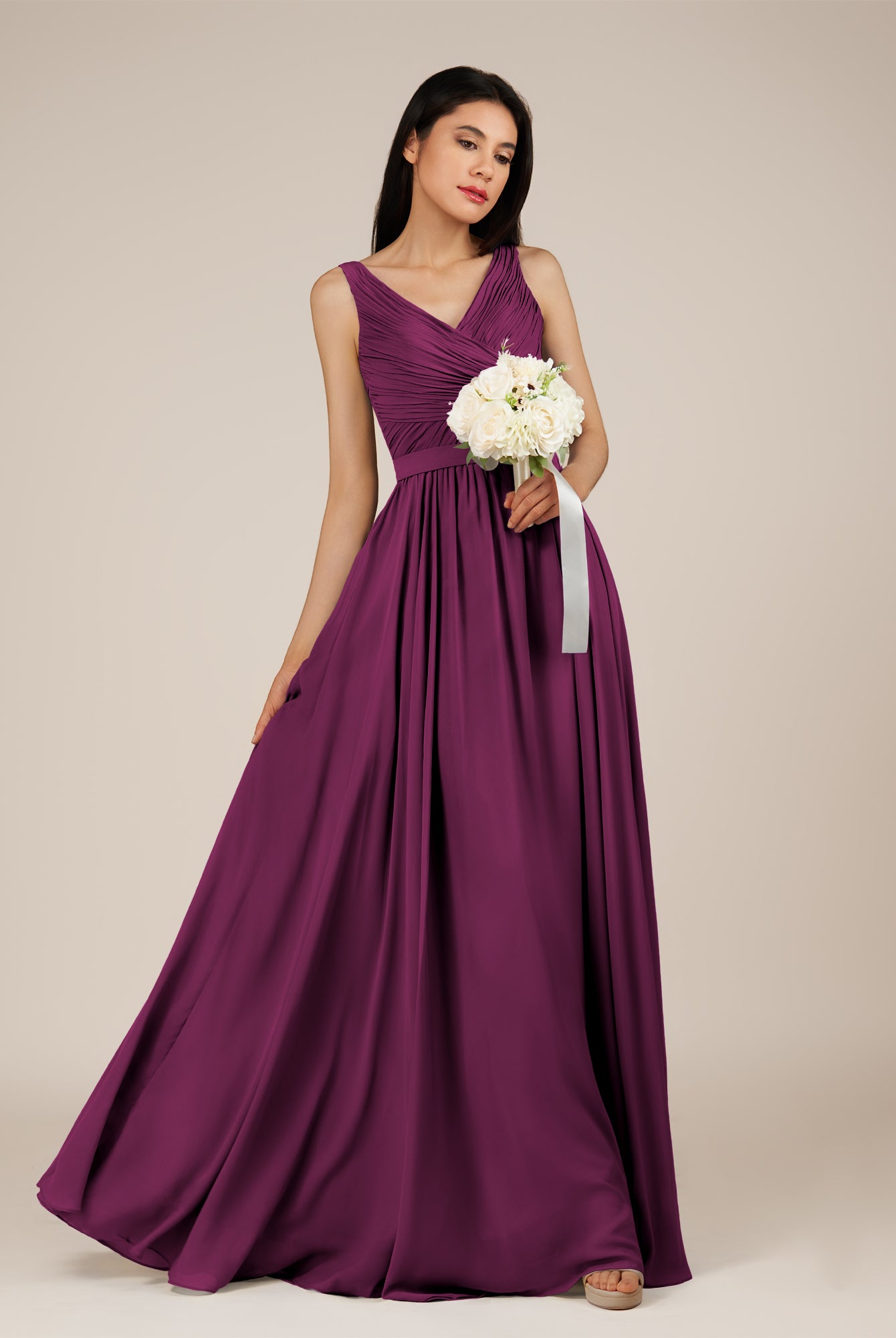 Lysander | Fig - A Line Chiffon V Neck Pleated Long Bridesmaid Dress