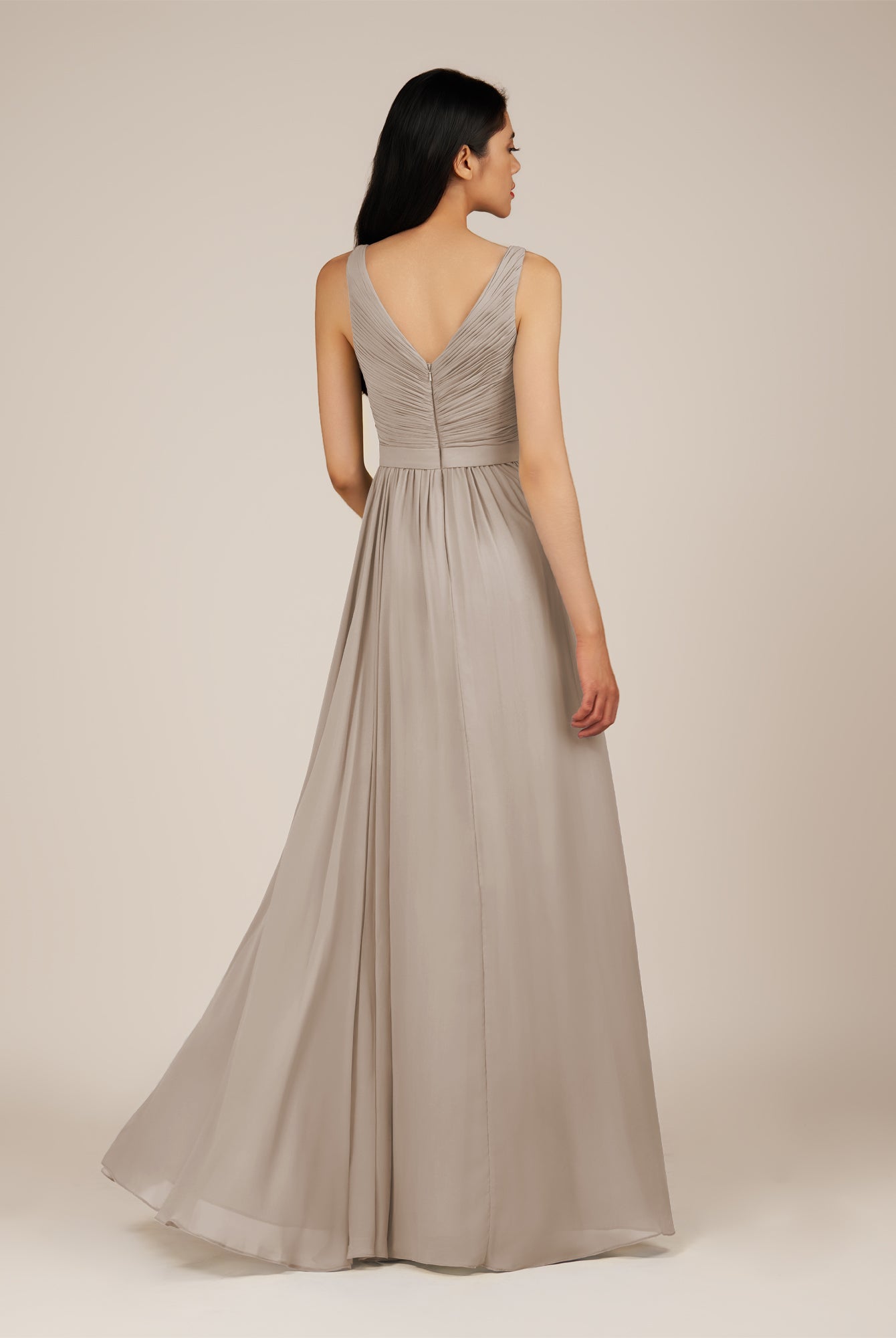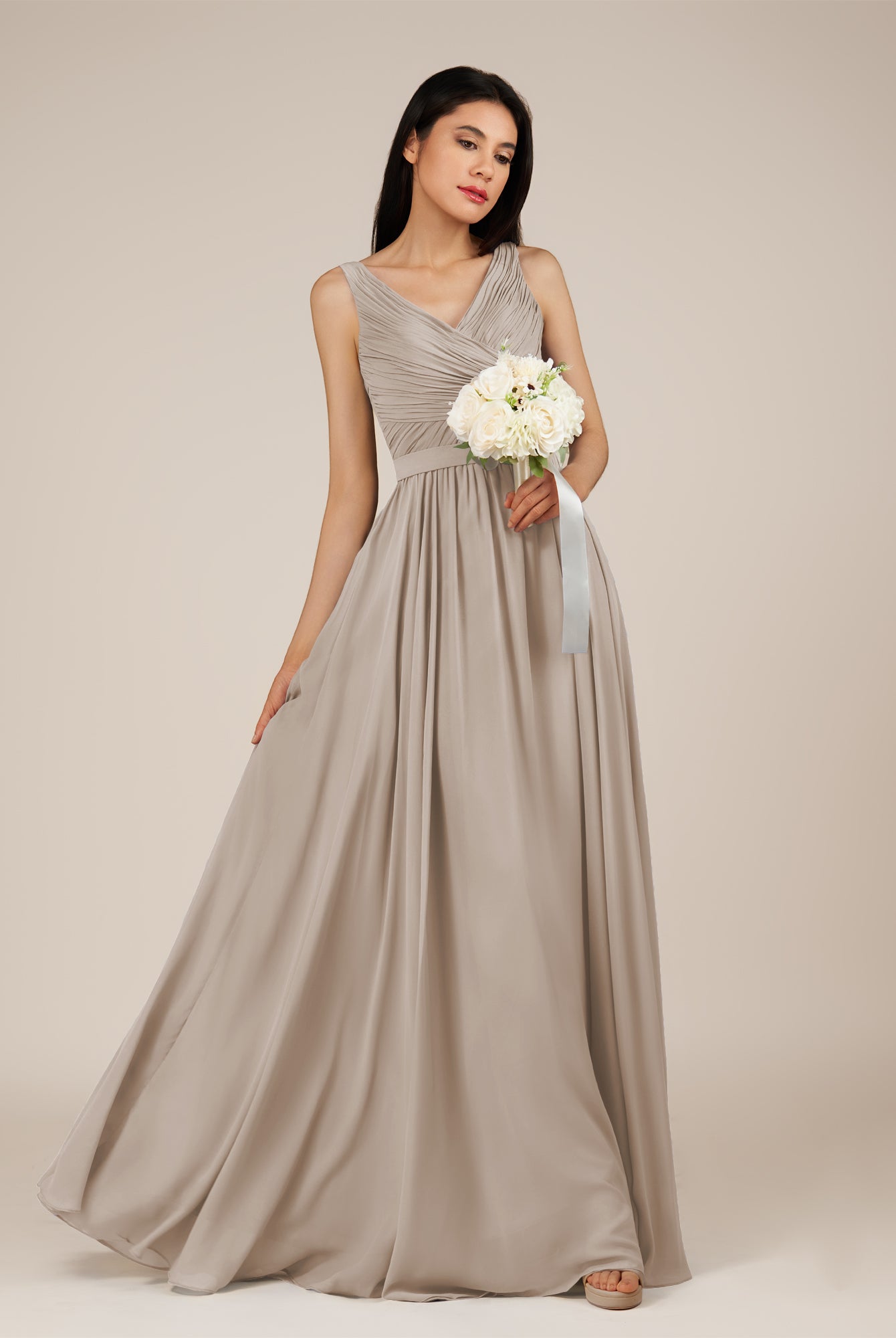 Lysander | Dove Gray - A Line Chiffon V Neck Pleated Long Bridesmaid Dress
