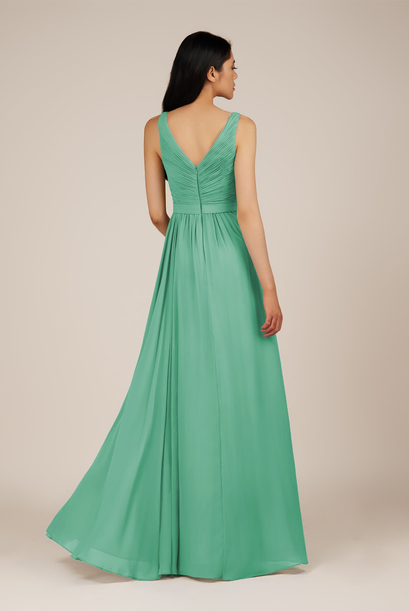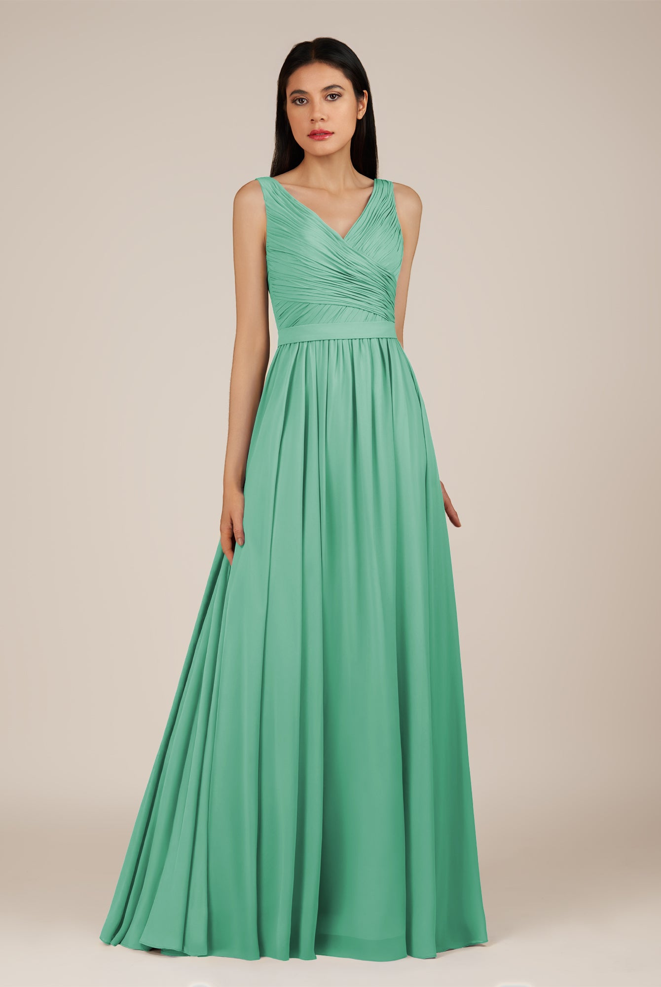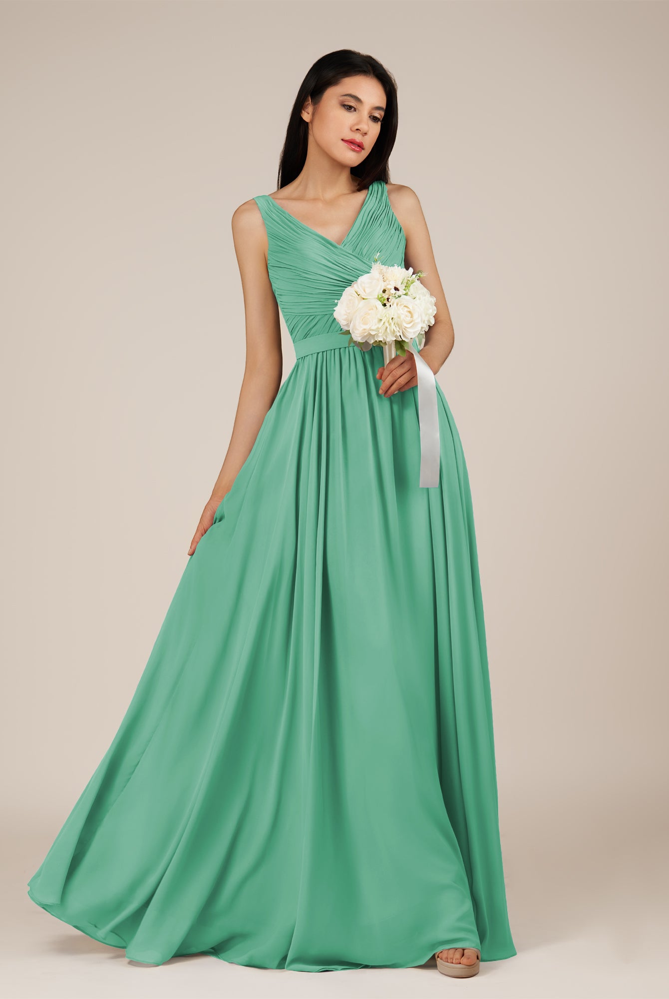 Lysander | Turquoise - A Line Chiffon V Neck Pleated Long Bridesmaid Dress