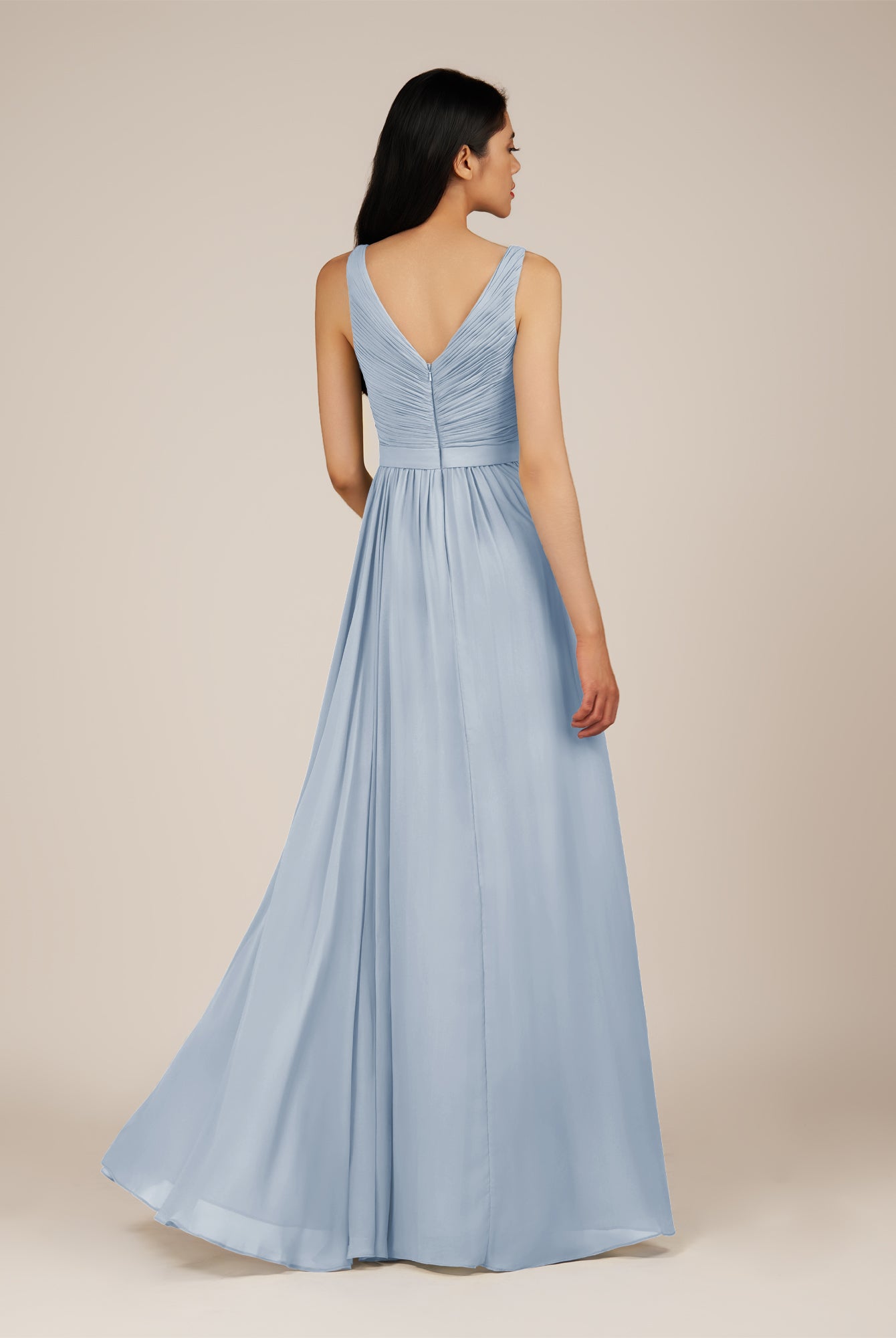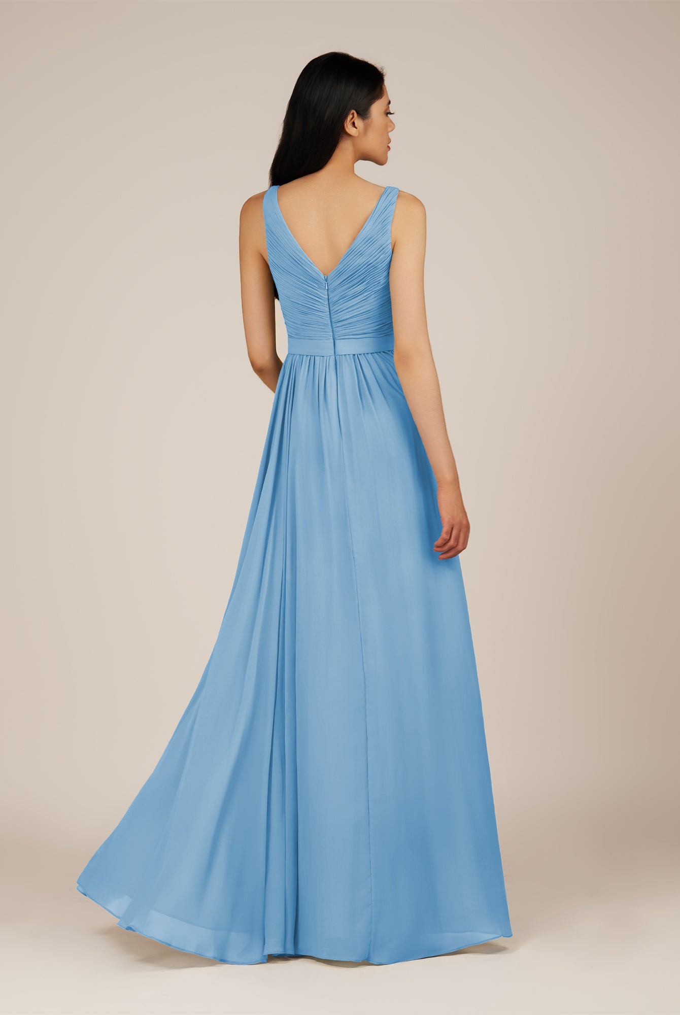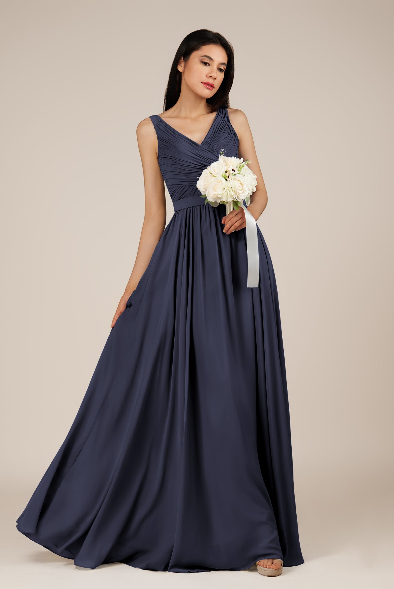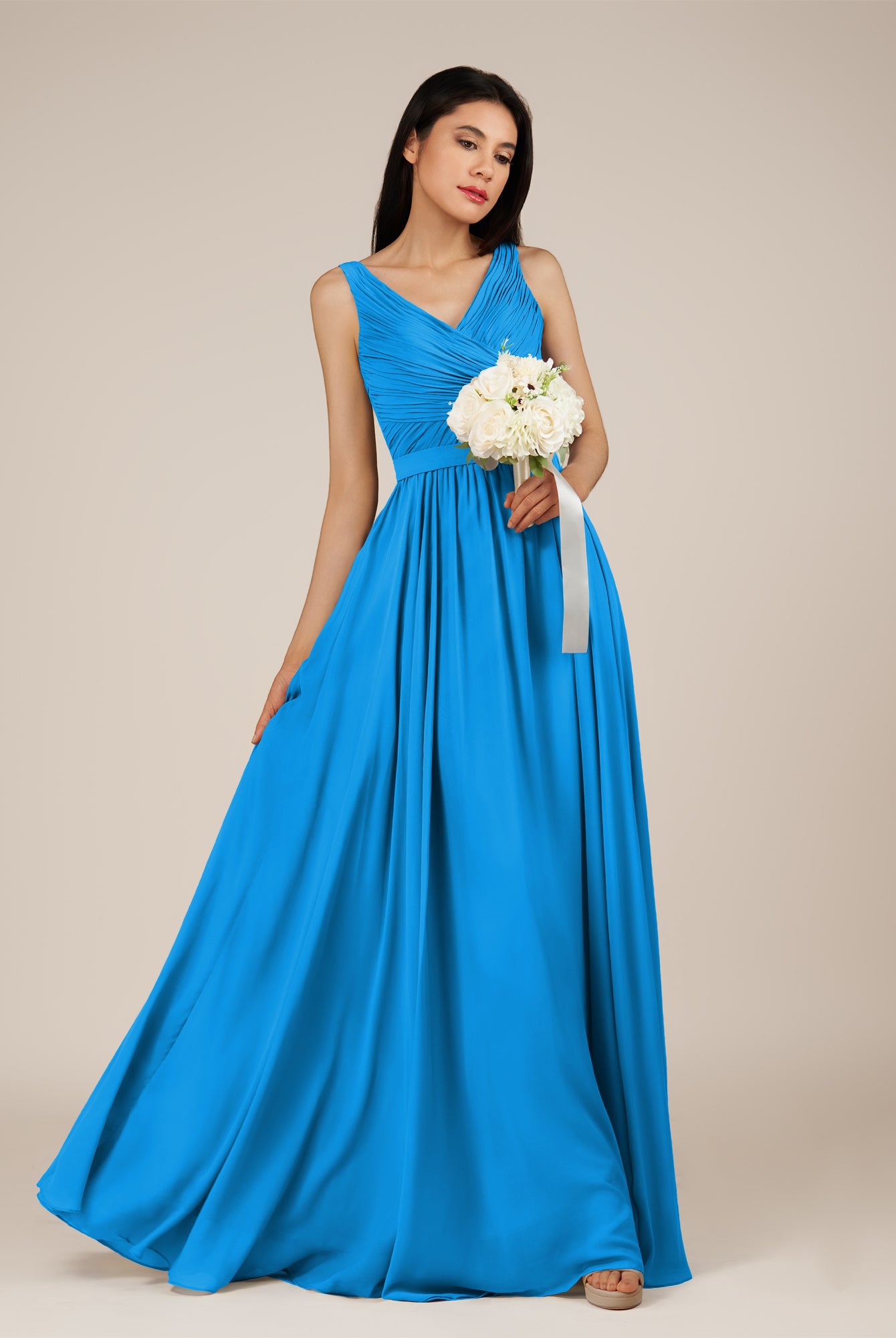 Lysander | Blue Jay - A Line Chiffon V Neck Pleated Long Bridesmaid Dress