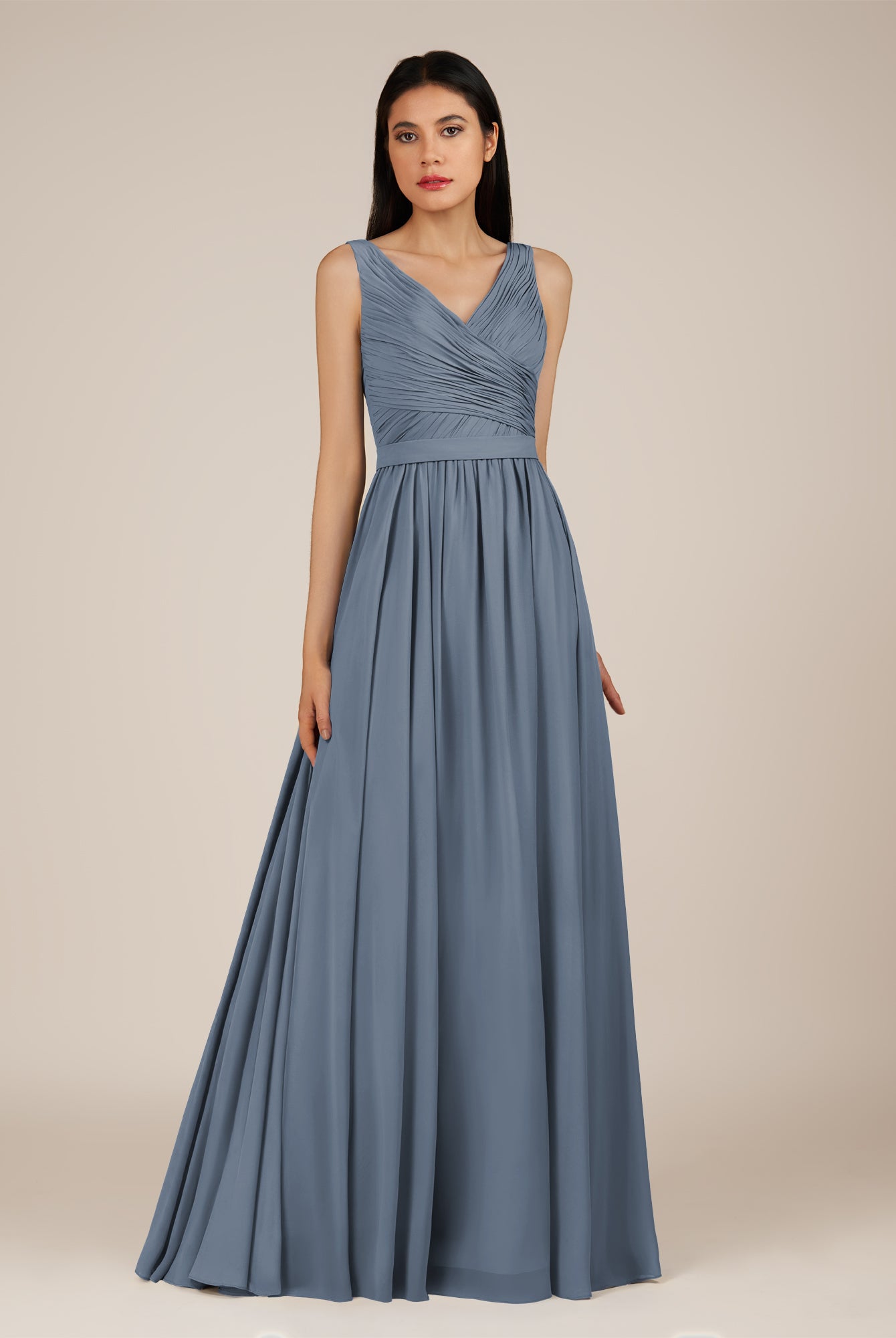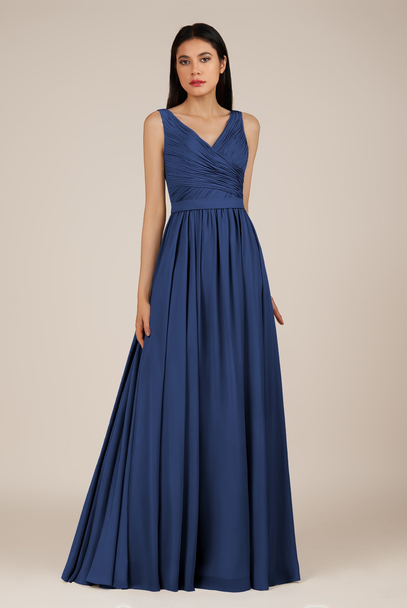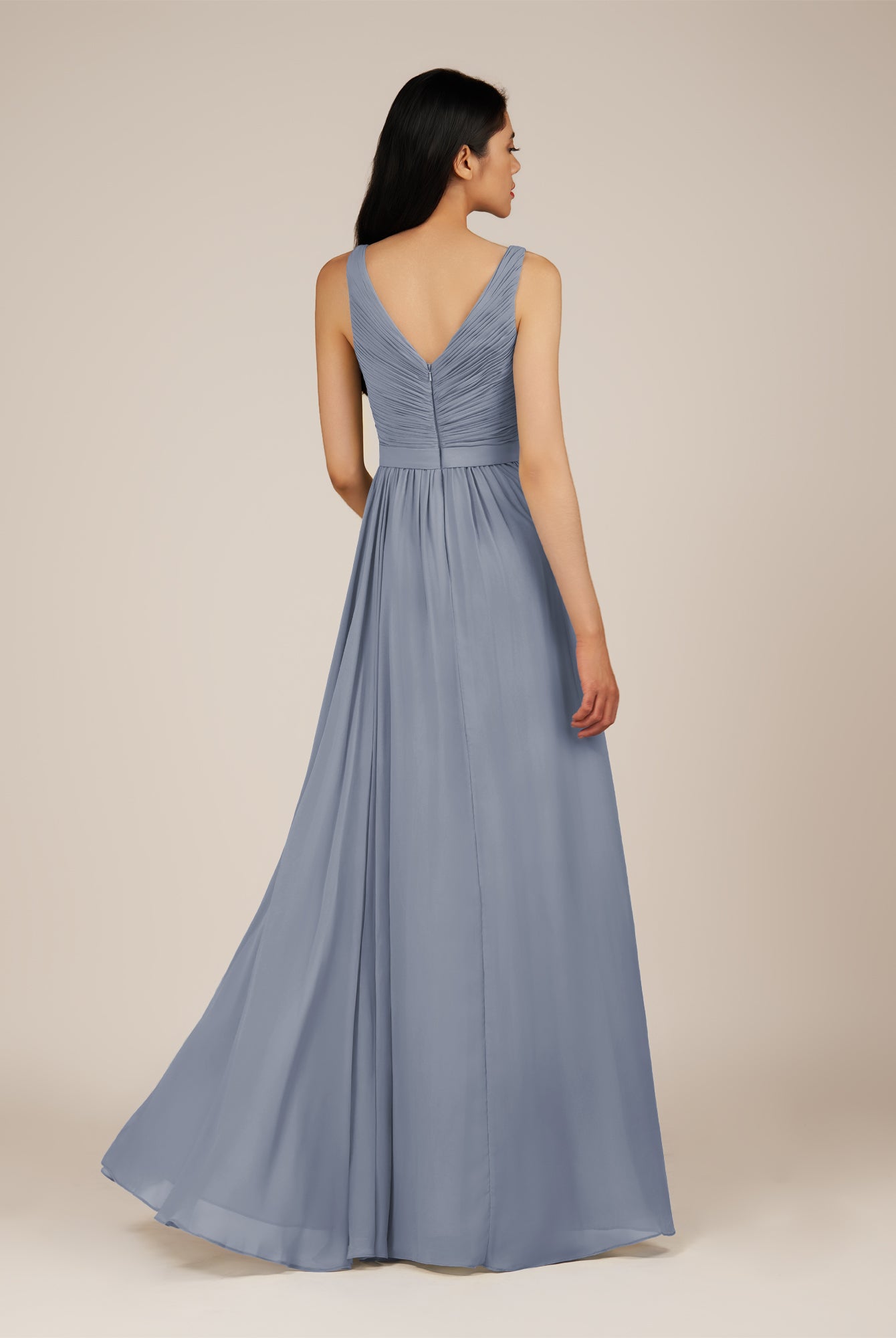 Lysander | Blue Jay - A Line Chiffon V Neck Pleated Long Bridesmaid Dress