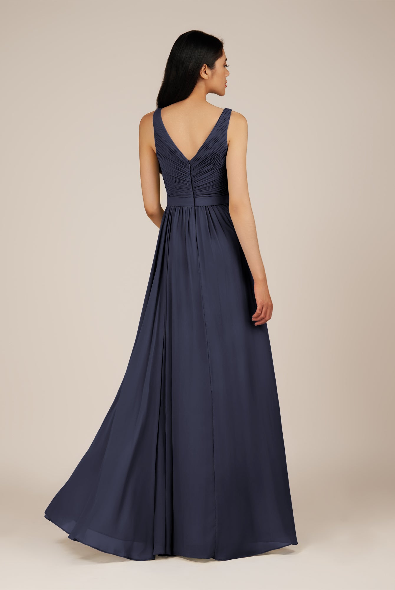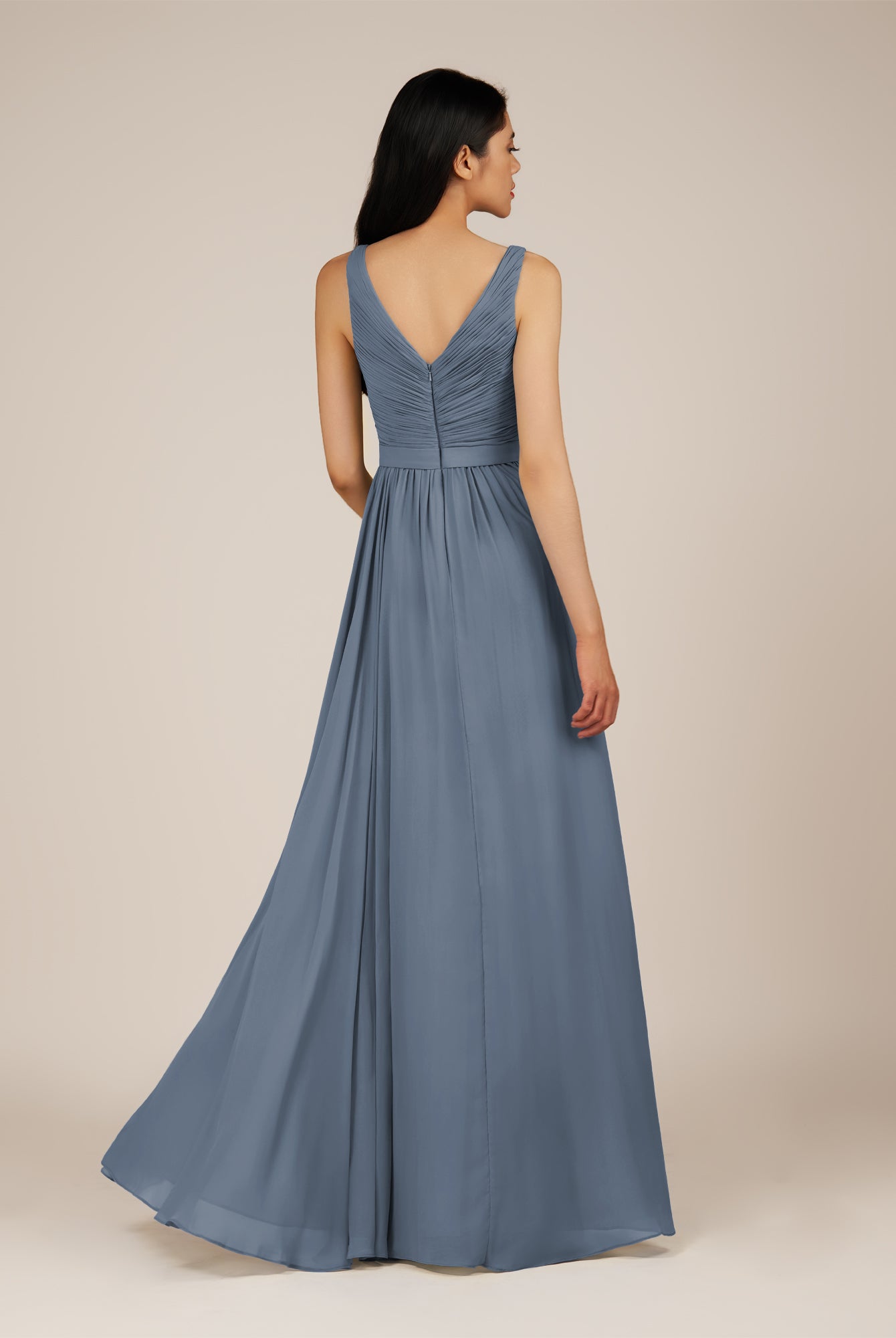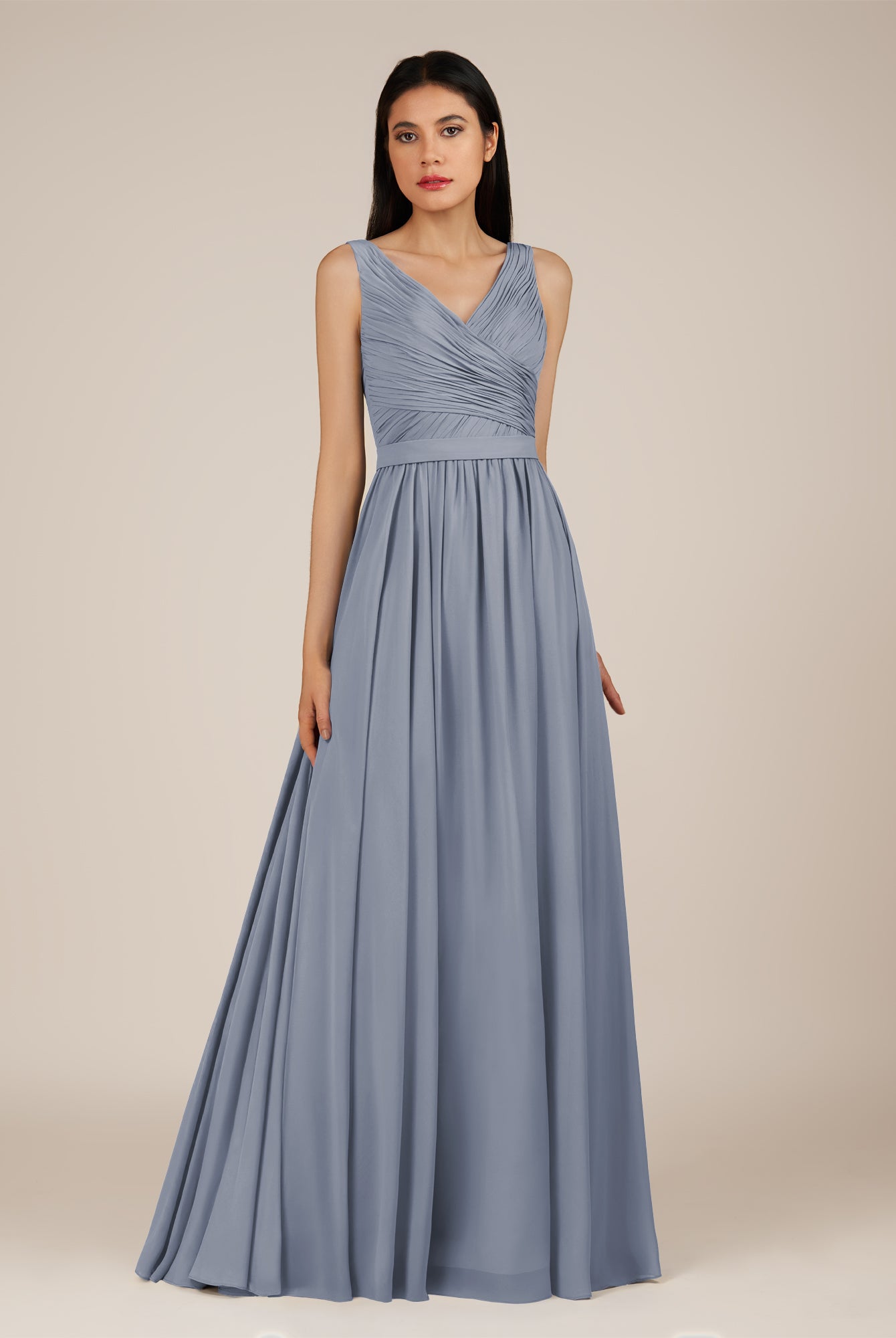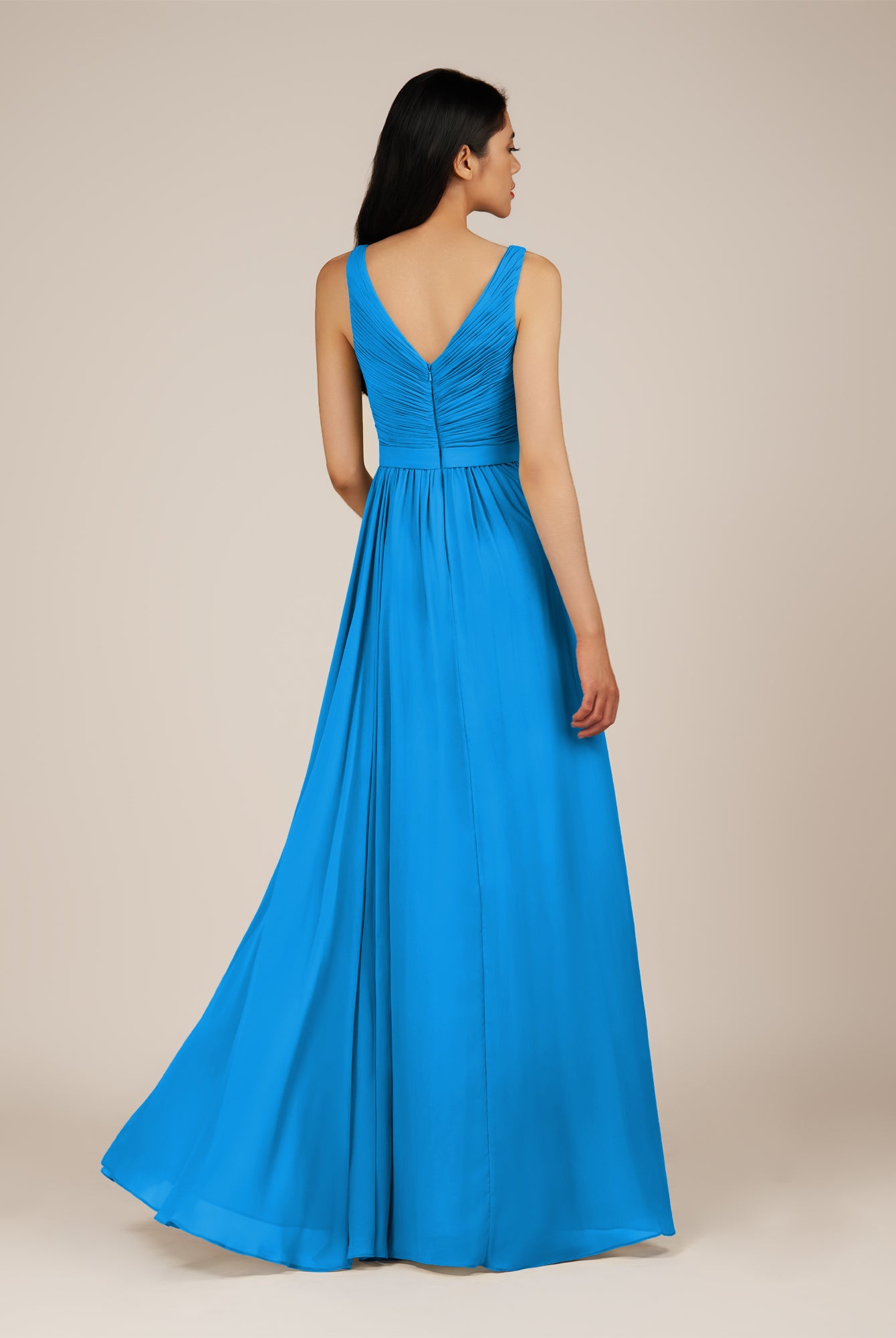 Lysander | Blue Jay - A Line Chiffon V Neck Pleated Long Bridesmaid Dress