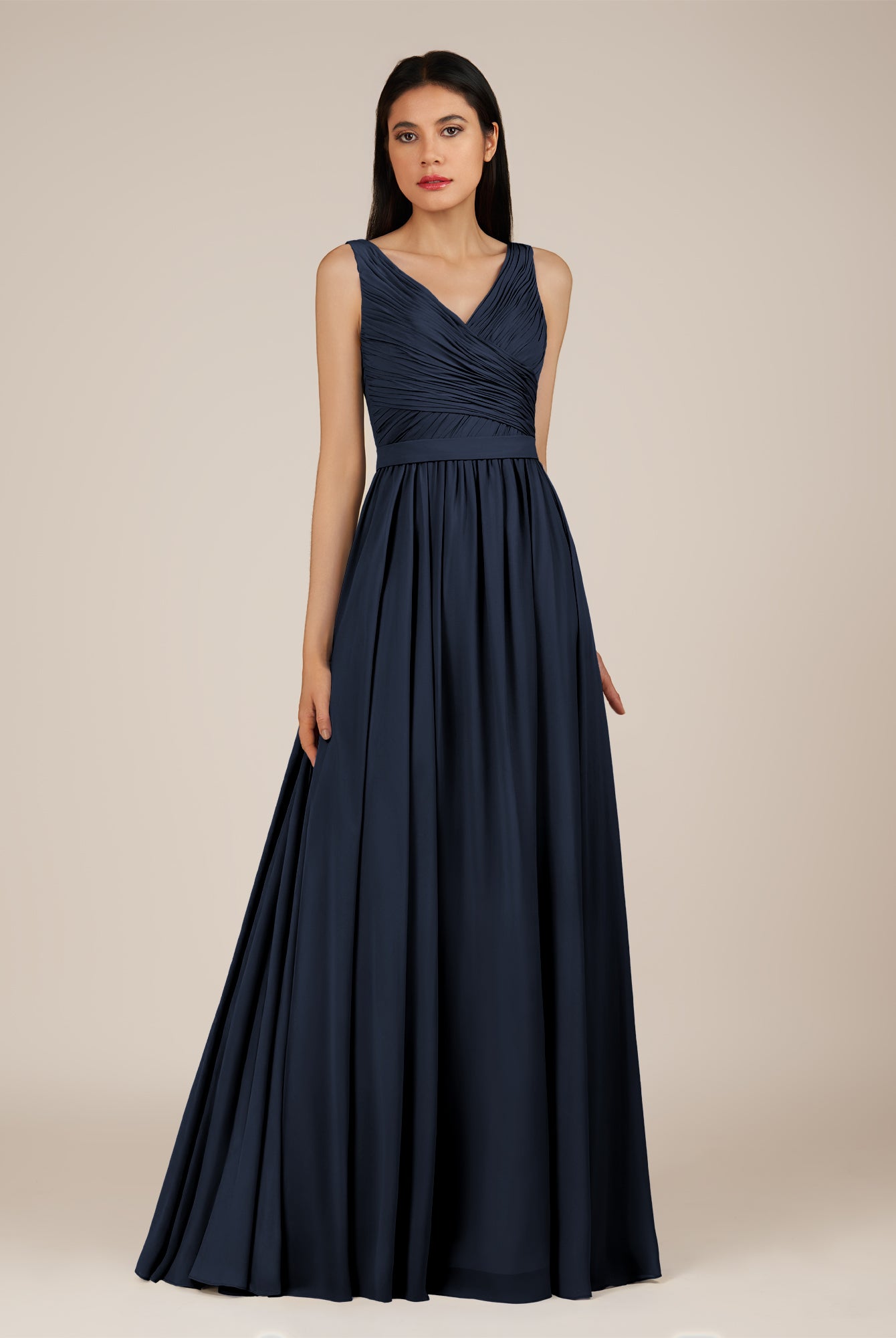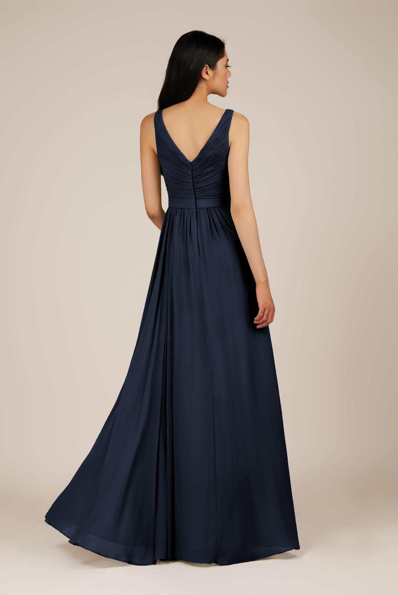 Lysander | Navy - A Line Chiffon V Neck Pleated Long Bridesmaid Dress