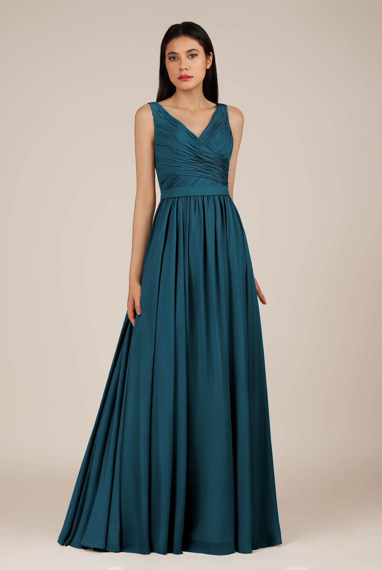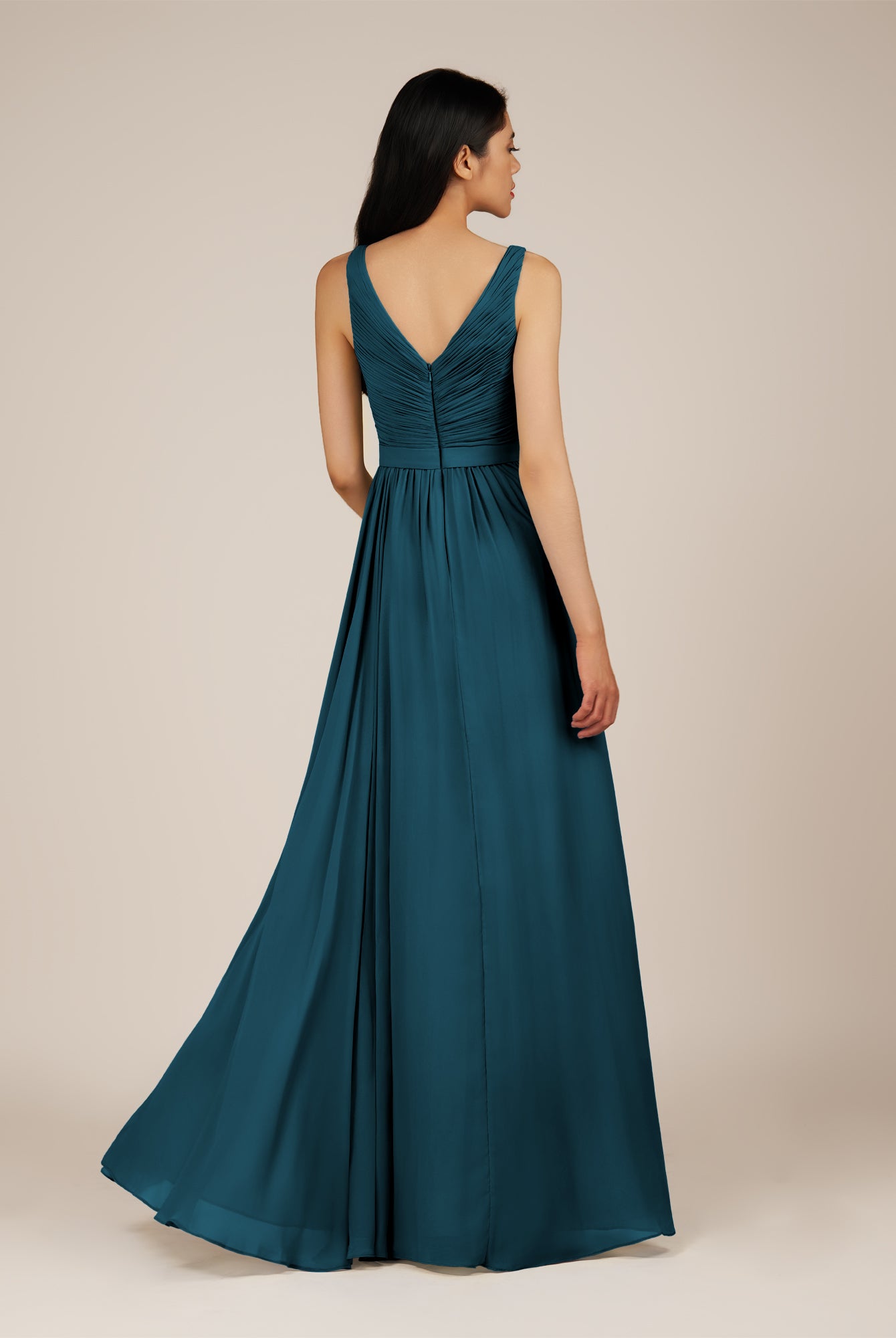 Lysander | Neptune - A Line Chiffon V Neck Pleated Long Bridesmaid Dress