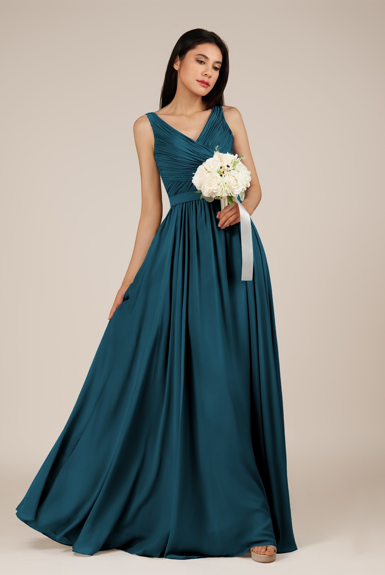 Lysander | Dark Teal - A Line Chiffon V Neck Pleated Long Bridesmaid Dress