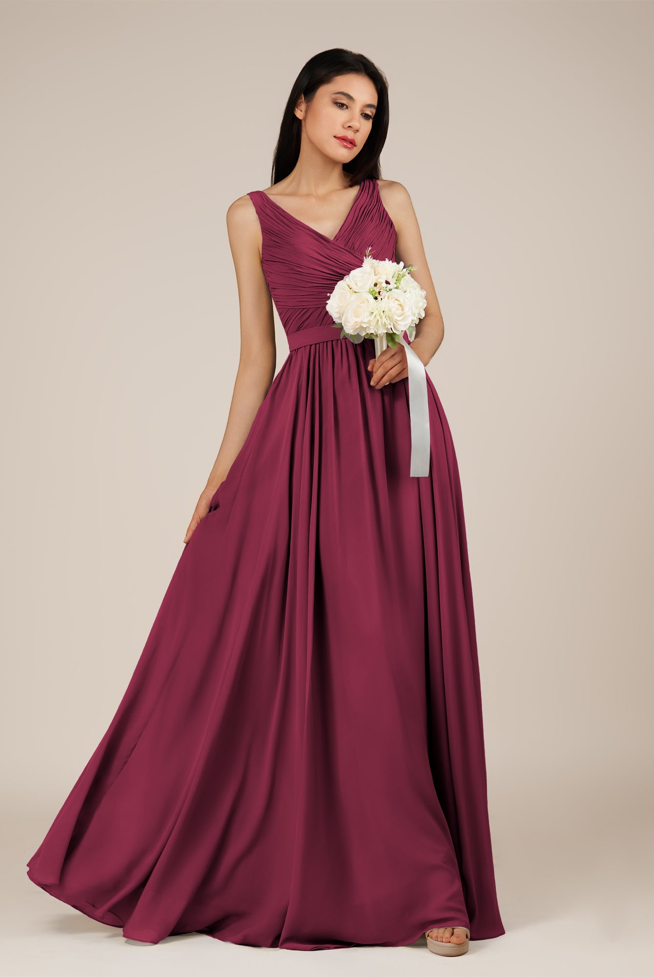 Lysander | Tahiti - A Line Chiffon V Neck Pleated Long Bridesmaid Dress