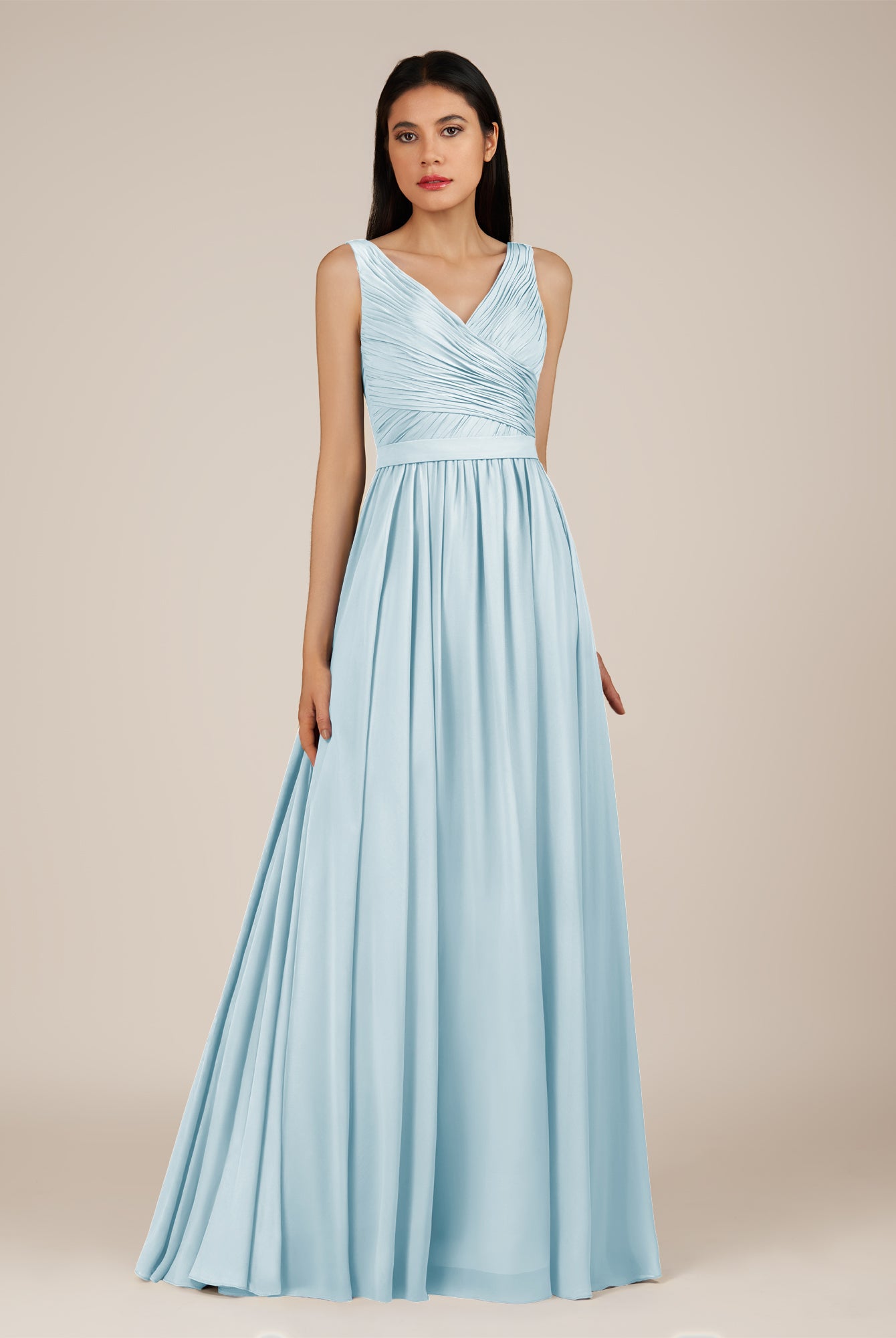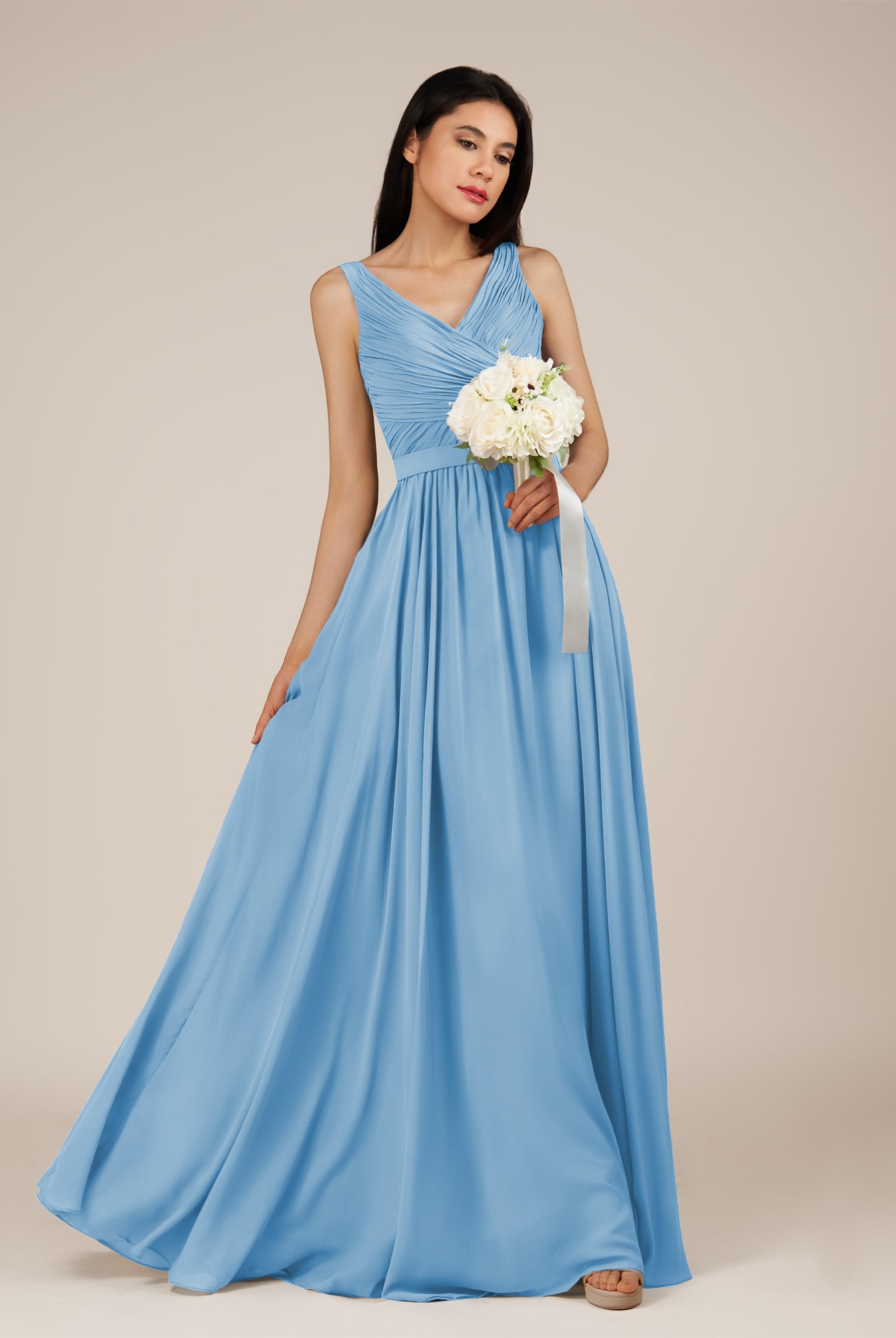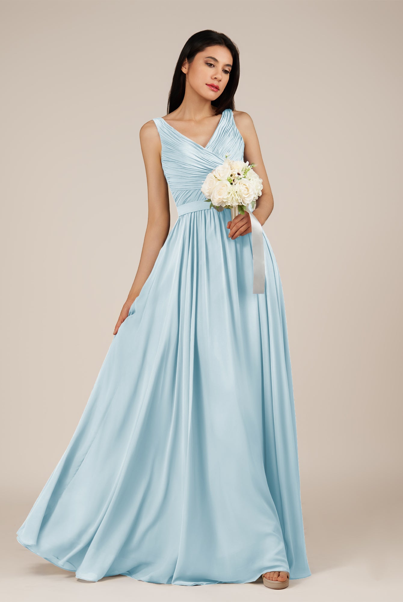 Lysander | Sky Blue - A Line Chiffon V Neck Pleated Long Bridesmaid Dress
