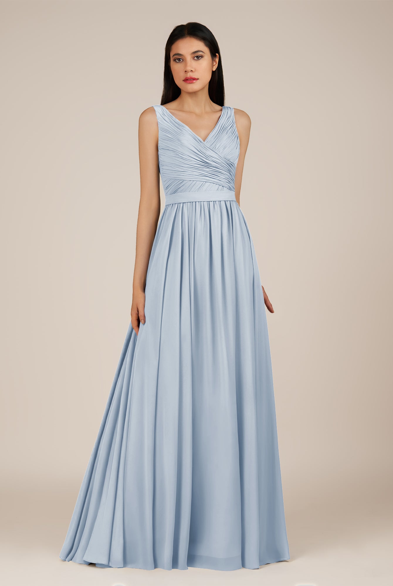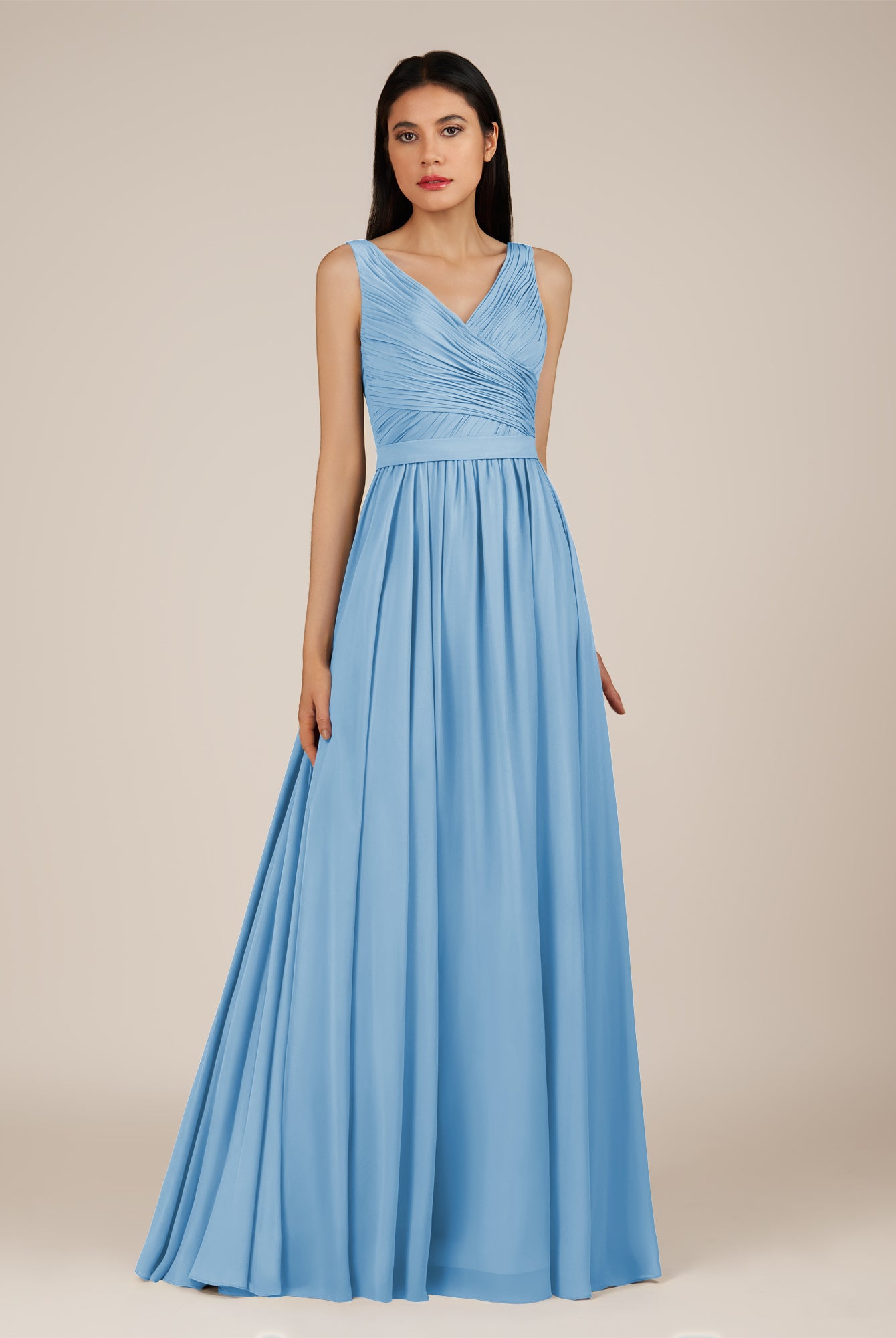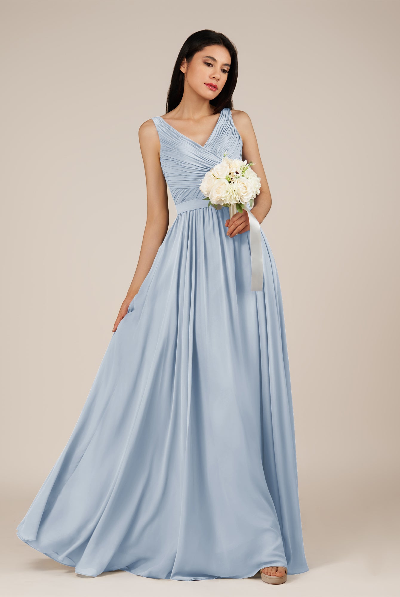 Lysander | Sky Blue - A Line Chiffon V Neck Pleated Long Bridesmaid Dress