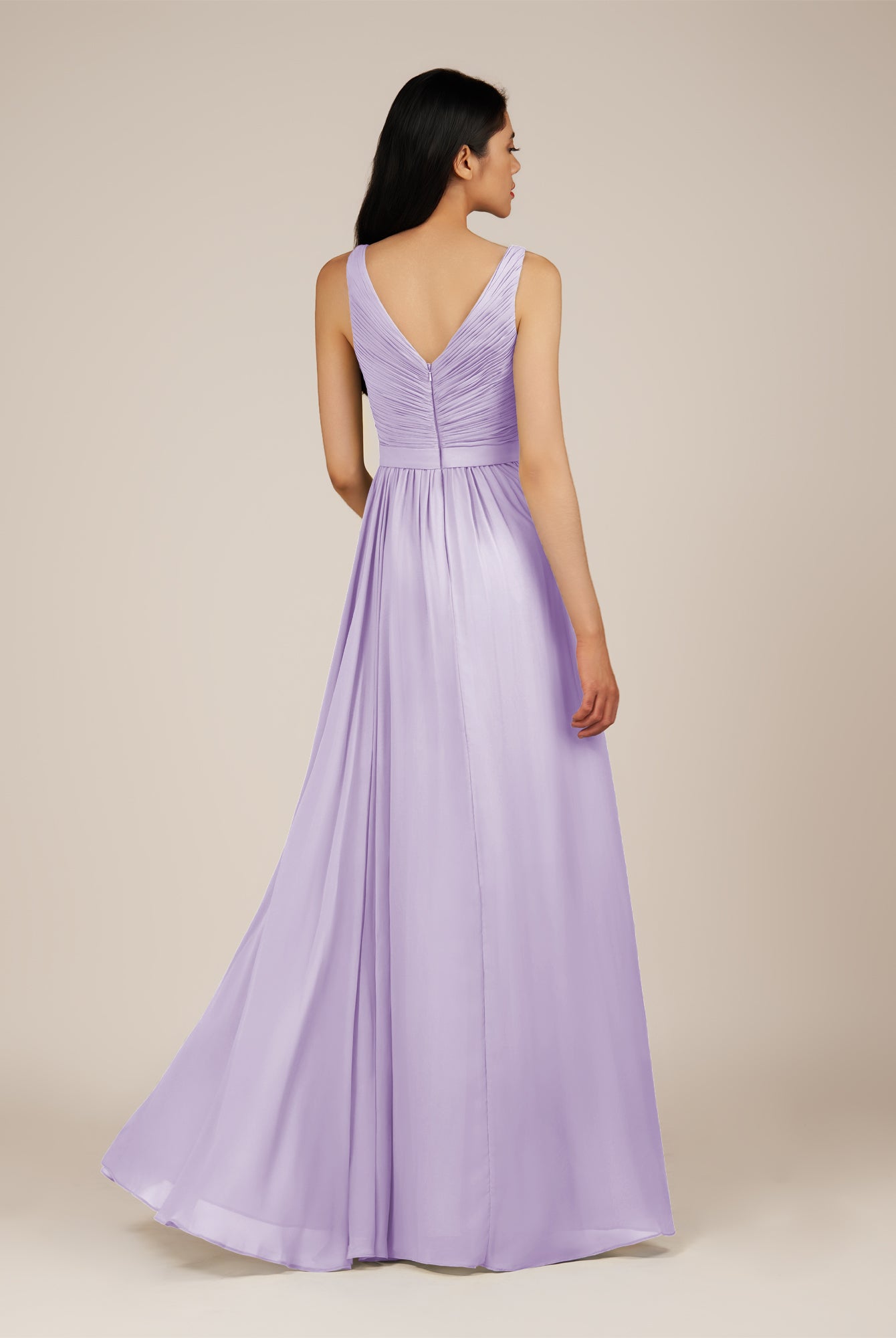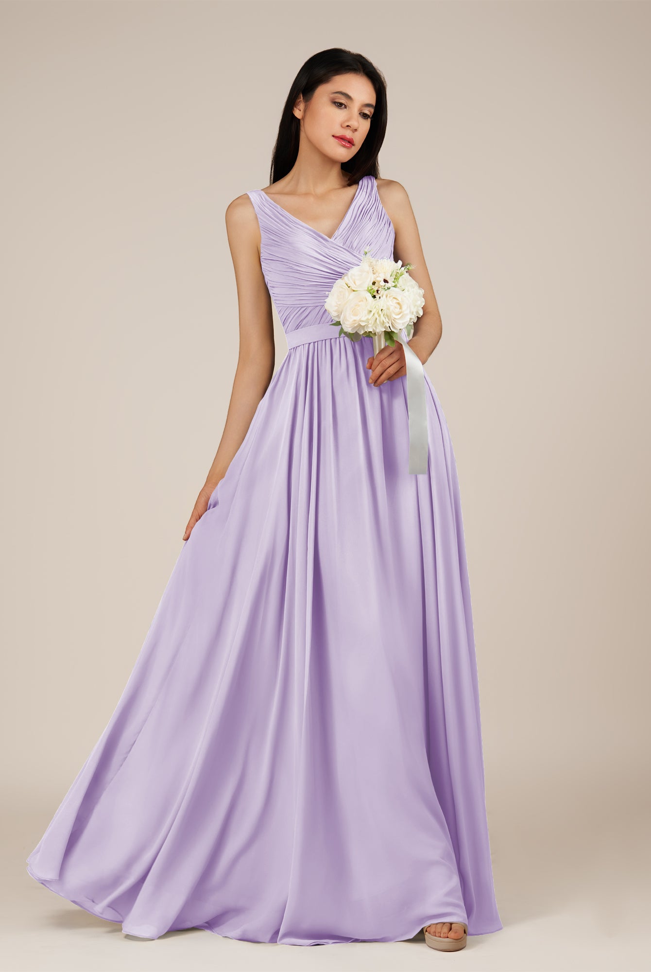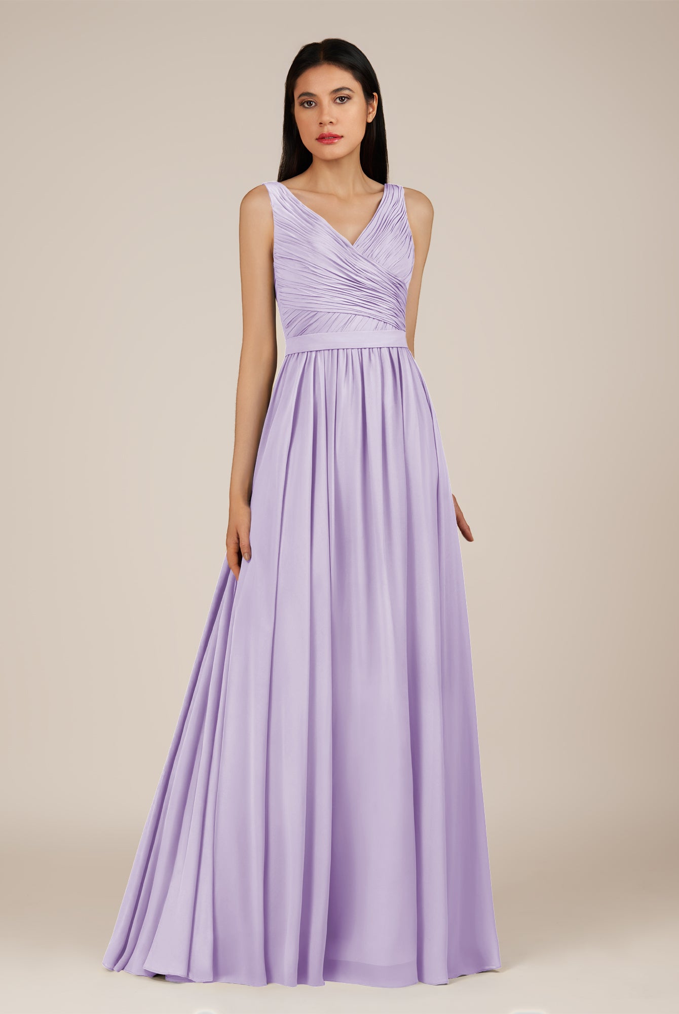 Lysander | Lavender - A Line Chiffon V Neck Pleated Long Bridesmaid Dress