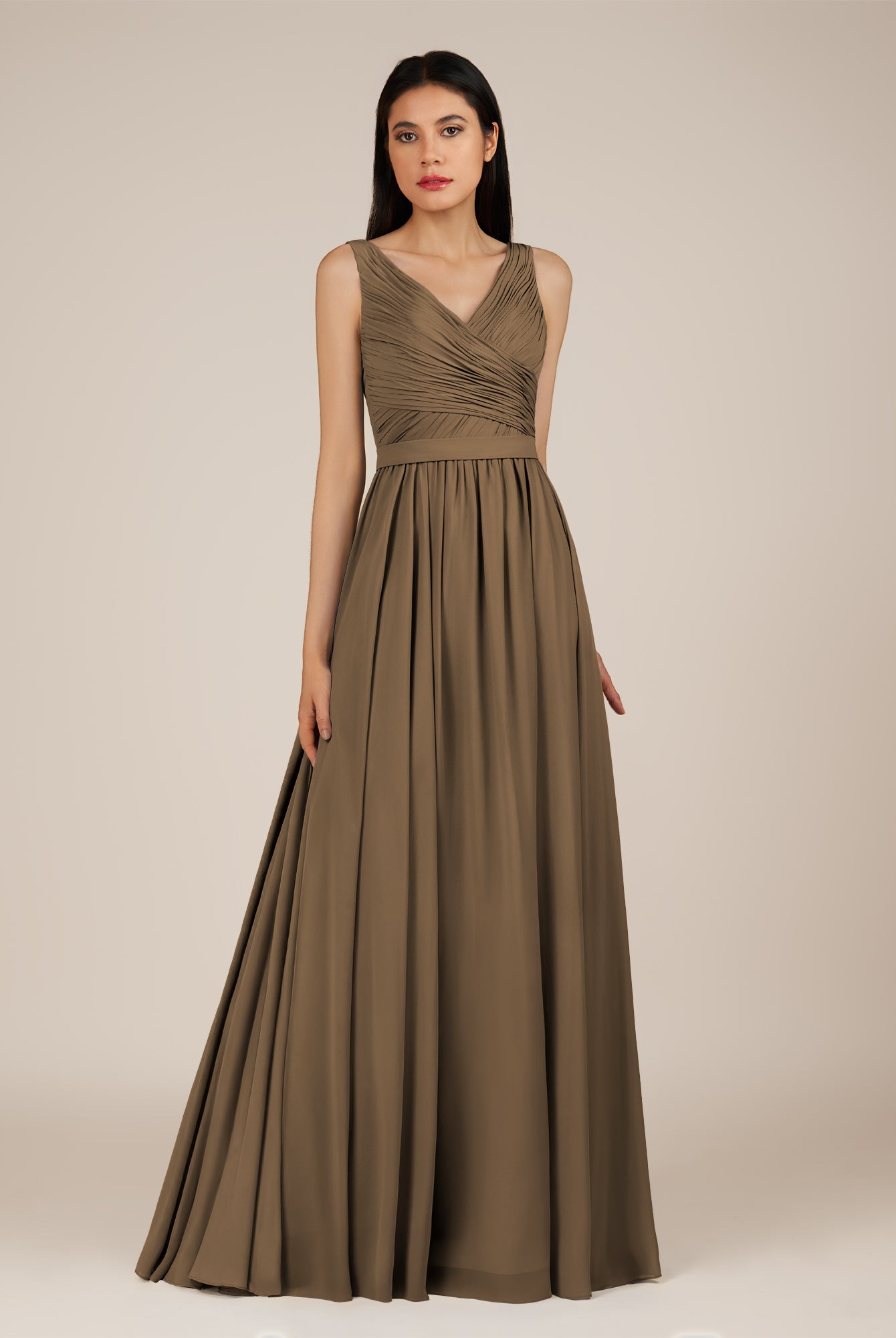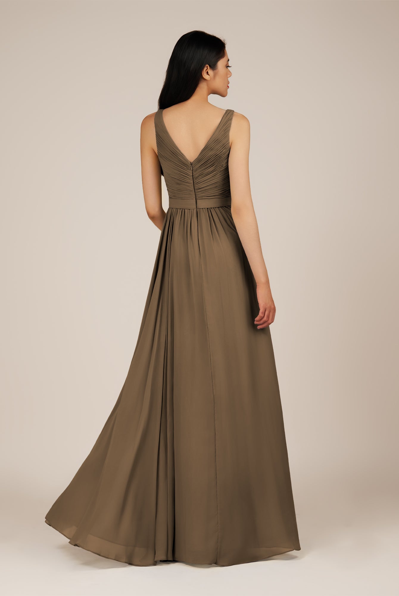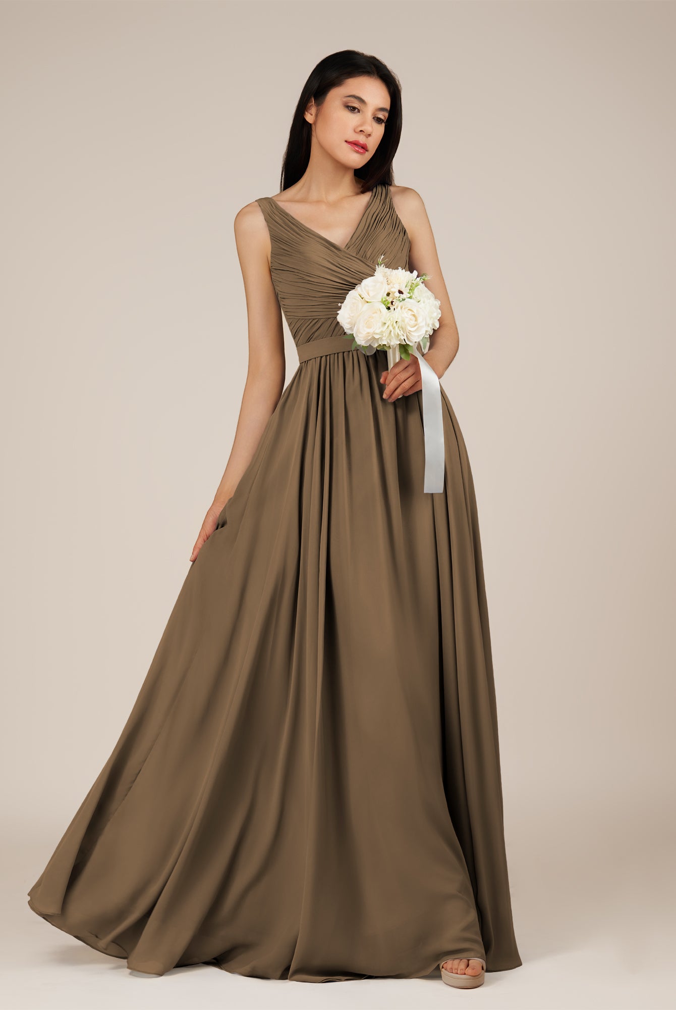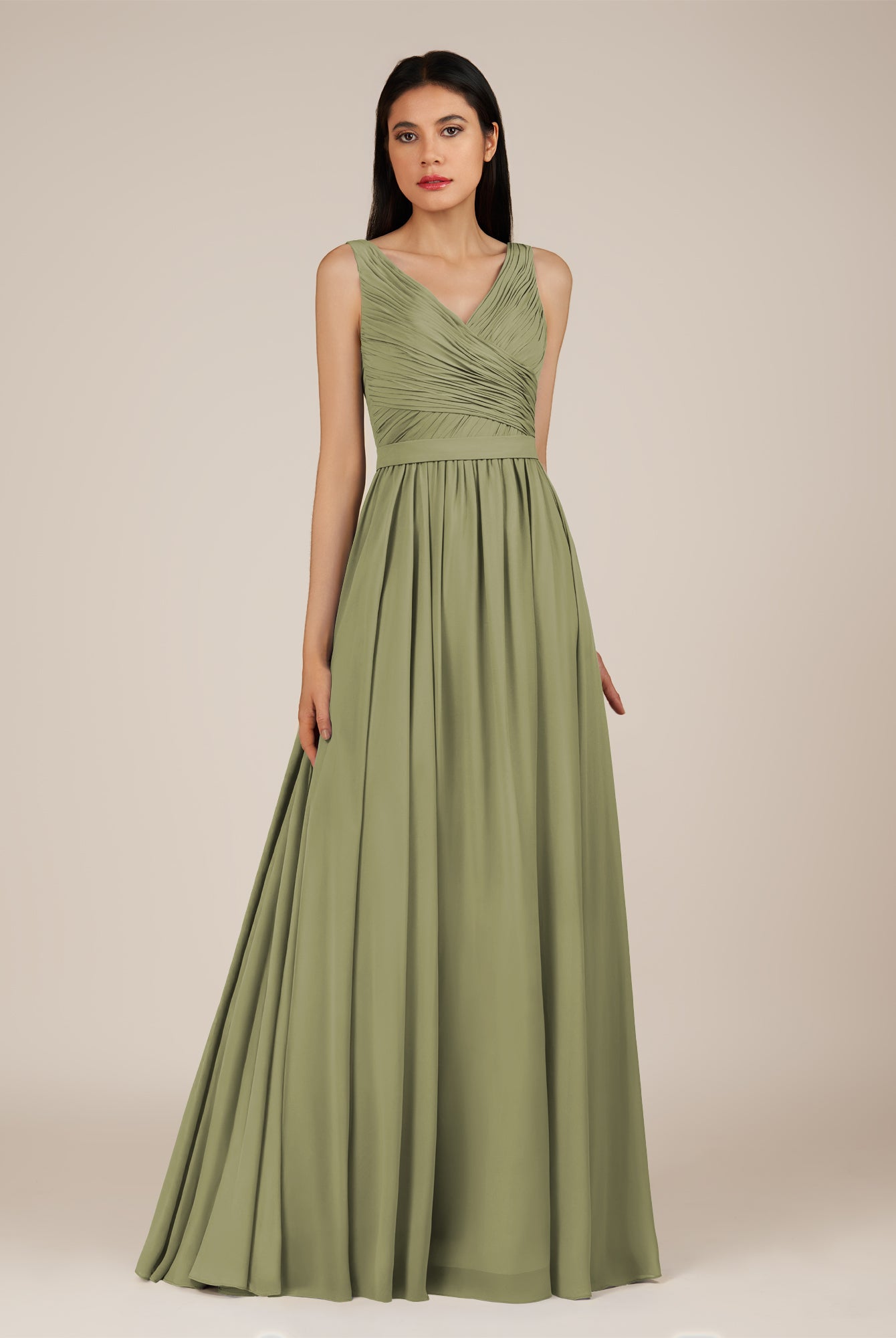 Lysander | Thyme - A Line Chiffon V Neck Pleated Long Bridesmaid Dress