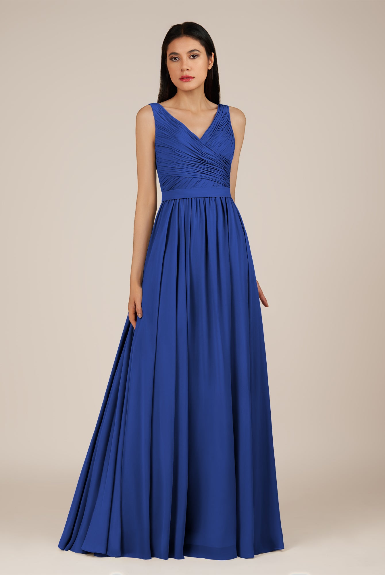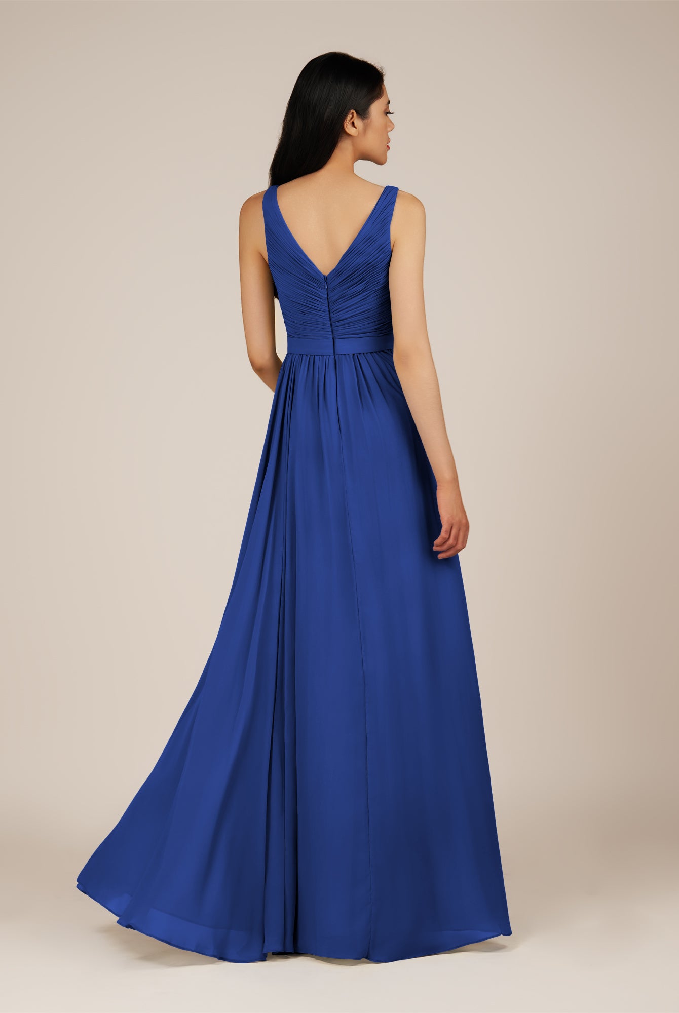 Lysander | Royal Blue - A Line Chiffon V Neck Pleated Long Bridesmaid Dress