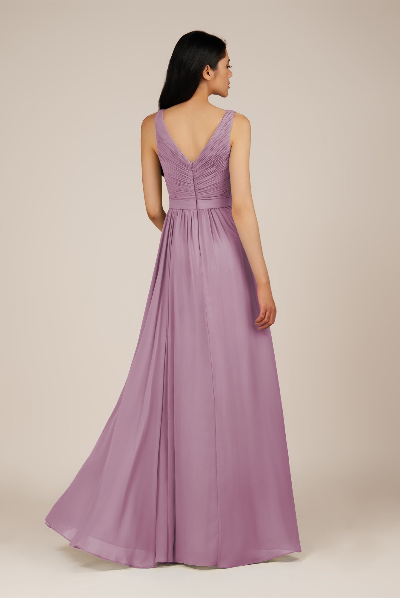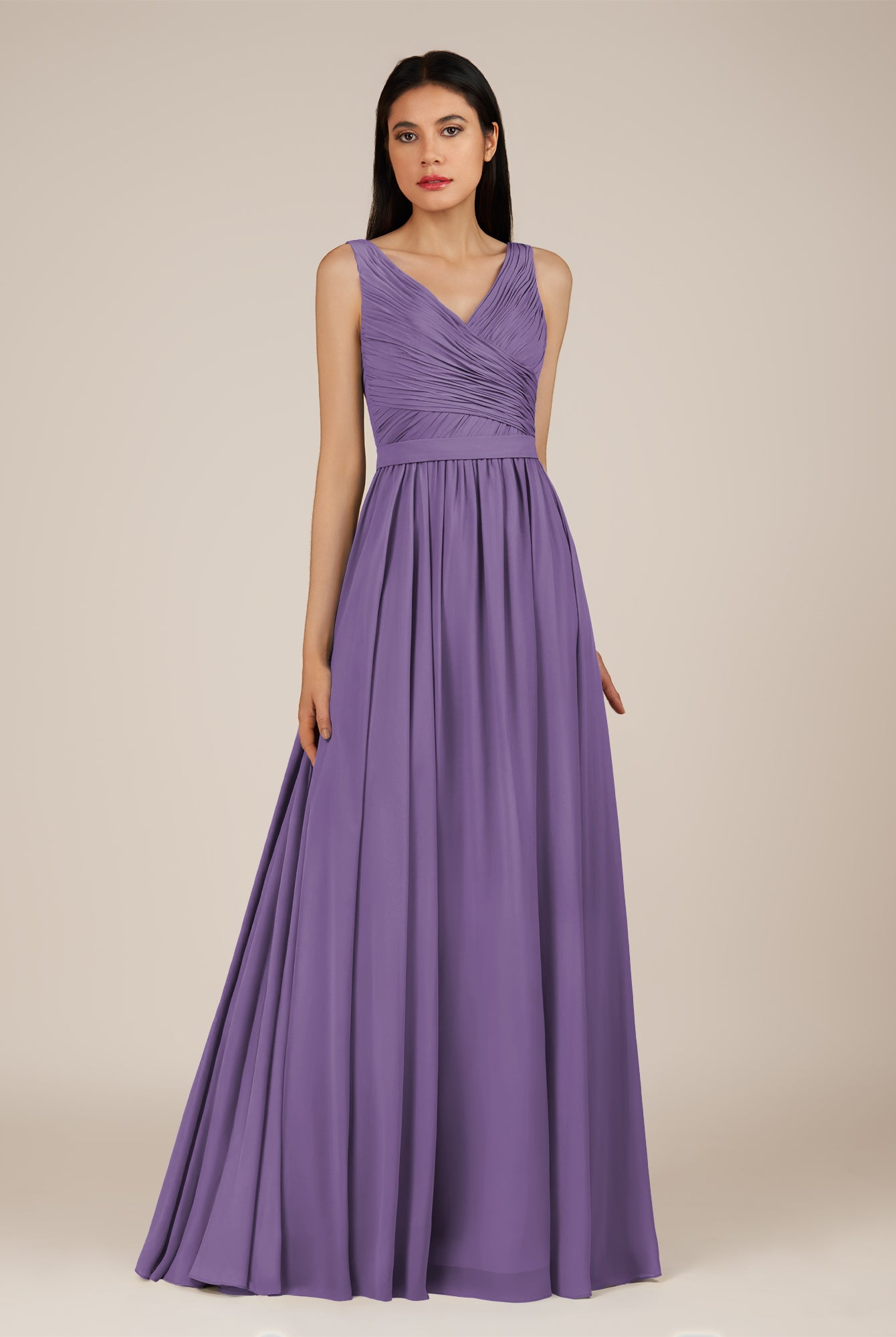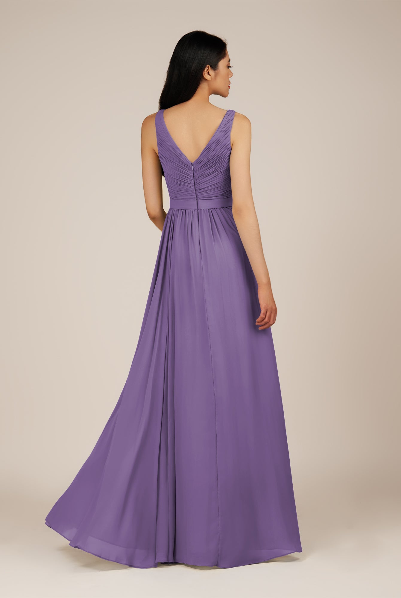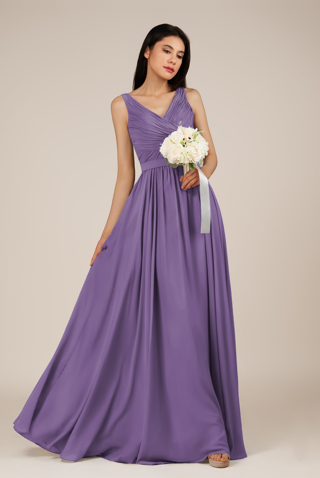 Lysander | Wisteria - A Line Chiffon V Neck Pleated Long Bridesmaid Dress