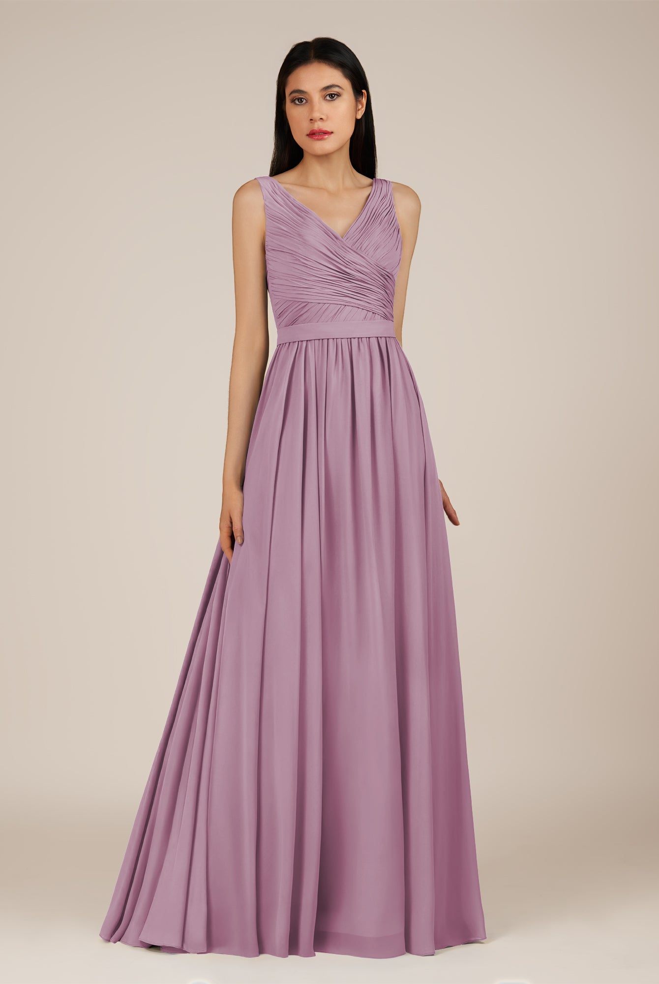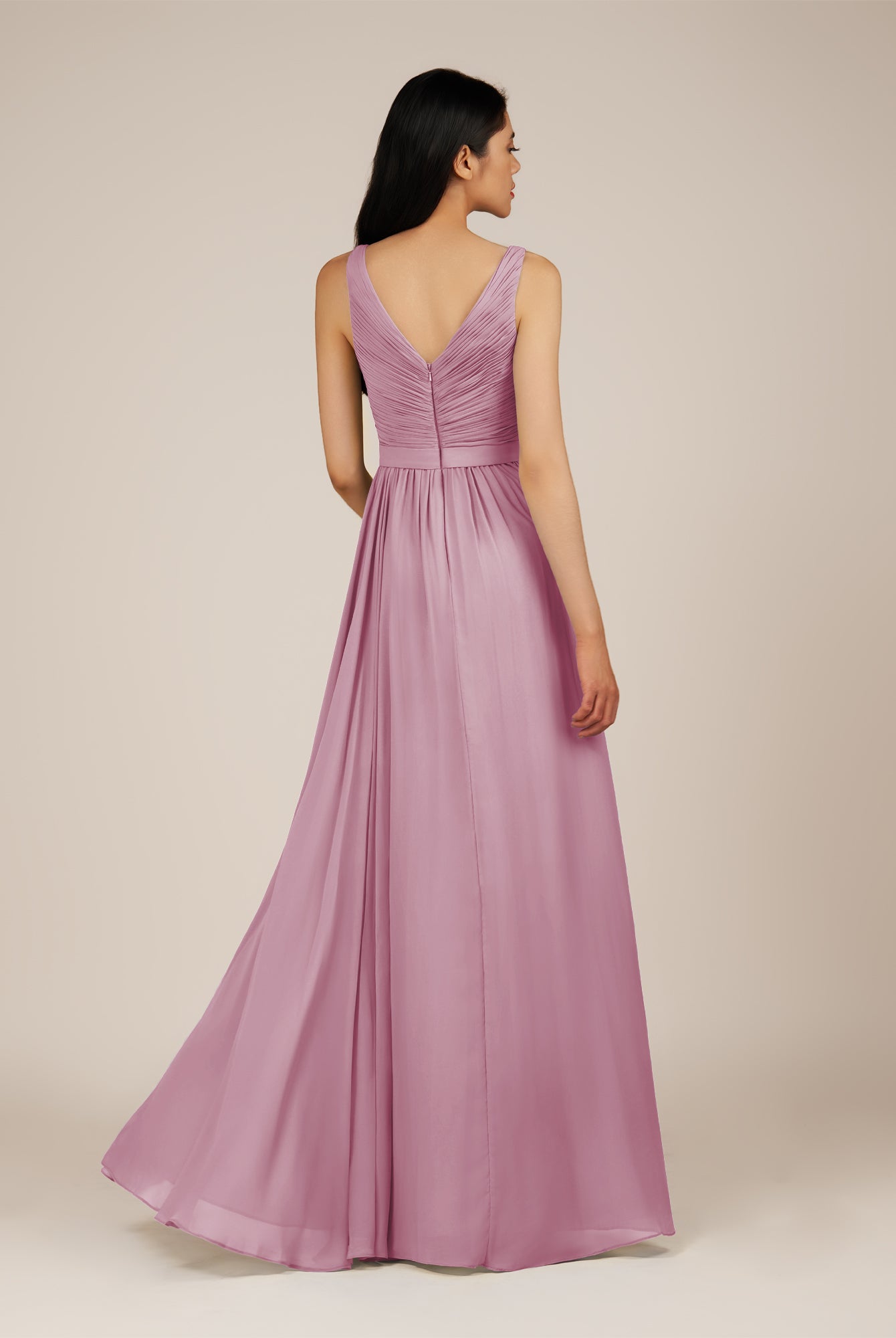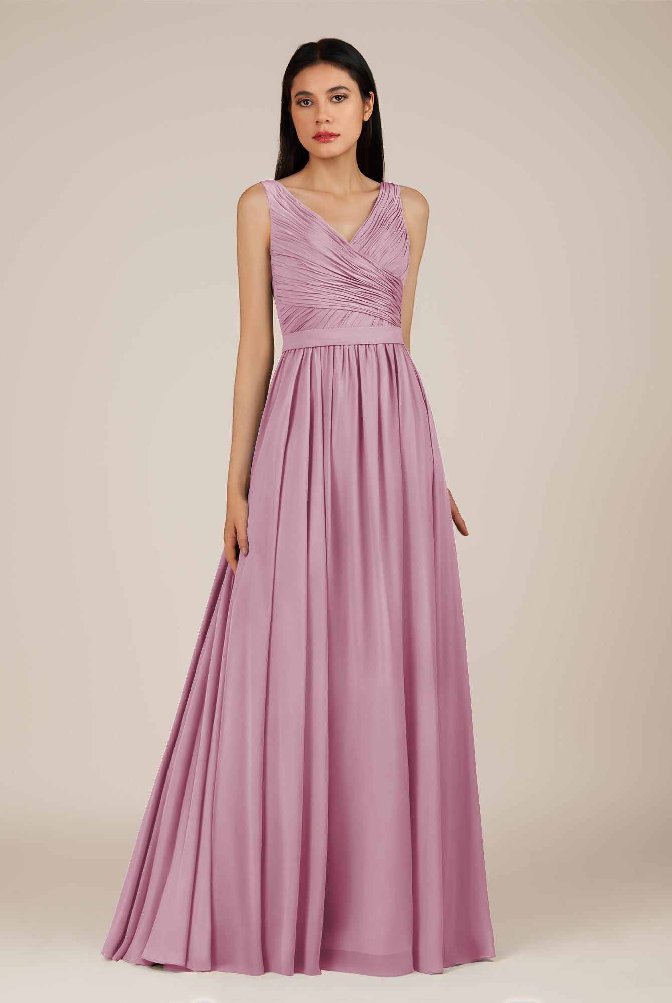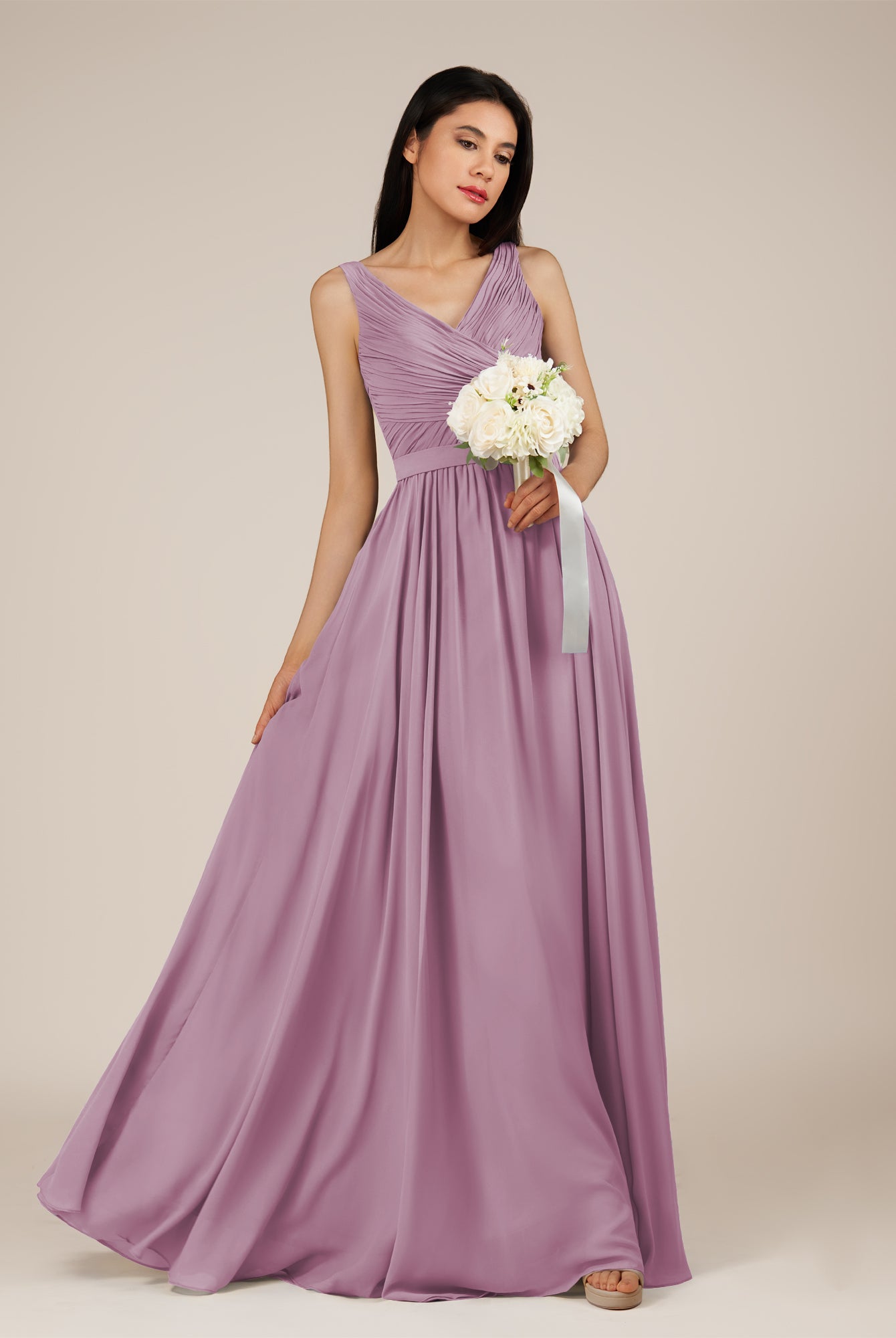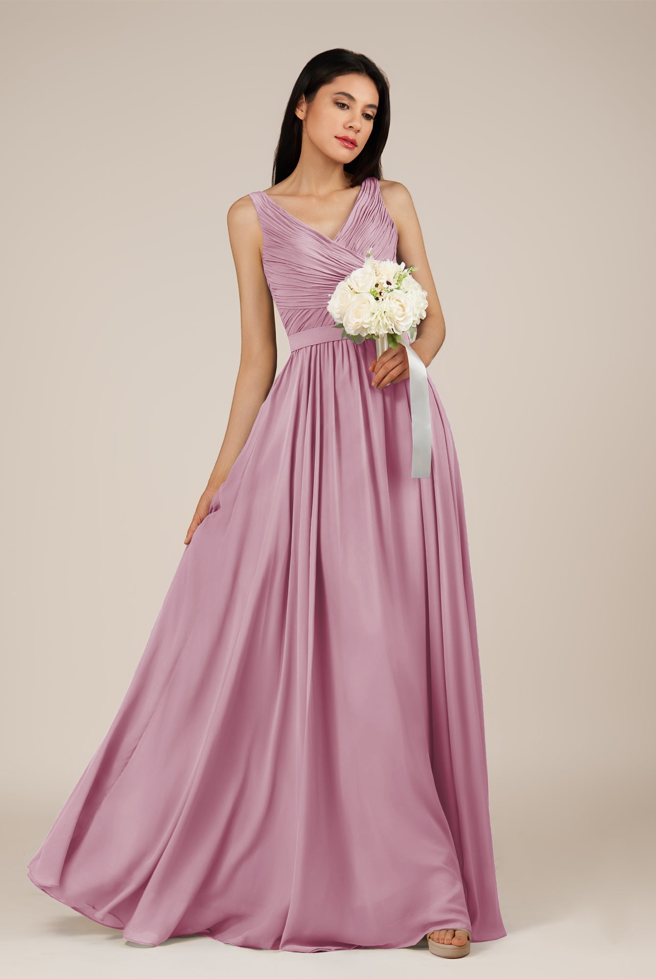 Lysander | Vintage Mauve - A Line Chiffon V Neck Pleated Long Bridesmaid Dress