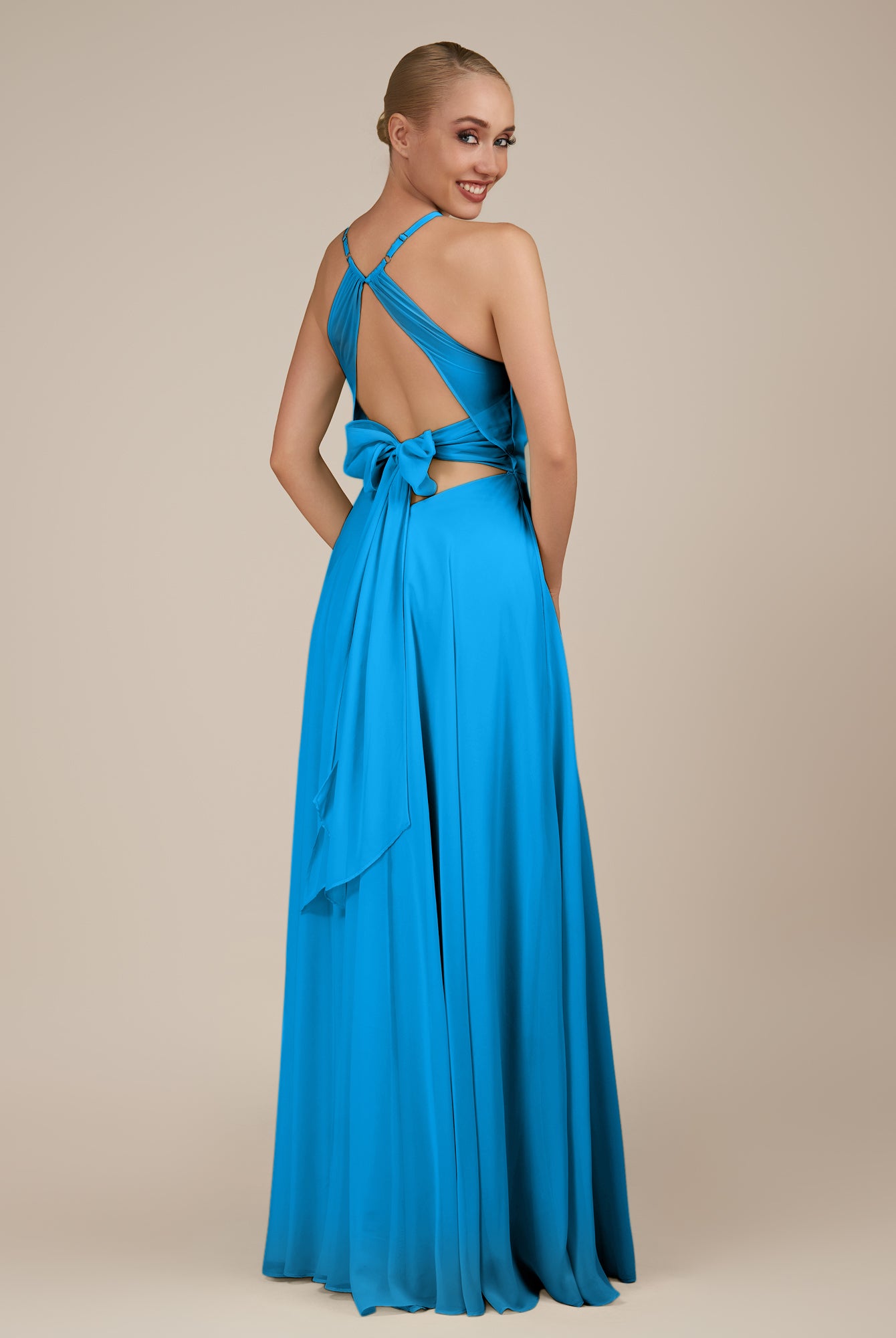 Illyria | Blue Jay - A Line Chiffon Halter Neck Long Bridesmaid Dress with Cut Out