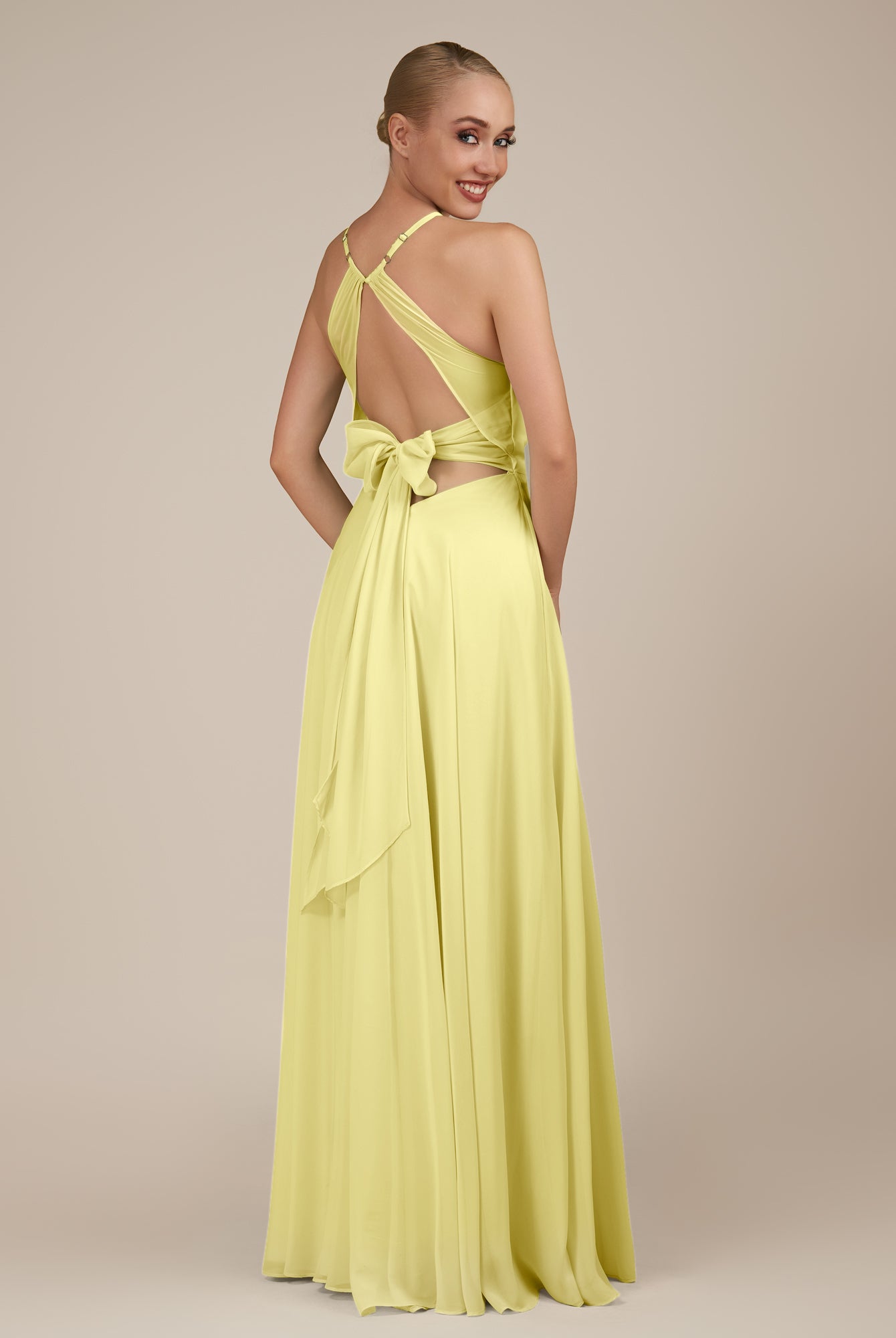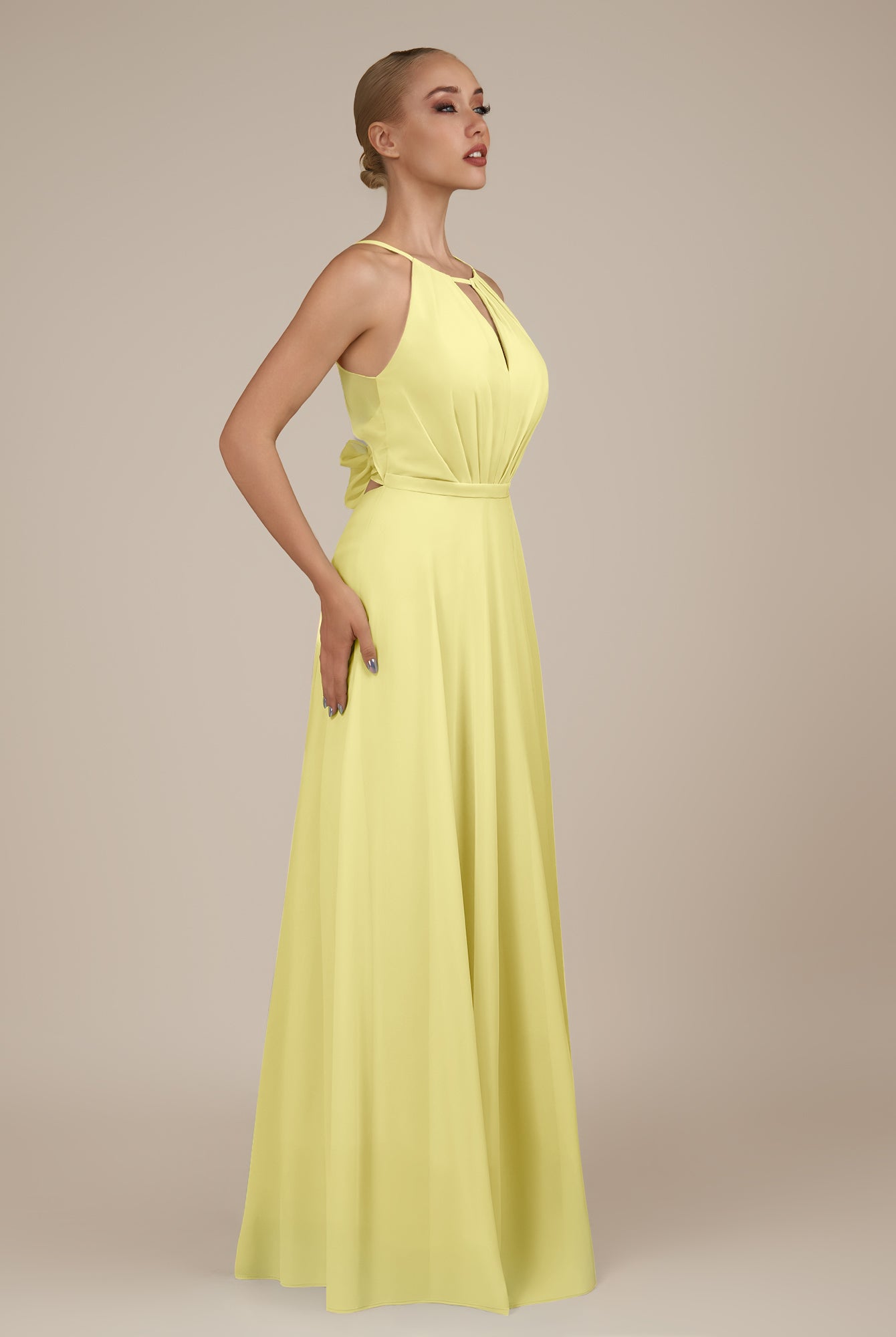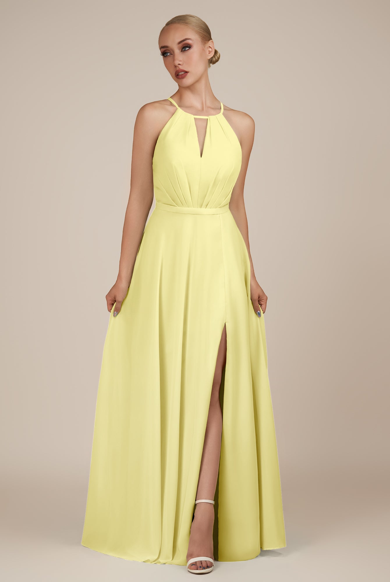 Illyria | Buttercup - A Line Chiffon Halter Neck Long Bridesmaid Dress with Cut Out