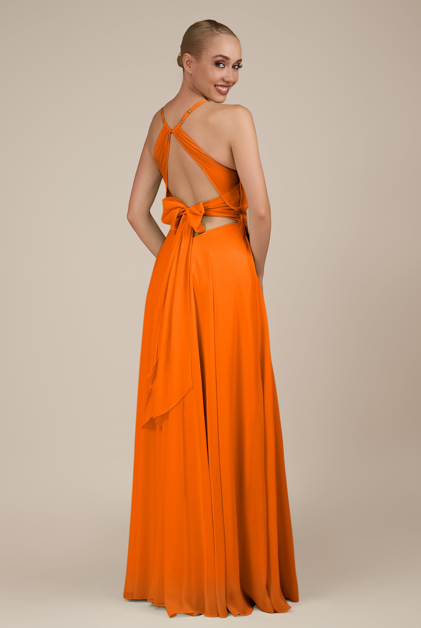 Illyria | Cinnamon - A Line Chiffon Halter Neck Long Bridesmaid Dress with Cut Out