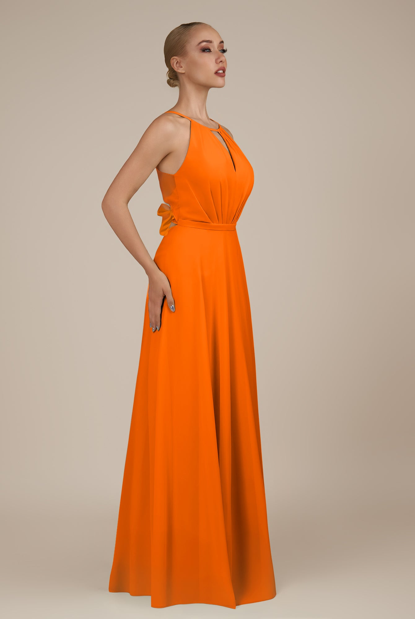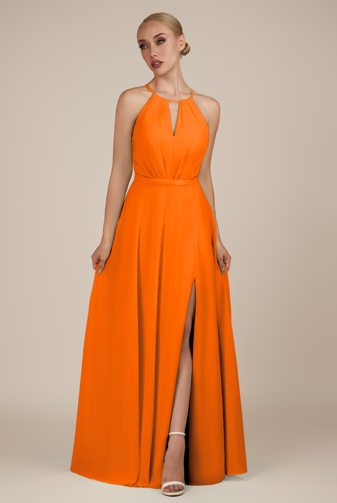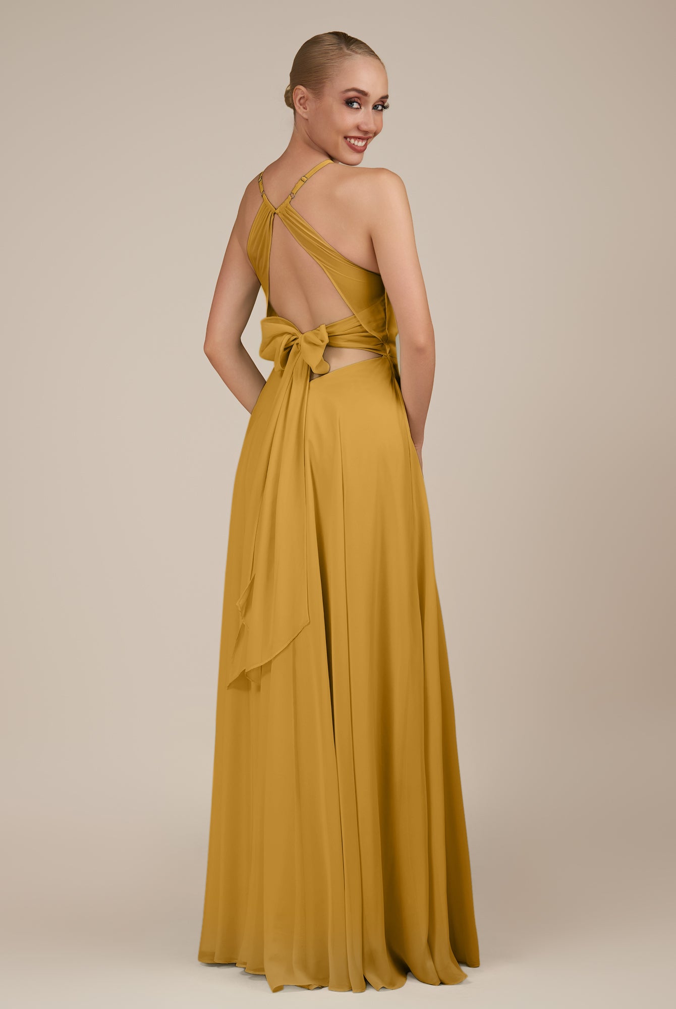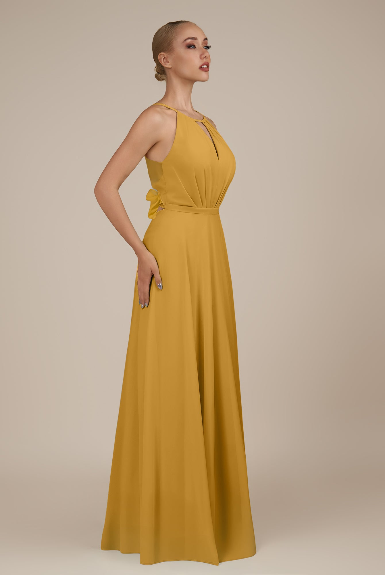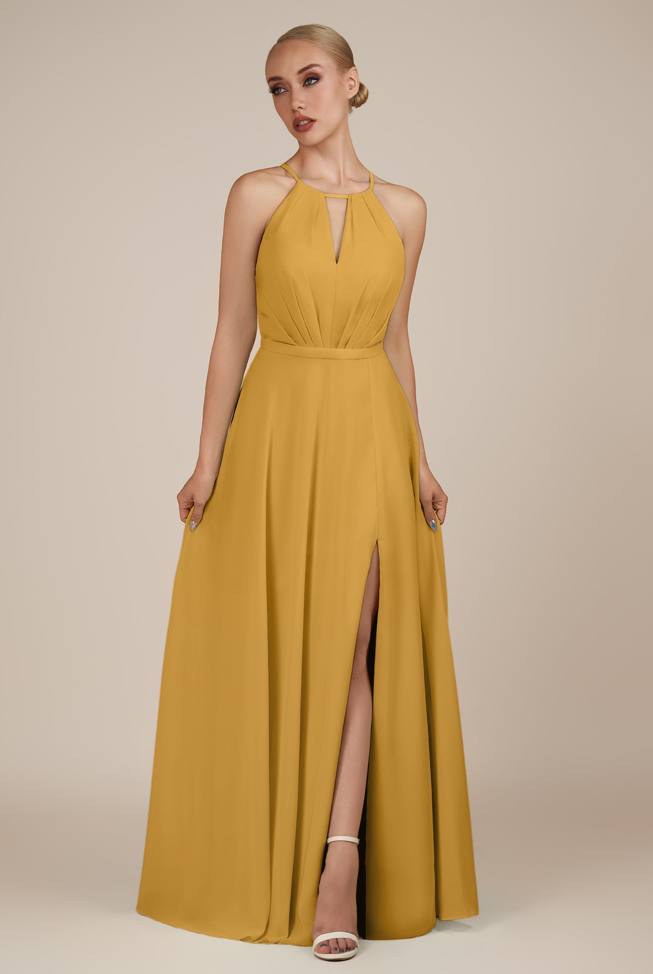 Illyria | Marigold - A Line Chiffon Halter Neck Long Bridesmaid Dress with Cut Out