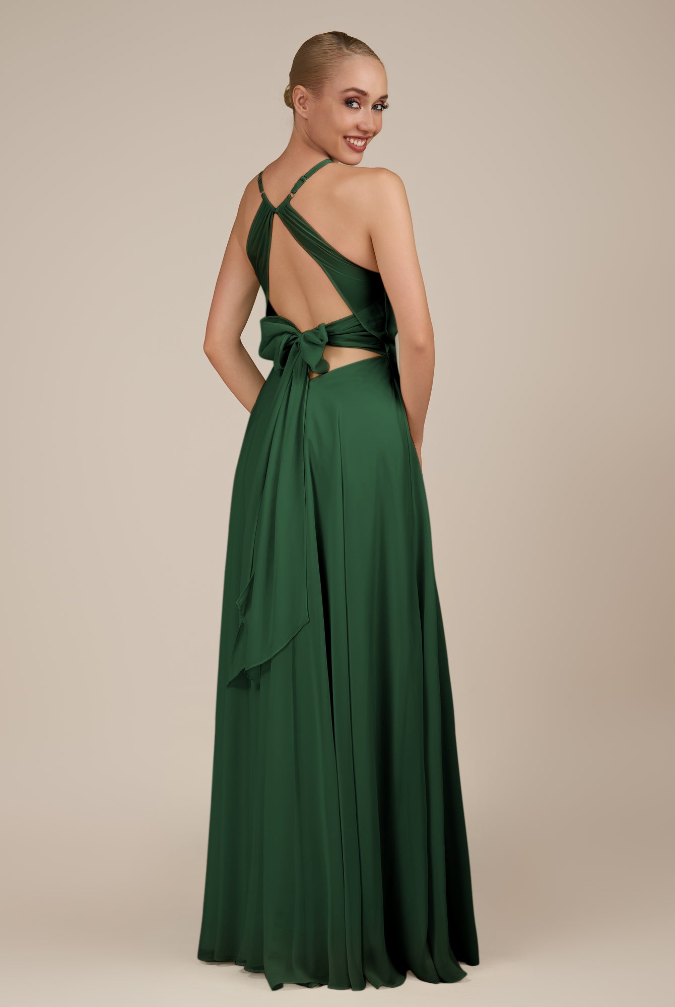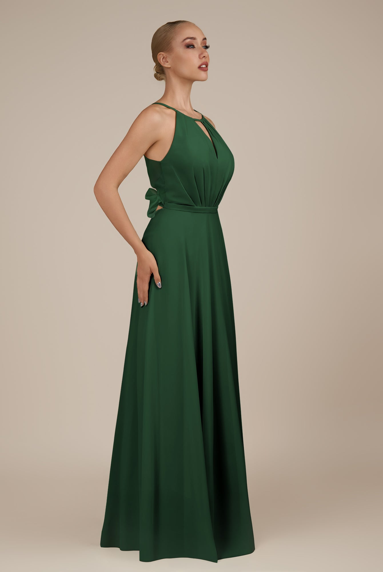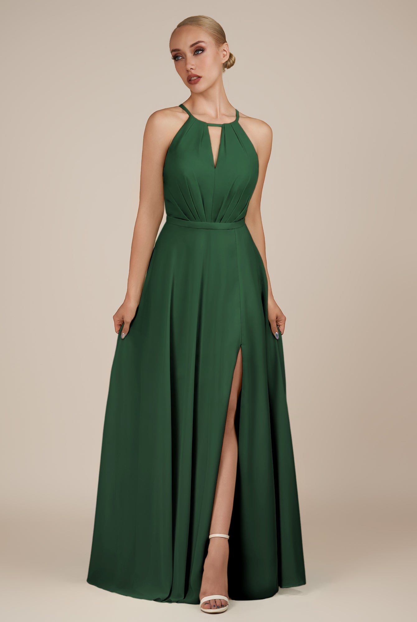 Illyria | Pine - A Line Chiffon Halter Neck Long Bridesmaid Dress with Cut Out