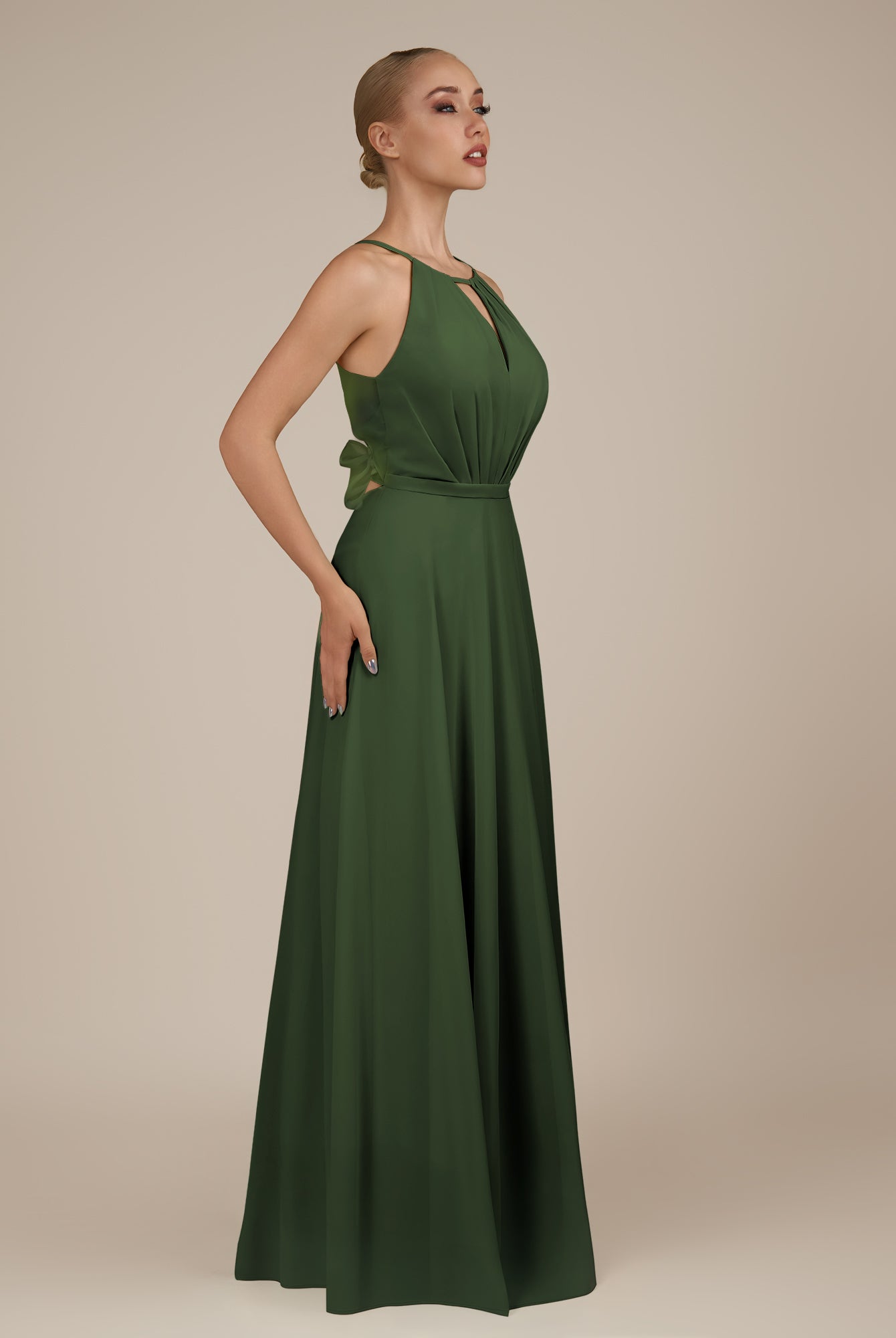 Illyria | Moss - A Line Chiffon Halter Neck Long Bridesmaid Dress with Cut Out