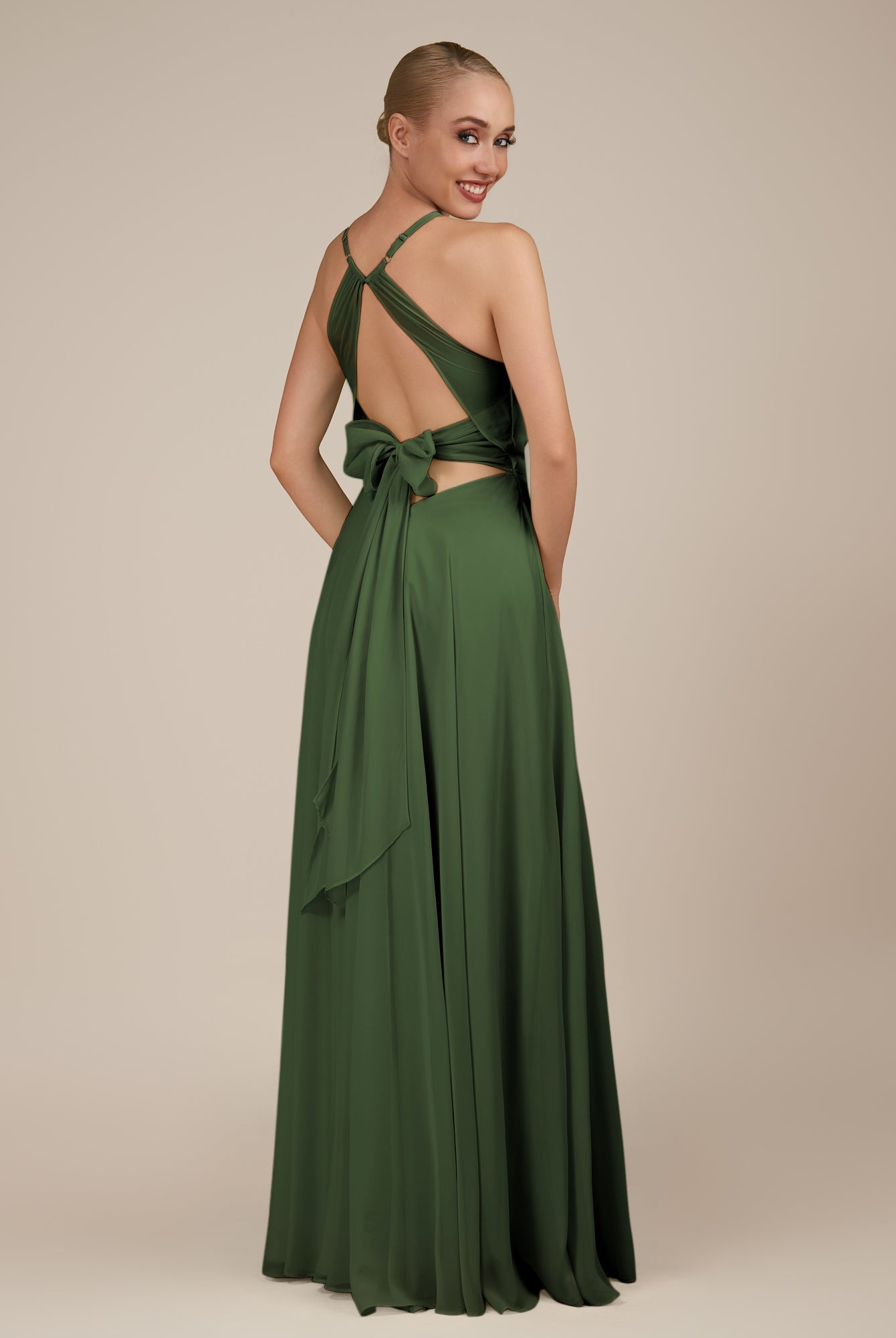 Illyria | Thyme - A Line Chiffon Halter Neck Long Bridesmaid Dress with Cut Out