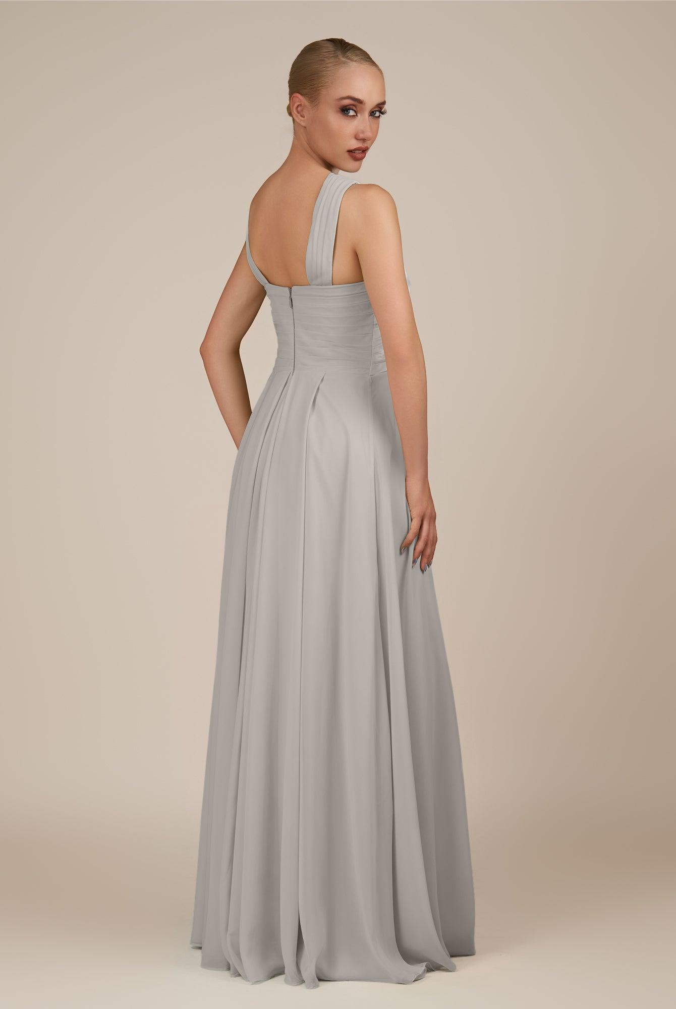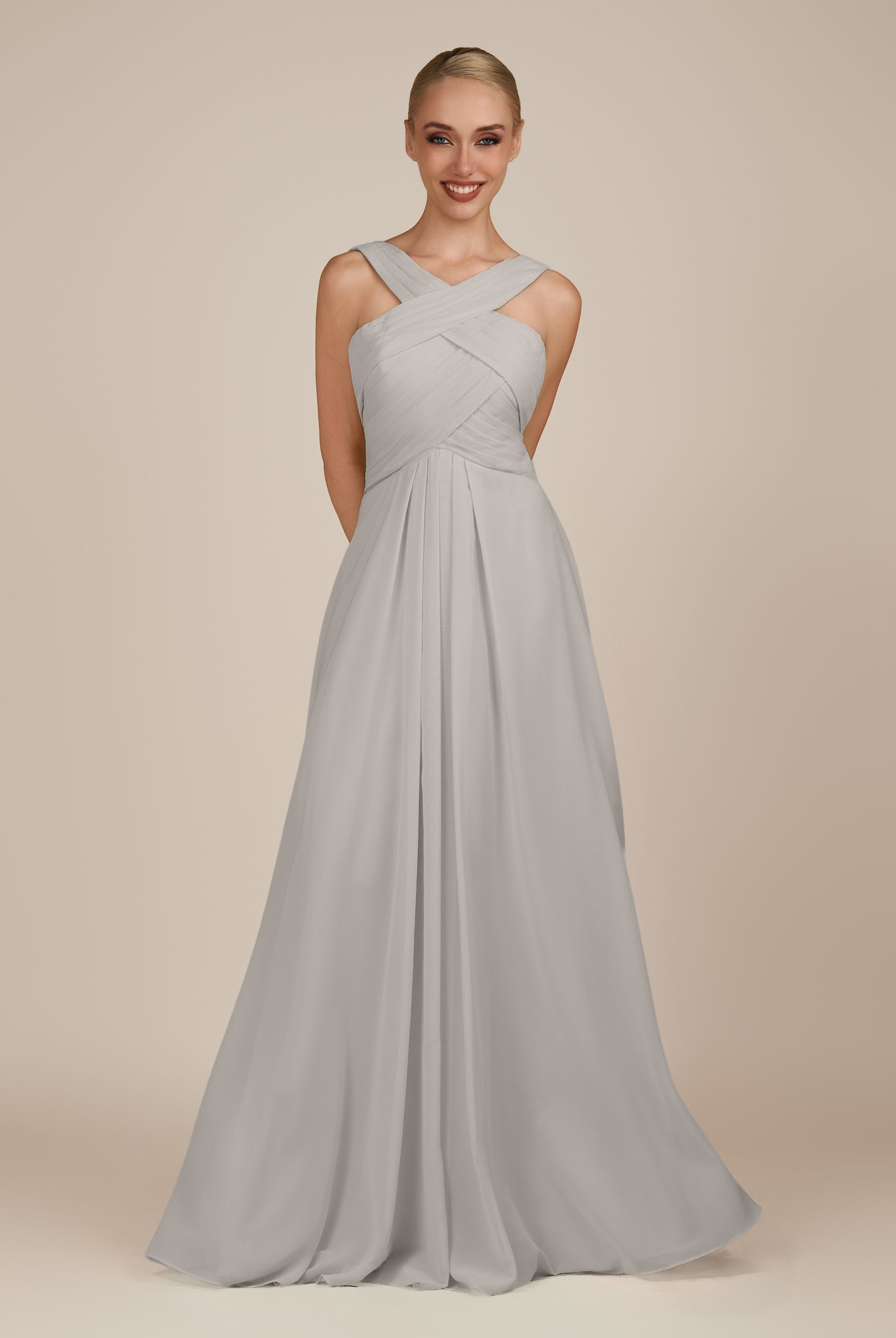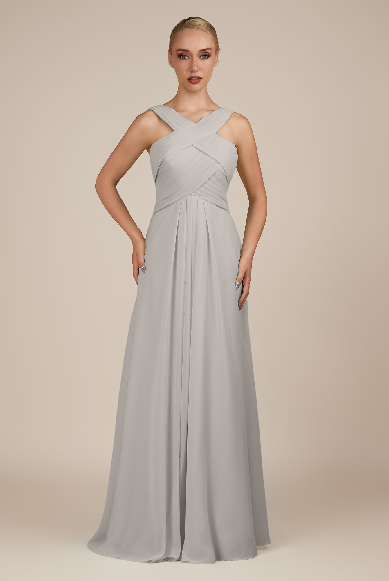 Sharlie | Dove Gray - A Line Chiffon Halter Neck Long Bridesmaid Dress with Pleats
