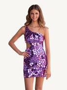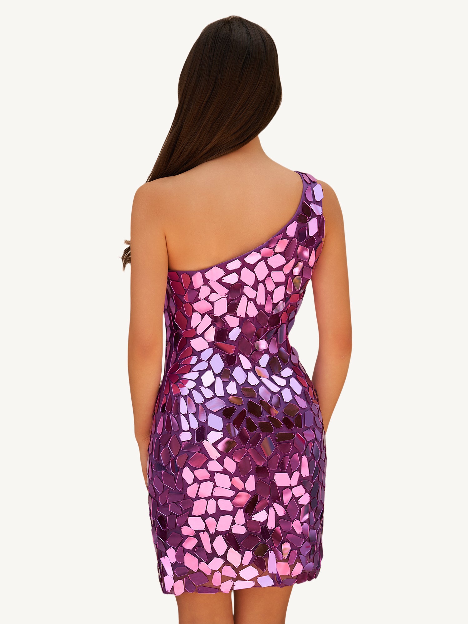 Jaliyah | Green Cut Glass Mirror One-Shoulder Cutout Short Party Dress