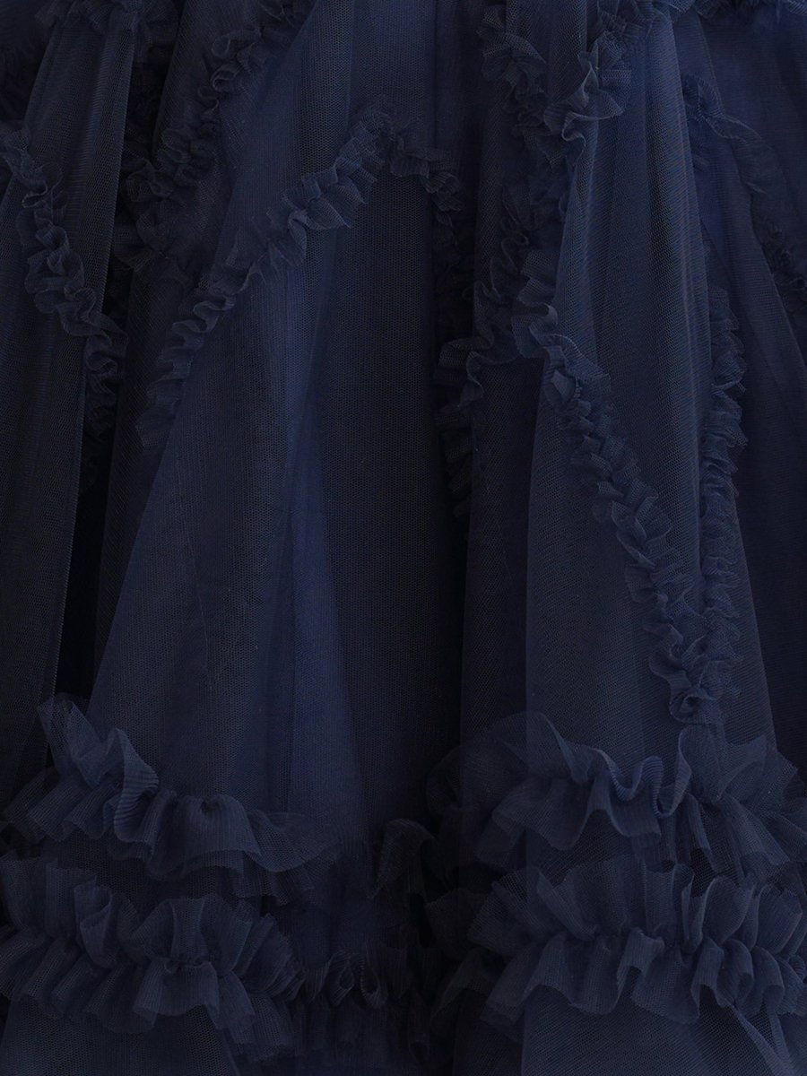 - Embellishment: Illusion Corset Bodice, Ruffles