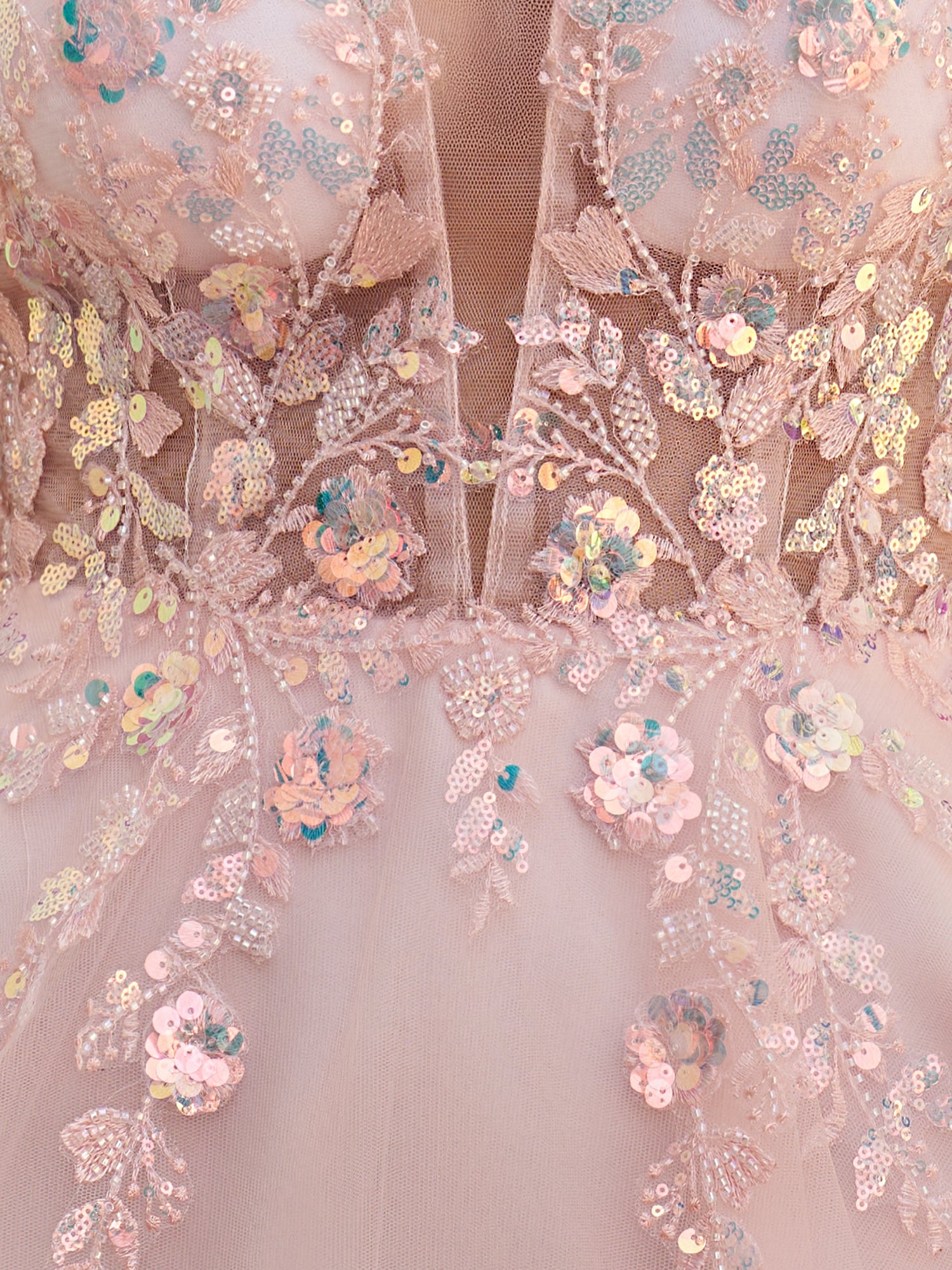 Isby | Pink - A Line V Neck Tulle Sequined Homecoming Dresses with Appliques