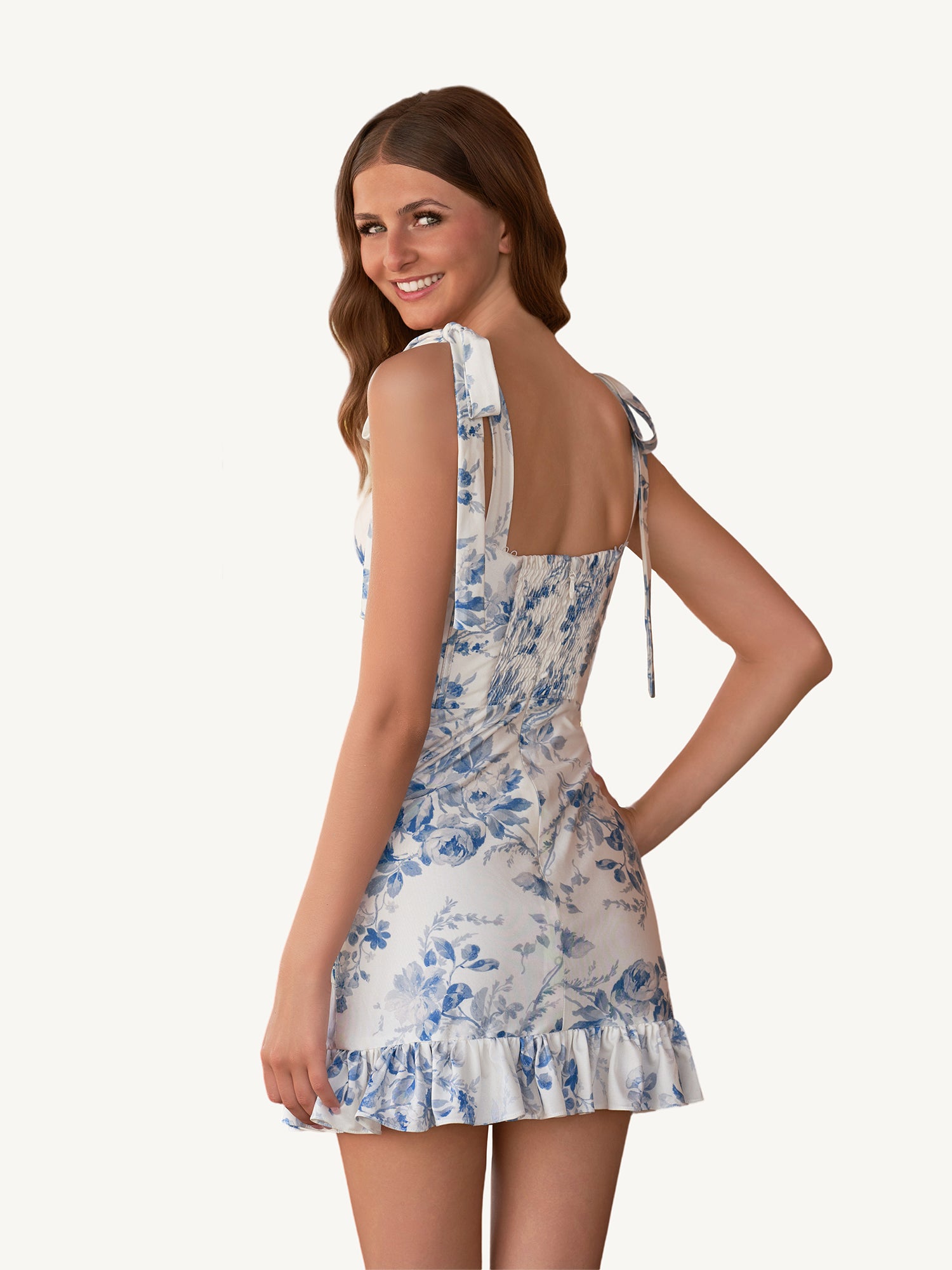 Embrace effortless elegance with this blue floral sheath mini dress, perfect for a chic cocktail party or a sunny day out. Made from delicate floral printed fabric, this dress offers a fresh and romantic vibe. The V neckline and sleeveless design beautifully showcase the shoulders, while the fitted sheath silhouette highlights your natural curves. Sweet bow straps add a playful touch, and the corset detail cinches the waist for a flattering, feminine shape. Finished with a convenient zipper back, this mini dress effortlessly combines style and charm for any special occasion.