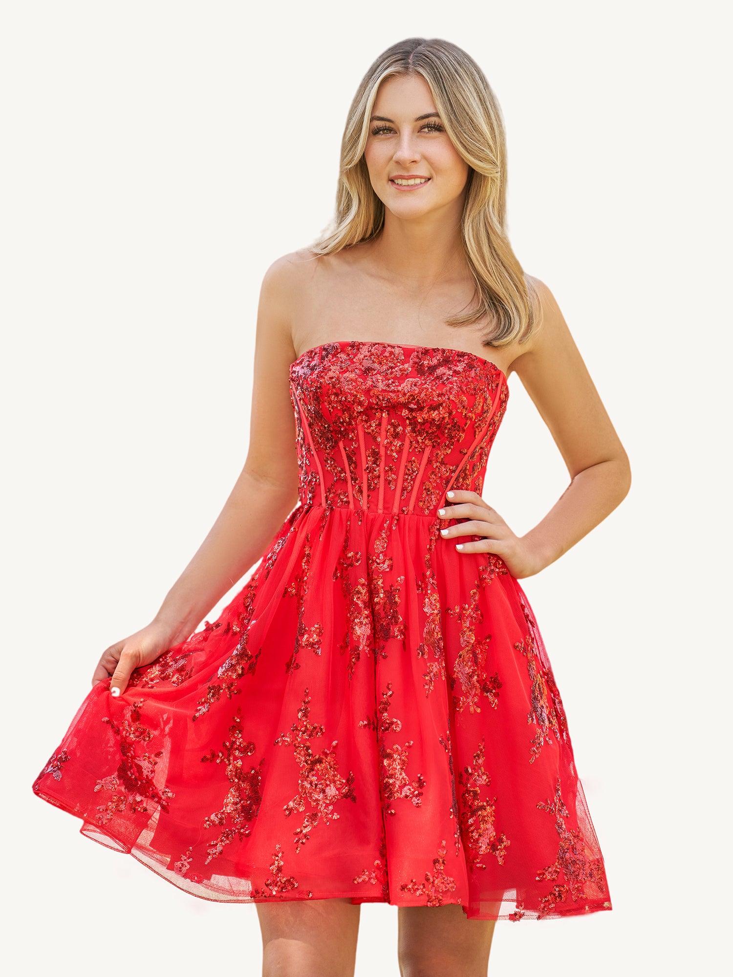 Ivette | A-Line Red Short Homecoming Dress with Sequins