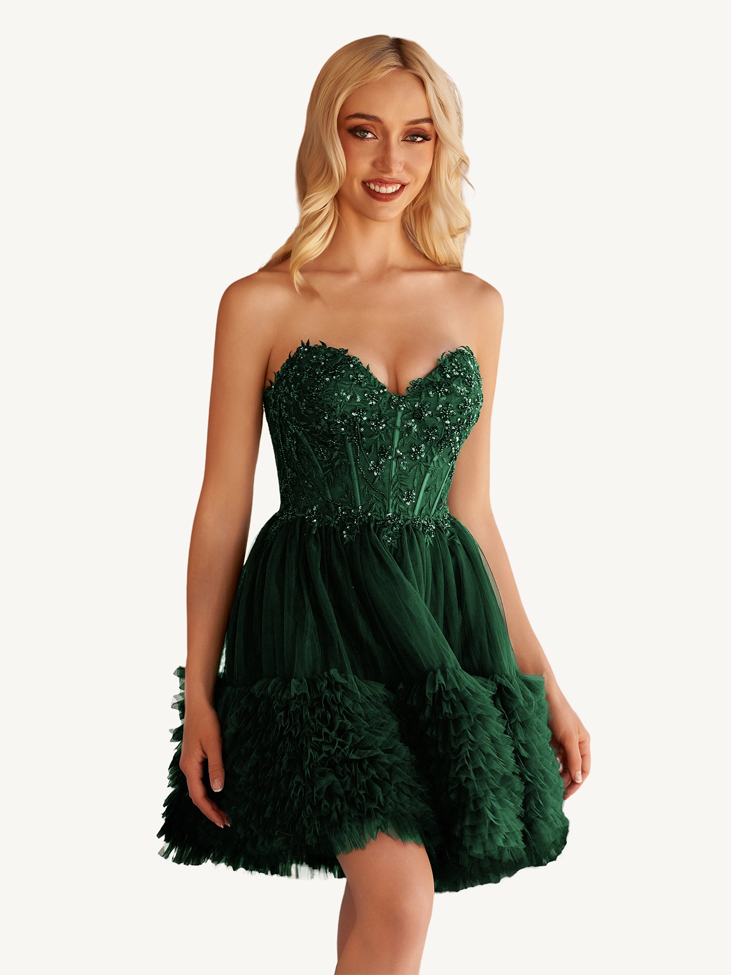 Bretta | Dark Green - Sparkly Bodycon Strapless Sequins Short Homecoming Dresses With Beadings