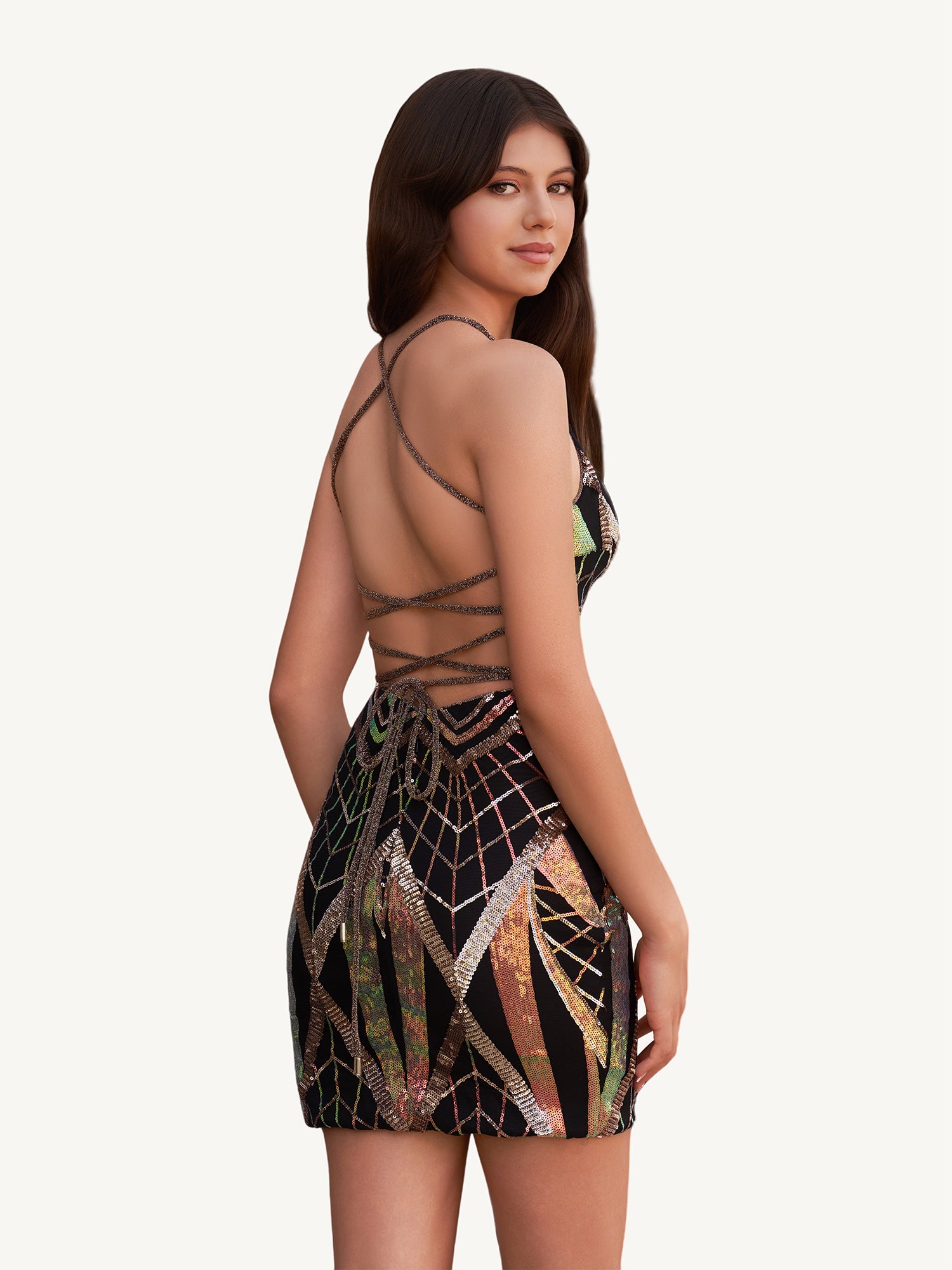 Phaenora | Black - Sheath V Neck Sequined Short Homecoming Dresses