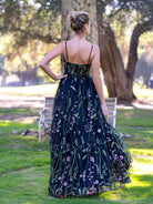 This black tulle gown from kissdress is a perfectly sleek and elegant prom dress! The spaghetti straps and low-back design are both sexy and sophisticated, while the embroidery and rhinestones add a touch of glamour. The floor-length skirt is perfect for making a dramatic entrance, while the fitted bodice ensures you'll look fabulous all night long.