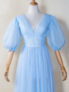 V-neck Maxi Length Tulle Prom Dress
