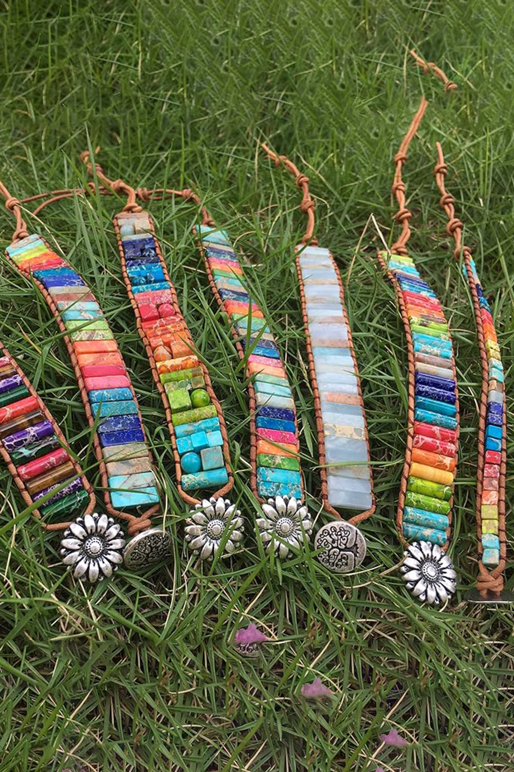 7 Chakra Leather Wrap Beaded Adjustable Chain Bracelets with Stones