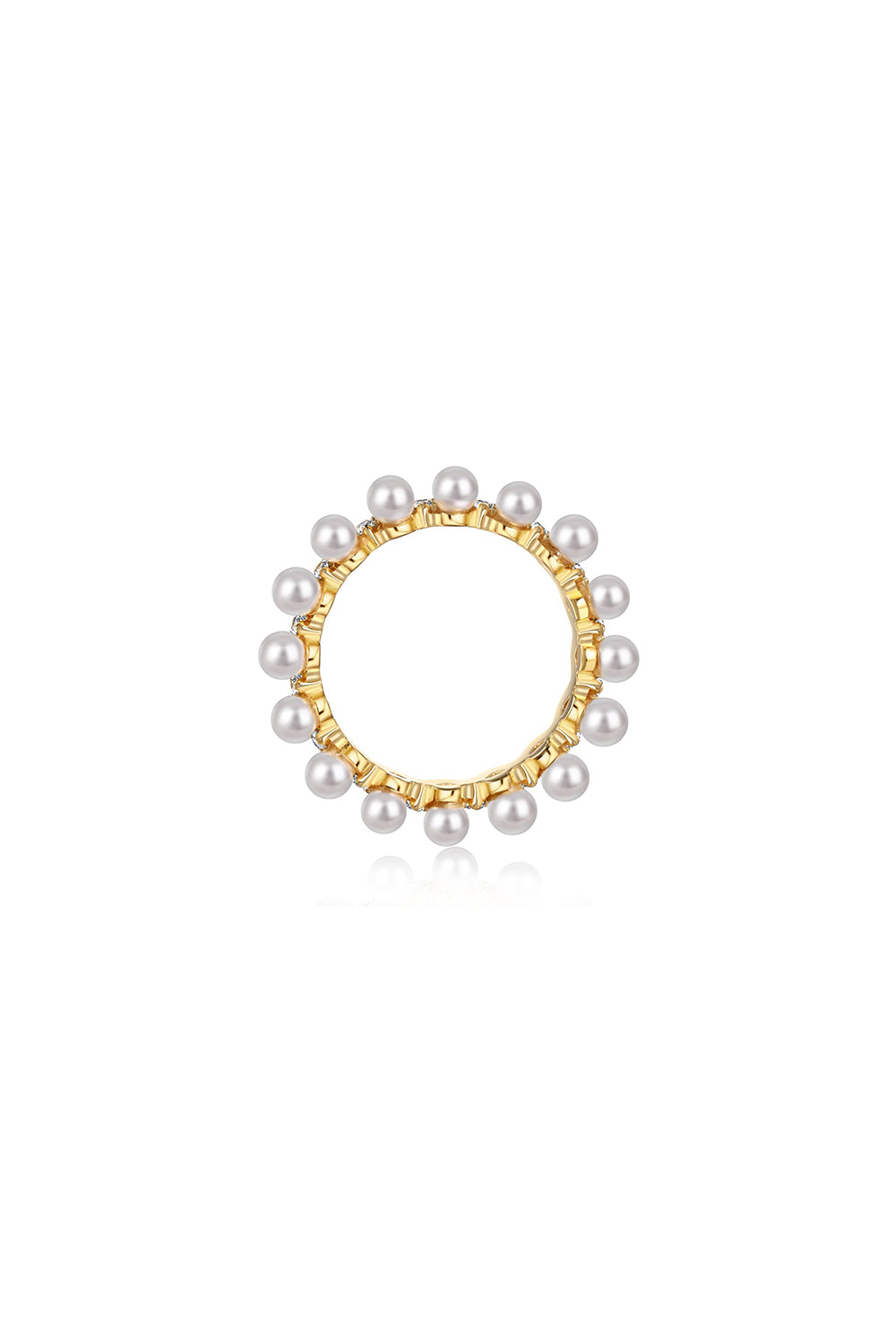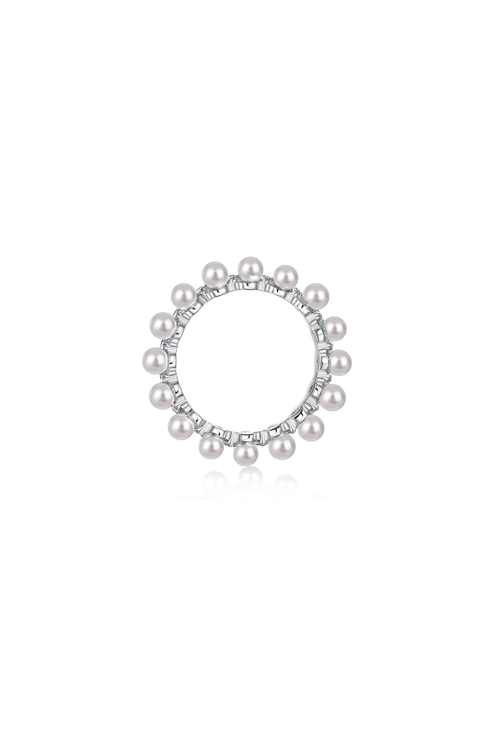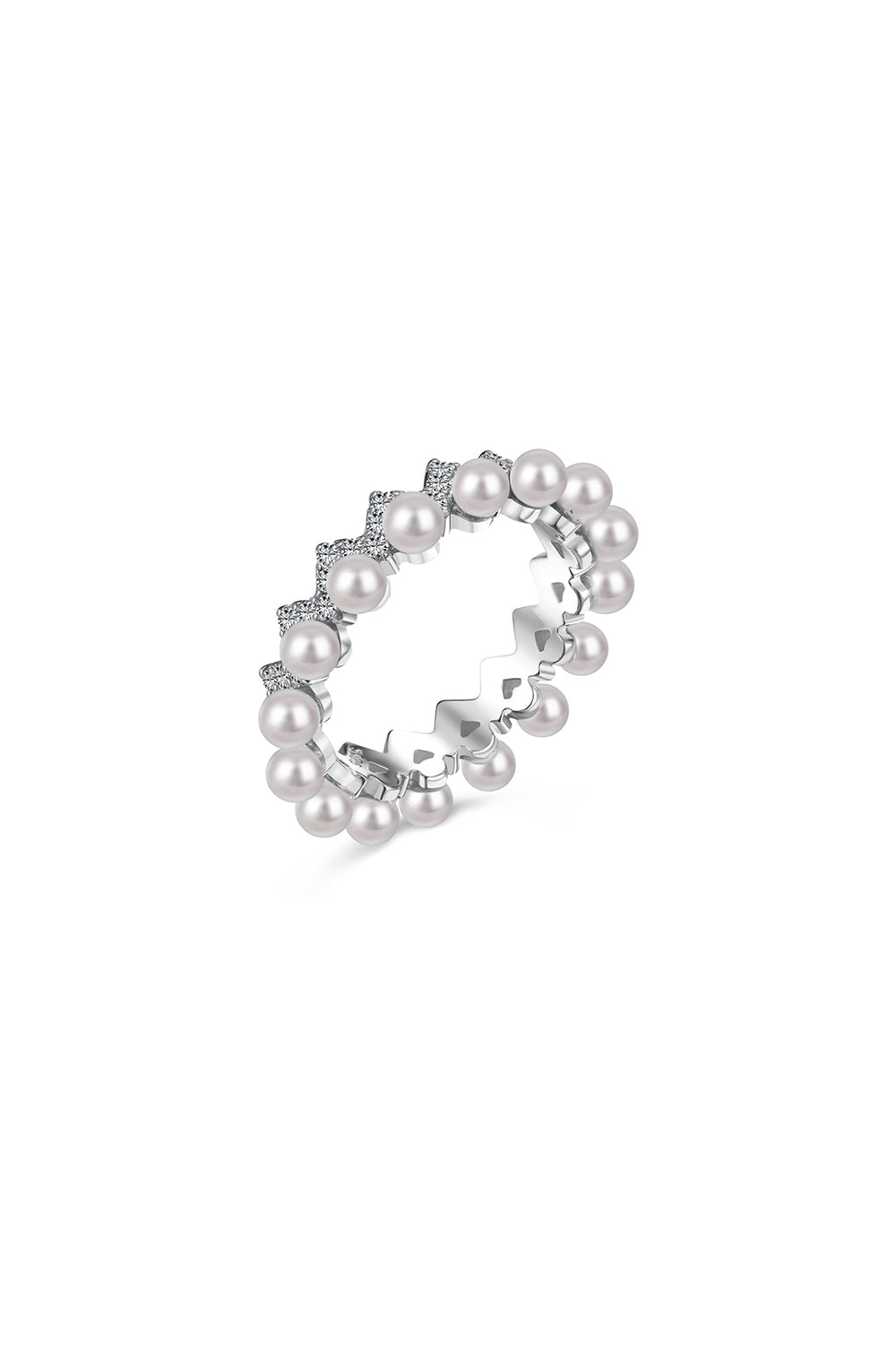 925 Sterling Silver Full Pearl 5A Cubic Zirconia Crown Shaped Ring