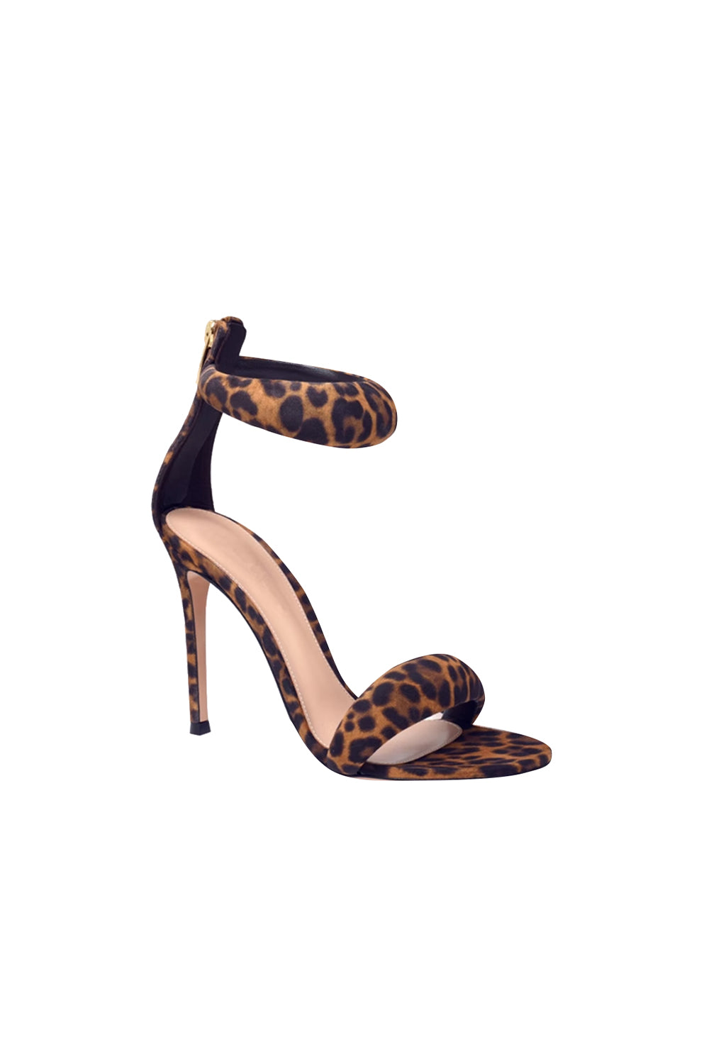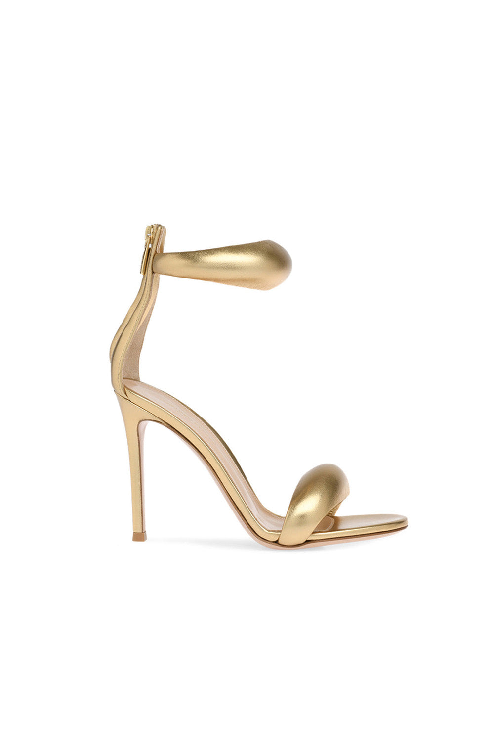 Gold Ankle Strap Leather Stiletto High Heel Sandals