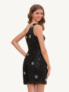 Black Bodycon One Shoulder Sequin Star Above Keen Homecmong Dress