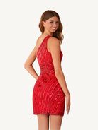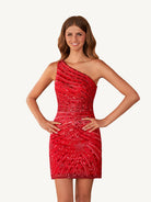 Make a dazzling entrance in this one-shoulder sheath dress, available in bold black or fiery red. The sequin fabric catches the light with every movement, while delicate appliqued details add an extra layer of texture and glam. Designed in a sleek short-mini length with a smooth zipper back, this sleeveless beauty hugs your curves for a confident, figure-flattering look. Perfect for hoco, New Year's parties, or any special night where you want to shine unapologetically.