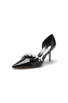 Experience elegance and sophistication with our Black Elegant High Heels, boasting a chic and modern design suitable for any occasion. Made from high-quality black patent leather, these shoes add a glossy finish to your look and catch the light beautifully. The pointed toe showcases a contemporary style, while the tall and slender heel enhances your height and posture, allowing for a confident stride. The standout detail of these heels is the row of lustrous white pearls adorning the vamp. Arranged in a neat and varying fashion, these pearls provide an elegant and refined touch to your outfit. Perfect for special events, nights out, or elevating your everyday attire, these shoes are guaranteed to make a statement.