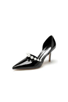 Step up your style with our Black Elegant High Heels, boasting a classic pointed-toe design and a sleek, shiny finish that captures the light effortlessly. Meticulously crafted from premium material, most likely patent leather, these shoes exude sophistication and timelessness. The tall, slender heel not only adds height but also grace to your stride, while the snug fit ensures confidence with each step. The focal point of these heels is the elegant row of pearl embellishments on the front, meticulously placed to run from the center to each side, for a touch of opulence and refinement to your ensemble. Whether it's a special event or elevating your everyday look, these shoes are guaranteed to impress.